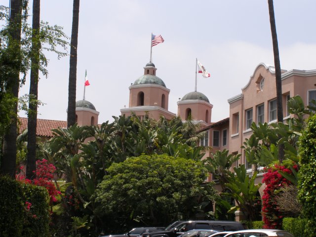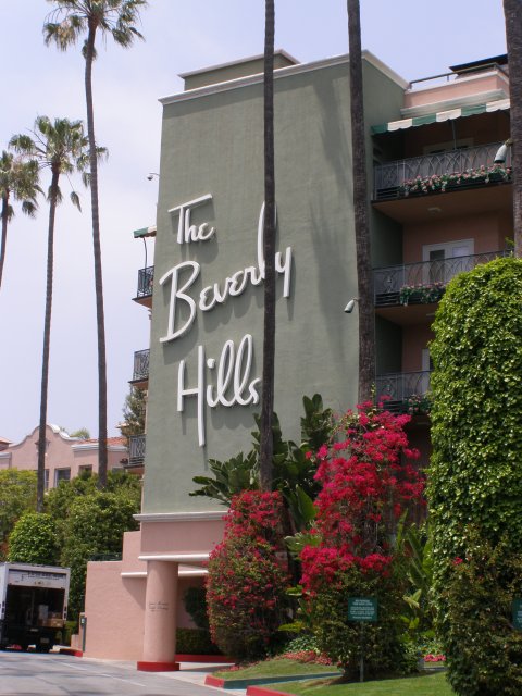 Van daaruit Sunset Boulevard. Hier ligt het Beverly Hills Hotel. Even afstappen en een foto van gemaakt. Dit hotel staat ook op de hoes van de lp van de Eagles Hotel California.