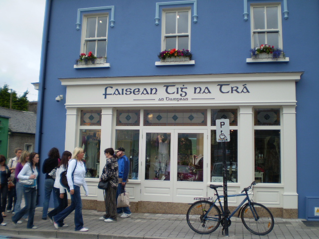 Men ziet ook dat Iers hier de voertaal is en Engels de tweede taal is. Men heeft op school ook les in de Ierse taal. Dit is verplicht. Nadat we in bus zijn gestapt en verder rijden langs de kust verteld Trees over de twee eilandjes die we in de verte zien. Je kunt er niet opkomen maar wel omheen varen. De eilandjes zijn beschermd vogel gebied.