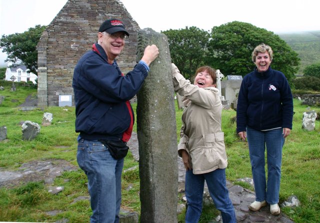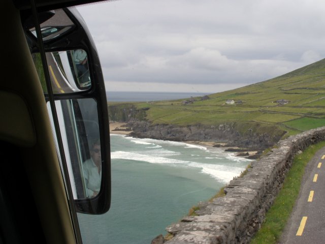 Route: Vanuit Sneem de R568 richting Molls Gap en Killarney, bij Molls Gap de N71 volgen richting Killarney. In Killarney de N72 volgen tot de afslag R563 richting Dingle (dit staat NIET zo aangegeven). Bij Milltown een stukje de N70 volgen tot Castlemaine dan de R561 volgen richting Dingle. Men kan een stop maken in Inch waar men uit kunt waaien op een zandstrand aan de baai van Dingle. Door op de R561 richting Dingle, bij Anascaul linksaf de N86 op richting Dingle. Na Dingle de R559 op tot de afslag richting Cloosmore. Deze R559 is een ringweg op het uiterste westelijkse puntje van Europa, hier komt men dus ook het westelijkse dorpje van Europa tegen. Dus de R559 volgen bij Gallarus Oratorry even een tussenstop maken voor een wel erg oud kerkje, daarna de R559 volgen richting Dingle. De terugweg naar ons hotel is vrijwel gelijk aan de heen weg echter wederom moet men via Kenmare rijden voordat men in Sneem kan komen (althans voor bussen). (plm. 280 Km)