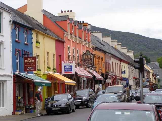 We rijden richting Dingle. Als we die richting uitgaan, wijst Trees ons op de borden. Dingle staat afgeplakt. Men moet hier op de Ierse naam An Daingean letten. Ja, als me dat niet weet kan me nog lang naar Dingle zoeken. Vlak voor Inch Dingle maken we even een stop aan zee. Even weer uitwaaien. Enkele mooie schelpen voor Natalie gevonden. Het strand van Inch wordt door velen beschouwd als het mooiste van Ierland, met uitzicht op zowel het schiereiland Dingle als het schiereiland Iveragh. De grootste plaats op het schiereiland is Dingle, waarnaar het schiereiland is vernoemd. Dingle is een klein vissersdorp met een zeer bekende dolfijn Fungi als bezienswaardigheid. Als we in Dingle komen maken we een korte pauze. Het schiereiland Dingle heeft heel wat te bieden aan wie het wil komen bezoeken. Nog enkele boodschappen doen en terug in naar de bus.