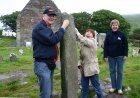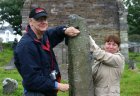 Ondertussen leren we vandaag Iers: Slan Abhil = Tot Ziens. Als we verder rijden verteld Trees dat we vandaag naar een kerkhof gaan. Als we daar aankomen, wijst trees ons op verschillende stenen. Op een steen staan de letters van het Keltische alfabet van benden naar boven. Dit zijn er 20. De tweede steen is een zonnewijzer. Dan wijst Trees naar een steen en iedereen moet erbij komen staan. Mels aan een kant en Toos aan de andere kant. Ieder steekt zijn linker ringvinger in het gat wat in de steen zit. Zo zegt trees dan: Nu zijn jullie getrouwd. Keltisch.