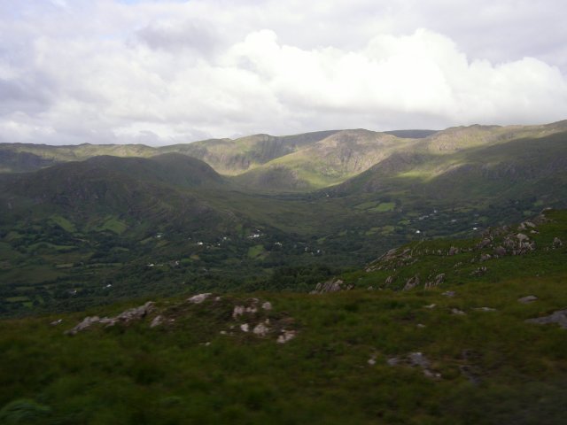 Verslag: Vandaag staan we om 6.30 uur op. Dit was onze laatste nacht in Sneem. We zijn benieuwd waar we vanavond slapen. We zijn te zeer verwend met ons appartement. Om even voor 7.00 uur staat Richie met de bus voor de appartementen om de koffers in te laden. We kunnen dan om 7.15 uur aan tafel voor het ontbijt. Een van de serveersters komt nog even met ons praten. Ze verteld ons dat ze niet had gedacht dat we al zo oud waren dat we 25 jaar getrouwd waren. We hebben haar nog hartelijk bedankt voor het nagerecht waar ze voor gezorgd had. Er is veel buitenlands personeel hier in de vakantietijd werkzaam (Poolse, Tsjechische enz.)Na afscheid te hebben genomen van het personeel vertrekken we om 8.00 uur.