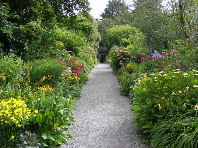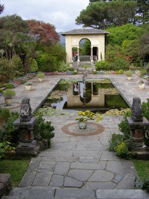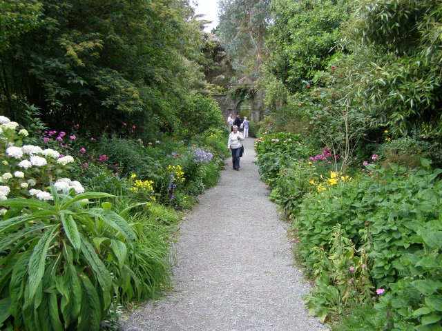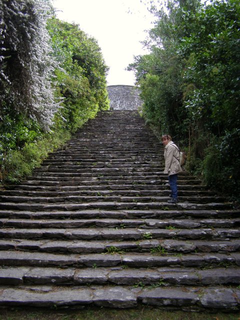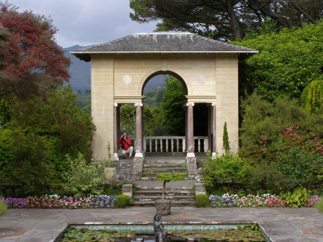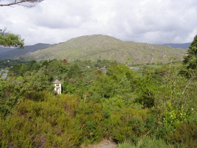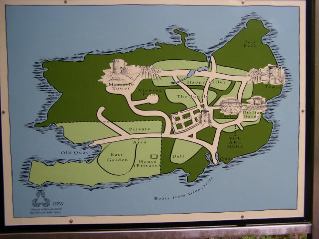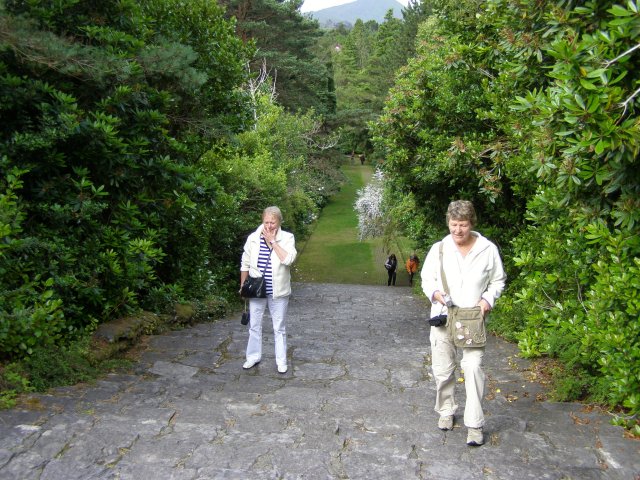 Dan komen we aan bij Illnaculin, Garinish Island. We zijn vandaag zo vroeg dat het personeel met ons is meegevaren. Zij moeten nog eerst alles openen zodat we het eiland kunnen gaan verkennen. Het kleine eilandje (15 Hectares) is in het begin van de 20e eeuw omgetoverd in een Italiaanse tuin. De ontwerper was Harold Peto, hij importeerde allerlei kleurrijke Middellandse Zee planten, niet eerder gezien in Ierland, en deze floreerden uitstekend op dit eiland. We zien varens uit Australië van wel 4 meter hoog. Het is hier op het eiland een subtropisch klimaat. Dit komt door de luchtstroom die over het eiland gaat. Het is hier mooi om te wandelen. Je komt een trap tegen van 65 treden (foto 23 en 25). Aan het einde van onze wandeling nemen we nog een pauze. Eten en drinken nog iets en gaan dan met de boot terug naar Glengariff.