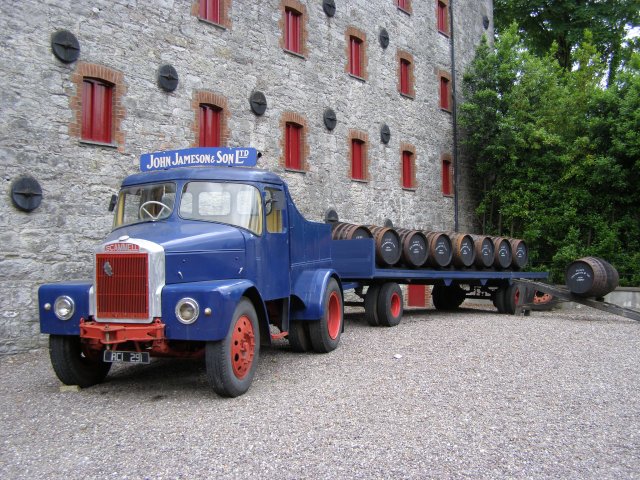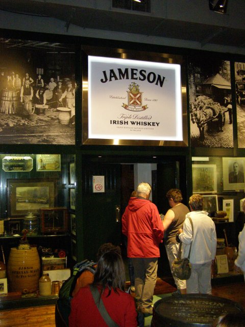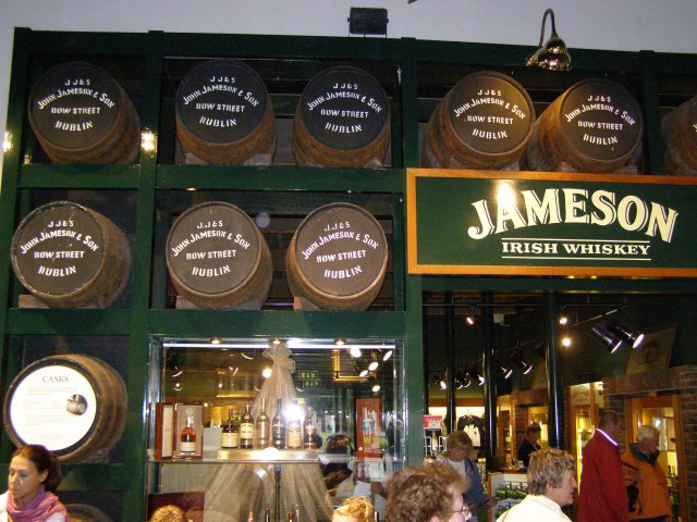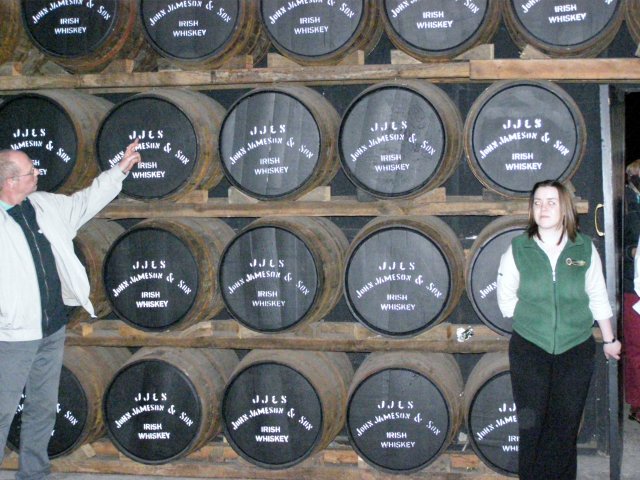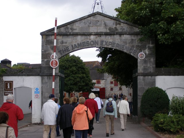 We rijden nu naar een plek waar Mels de hele reis al naar heeft uitgekeken. Een Whiskey Distillery. We gaan naar The Jameson Experience in Midletown. Jameson is een Ierse Whiskey. Het bedrijf werd in 1780 in Dublin opgericht door John Jameson. In 1966 ontstond de Irish Distillers Group door een samenwerkingsverband tussen Cork Distillers, Jameson and John Powers. De distilleerderij in Midleton produceert de meeste Ierse Whiskey. Whisky (of Whiskey) is een sterke drank die gemaakt wordt van gemout graan, waarbij malt Whisky gedistilleerd wordt van gemoute gerst in een potketel en grain Whisky ook van andere graansoorten (voornamelijk maïs) in een kolomketel. De naam komt van het Iers-Gaelische Uisce (of Uisge) Beatha (uitspraak iesjkje bjaha) en het Schots-Gaelische Usquebaugh, wat “levenswater” betekent. Van de gemoute gerst wordt een beslag gemaakt, dat men vervolgens laat gisten en dat met een alcoholpercentage van ongeveer 7,5% wordt gedistilleerd. Het distilleren wordt afhankelijk van het gebied 2 (Schotland) of 3 (Ierland) maal gedaan. Dit product (“moutwijn”) bevat nu ongeveer 70% alcohol en wordt teruggebracht naar 65% om daarna gelagerd te worden in bourbon- of sherryvaten. Na minimaal 3 jaar mag het Whisky genoemd worden en wordt het gebotteld. Anders dan met wijn stopt het smaakveranderingsproces nu en is de drank lang houdbaar zonder smaakverlies.