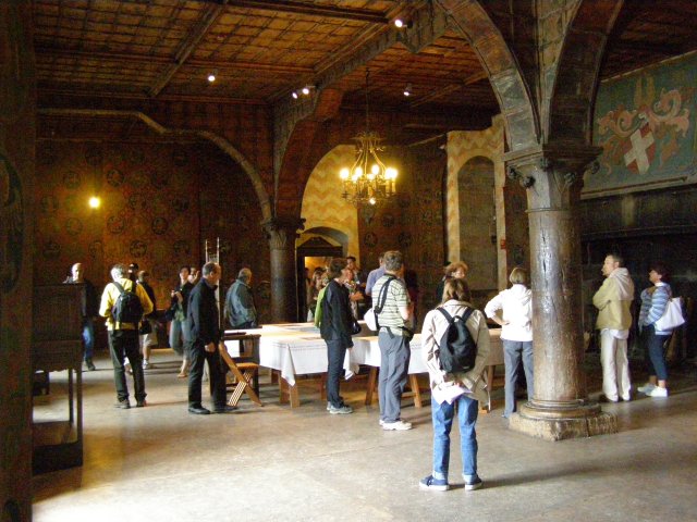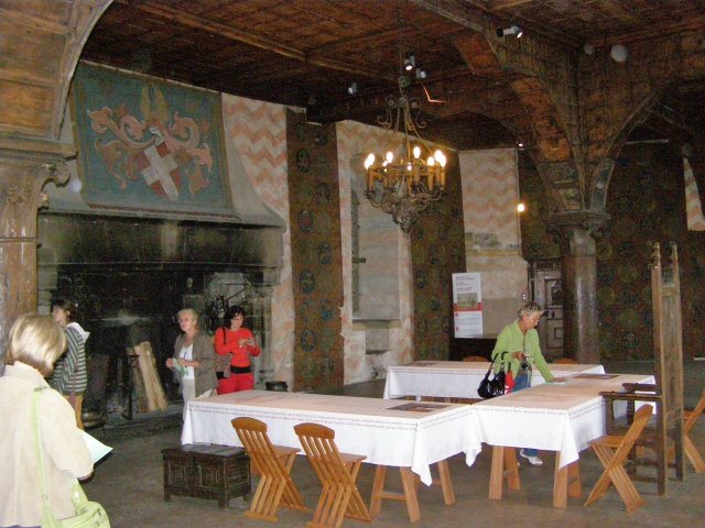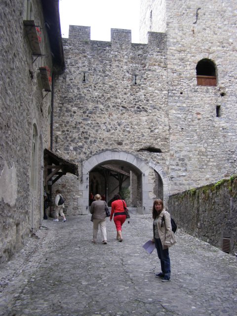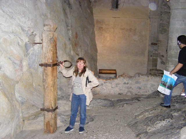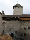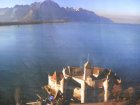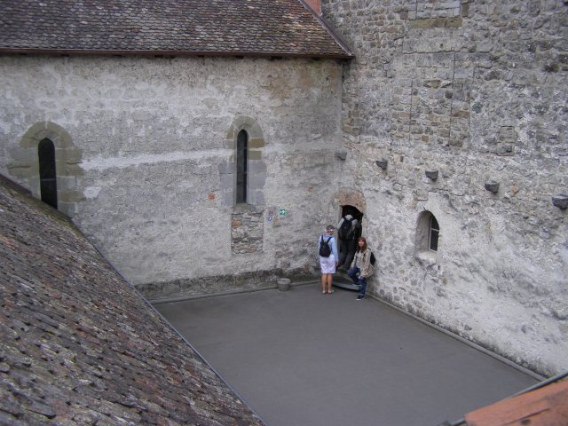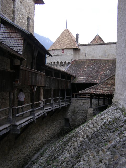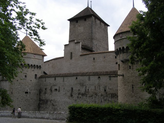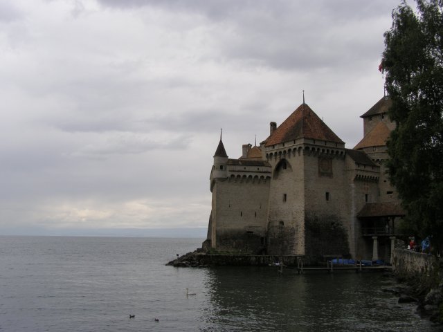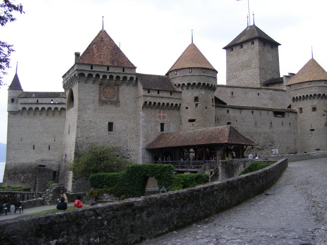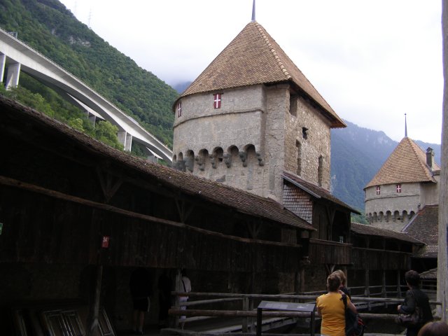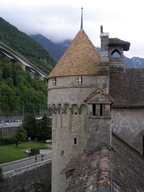 We rijden terug richting Montreux. Bij Allschwil tanken we nog even. We hebben pech als we bij Montreux komen. Hier is het Jazz festival wat de hele week duurt. Via omleidingen komen we aan bij Kasteel Chillon. Het Kasteel van Chillon is een oude burcht gelegen aan het meer van Genève, iets ten oosten van Montreux bij Veytaux. We hebben kaartjes gekregen in het hotel om het kasteel te kunnen bekijken. Als Mels de kaartjes afgeeft krijgen we direct de Nederlandse beschrijving van het kasteel. Het kasteel, uit de dertiende eeuw, is één van de best bewaarde middeleeuwse kastelen van Europa. De reden het kasteel op deze rotspunt in het meer van Genève te bouwen, is de strategische positie: steil aflopende rotsen aan één kant en aan de andere kant het meer, dat op deze plek 300 meter de diepte ingaat. In de bronstijd was er geen pad rond het meer, de route liep op deze plek 200 meter hoger over de rotsen. Het is een indrukwekkend kasteel. Door de cijfers te volgen kan men de hele rondleiding door het kasteel volgen. Het lijkt van buiten niet zo groot. Maar als men erdoor heen loopt staat men er versteld van hoeveel vertrekken / ruimtes er zijn. Het kasteel bestaat uit meer dan twintig gebouwen en verschillende binnenplaatsen. Een van de torens word de Donjon genoemd. Deze ligt in het midden van de rots van Chillon en dateert waarschijnlijk uit de Xle eeuw. Tijdens de renovatie van de Donjon in de XXe eeuw werden er trappen geplaatst om helemaal naar boven in de Donjon te kunnen gaan, waar men een 360 graden panorama heeft op het kasteel en zijn omgeving. We hebben er geen spijt van dat we hier naar toe zijn gegaan.