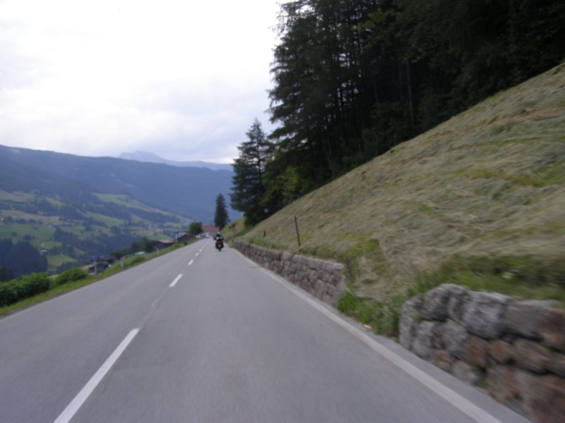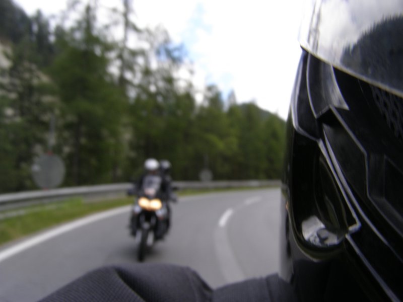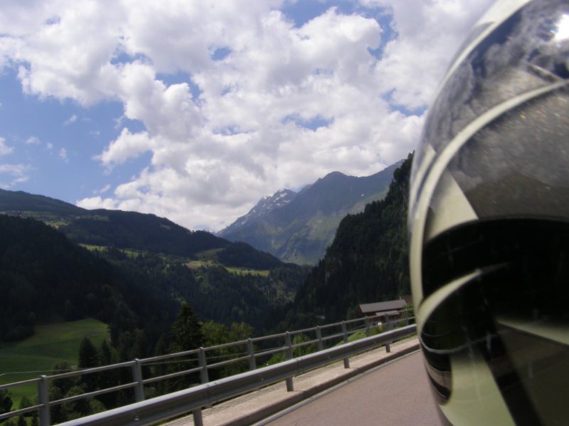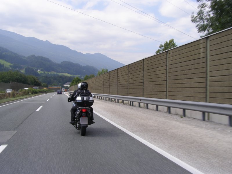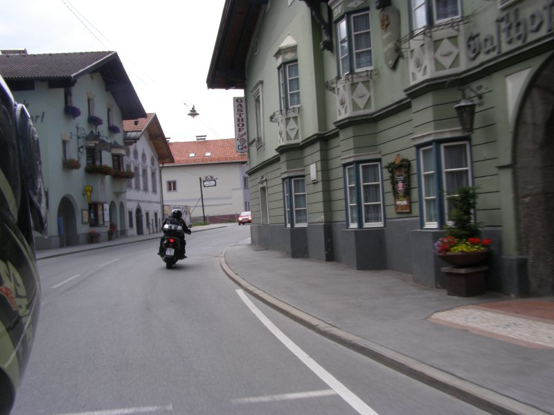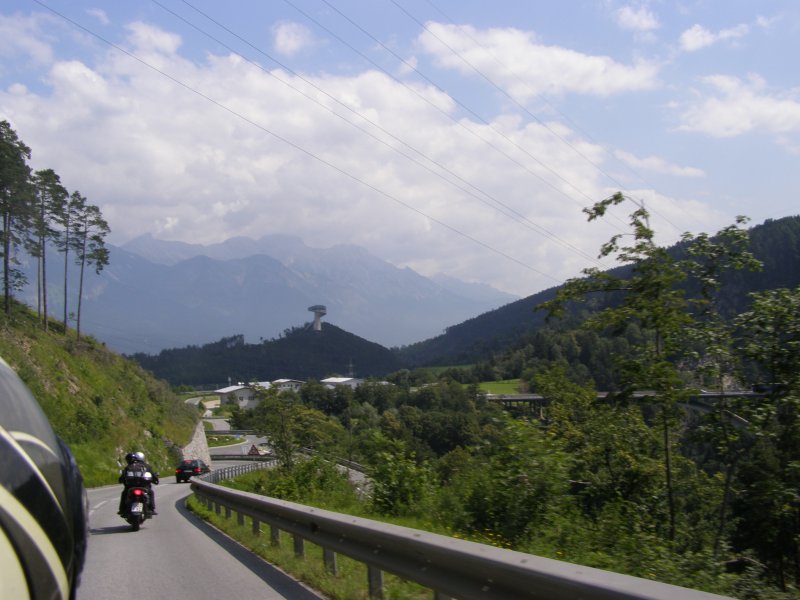 Om 8:00 uur loopt de wekker af. Maar we willen nog even lekker blijven liggen. Toch maar niet te lang blijven liggen want we willen vandaag weer motor rijden samen met Raymond en Claudia. Wassen, aankleden en naar het ontbijt. De temperatuur vandaag zal oplopen tot 25 graden Celcius. Het ziet er bewolkt uit. We zien wel. Claudia en Raymond zitten al aan het ontbijt. Ontbijten, kletsen en het lunchpakket klaar maken. Om 10.15 uur zitten we op de motor voor onze tourtocht van vandaag. Raymond zal vandaag voorop rijden. We moeten eerst helemaal naar Innsbruck rijden. Onderweg hebben we al getankt maar in Innsbruck tanken we nog een keer. Het is niet veel maar voor iets meer dan € 3,00 hebben we de tank helemaal vol (Red. Mels zo’n 2 liter in 48 km, een nieuw record 1 op 24). Dit doen we daar we op de route misschien geen tankstation kunnen vinden.
