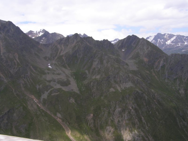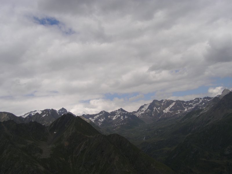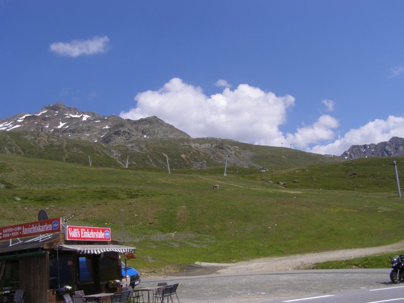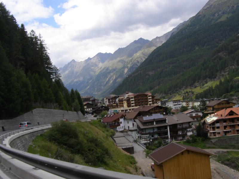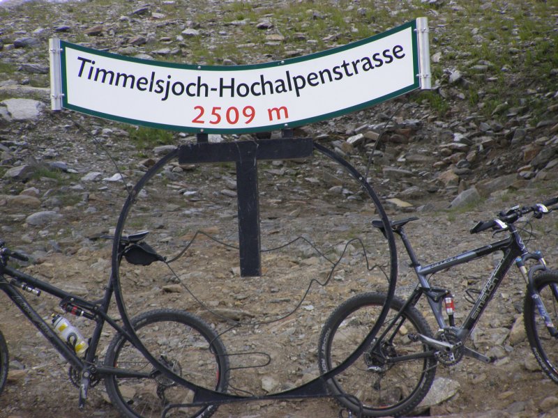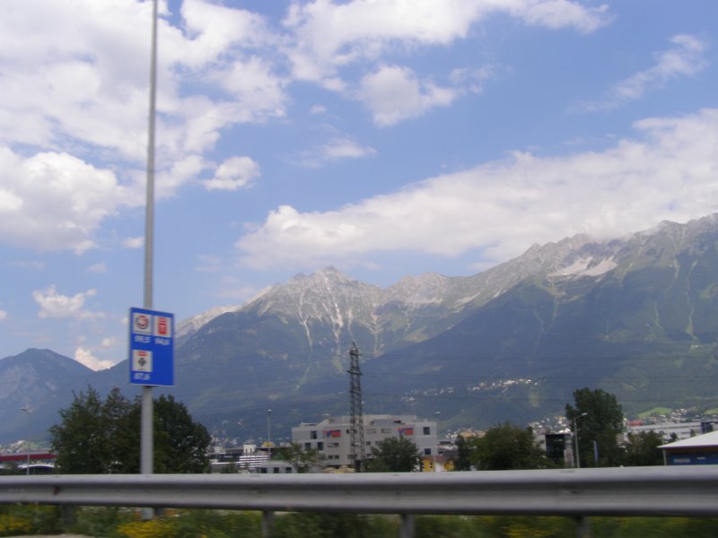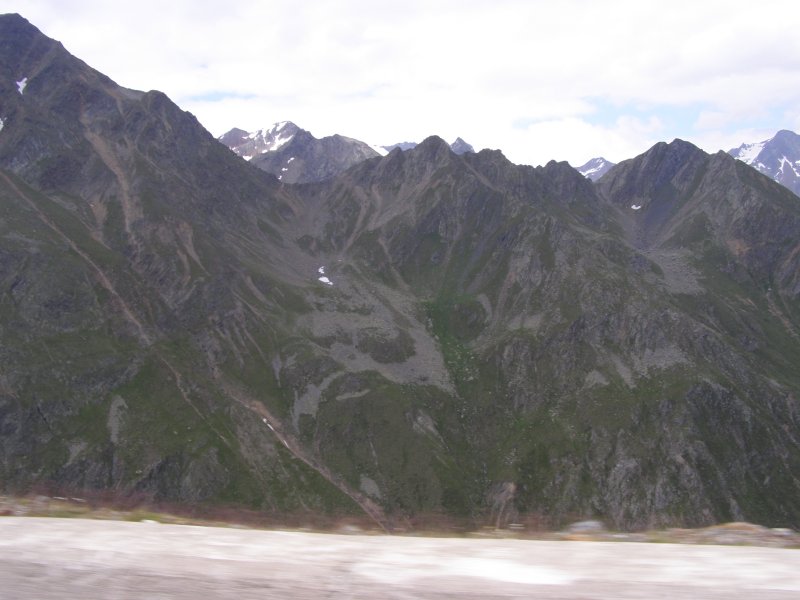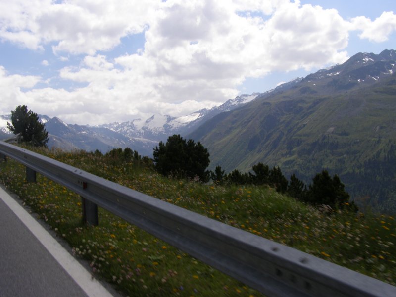 Dan gaan we op weg naar de Timmelsjoch. Als we een stuk hebben gereden krijgt Mels een beestje in de helm. Even stoppen, weg vegen, helm op en verder. Mels haalt Raymond en Claudia in rijdt dan voorop door tot we bij een stop plaats komen op de Timmelsjoch. De Timmelsjoch (Italiaans: Passo del Rombo) is een 2509 meter hoge bergpas op de grens tussen het Oostenrijkse Tirol en het Italiaanse Zuid-Tirol. De pas verbindt Sölden in het Ötztal met St. Leonhard in Passeier in het Passeiertal richting Meran. De Timmelsjoch scheidt de Ötztaler Alpen van de Stubaier Alpen en is gelegen tussen twee bergtoppen, de Jochköpfl (3141 meter) in het noordoosten en de Wurmkogl (3082 meter) in het zuidwesten. De pas is veel minder belangrijk voor het verkeer dan de Reschenpas (40 kilometer westelijker) of de Brennerpas (25 kilometer oostelijker). De naam Timmels stamt vermoedelijk af van het Latijnse tumulus, wat heuvel betekent. Even later komen Raymond en Claudia ook boven aan. Samen eten en drinken. We rijden door de tunnel en komen aan de andere kant van de berg terecht. Hier maken we nog enkele foto’s. Dan komen we aan bij een punt waar we tol moeten betalen € 4,50. We rijden verder richting Solden, Längenfeld en Oetz. Van hieruit rijden we naar Innsbruck.