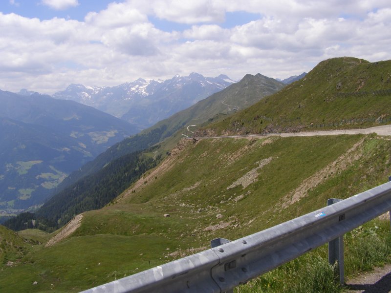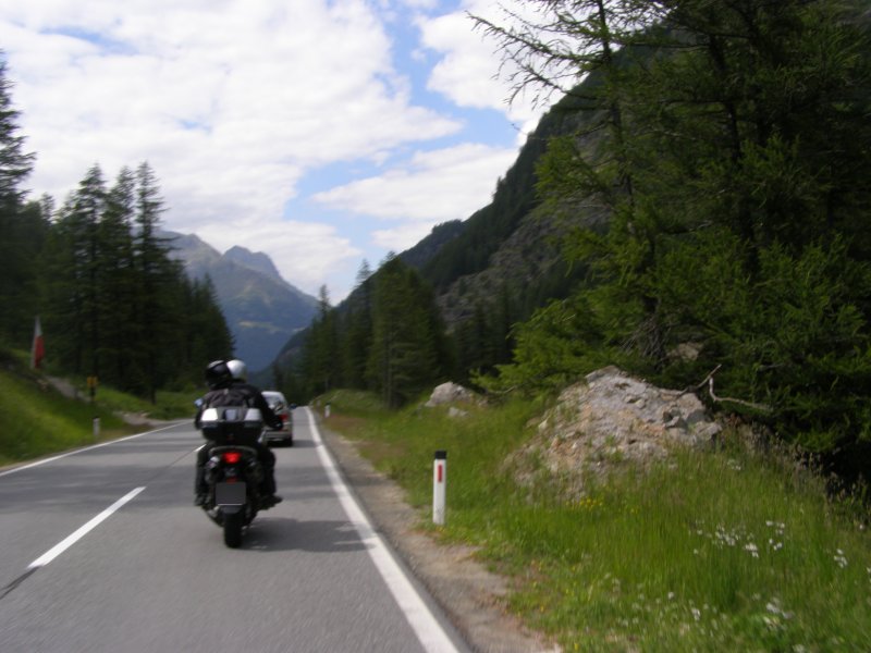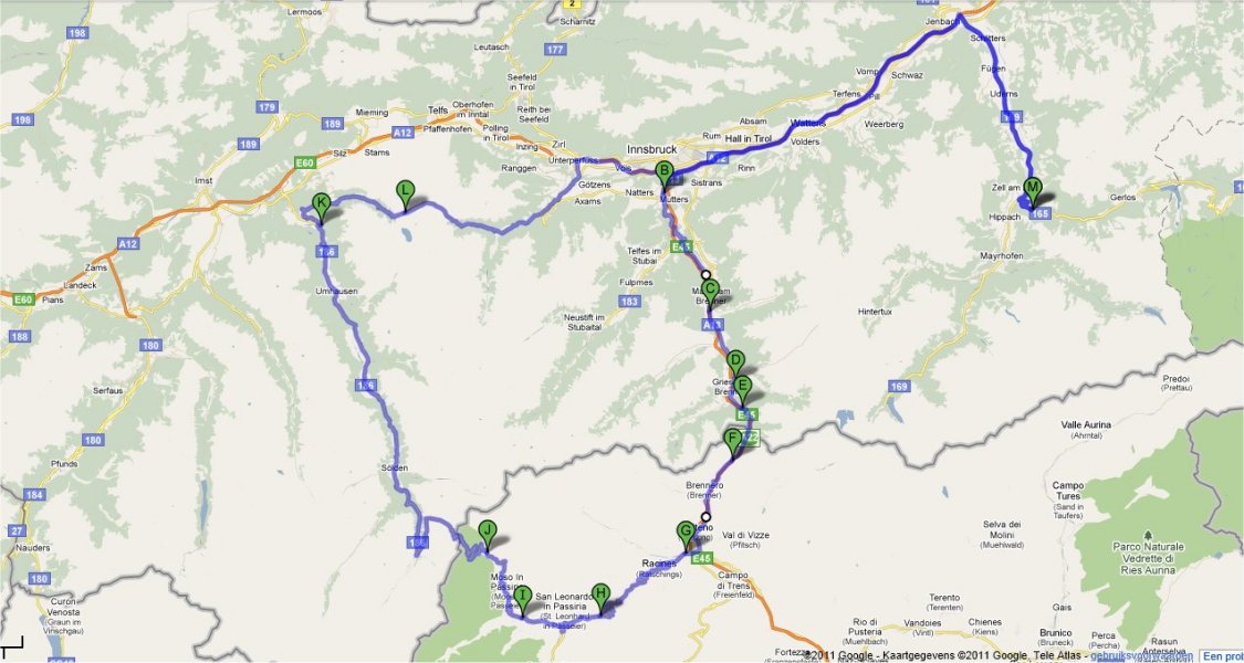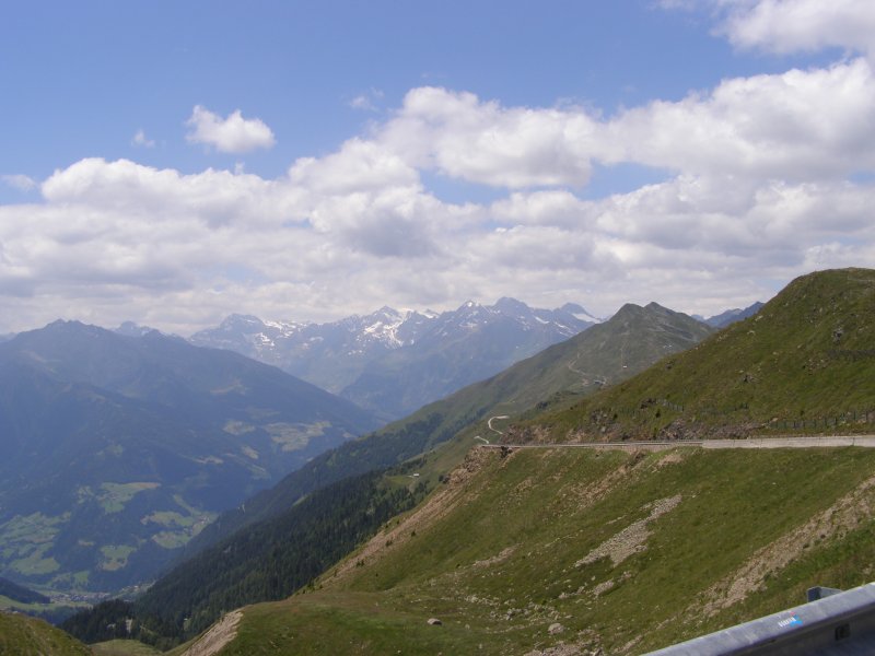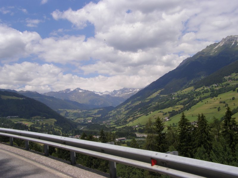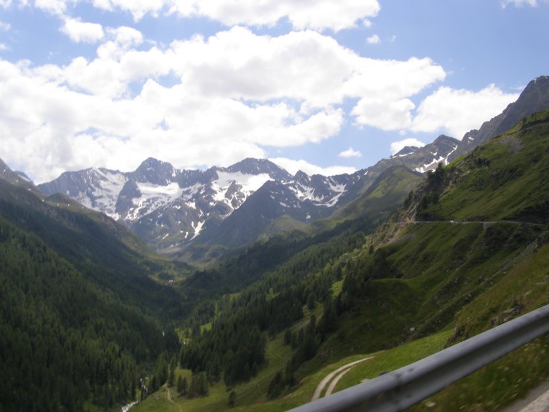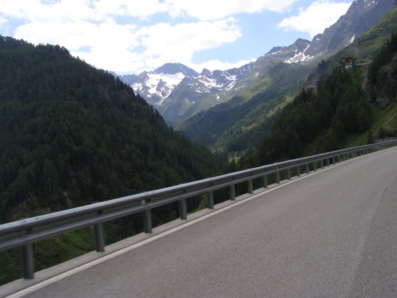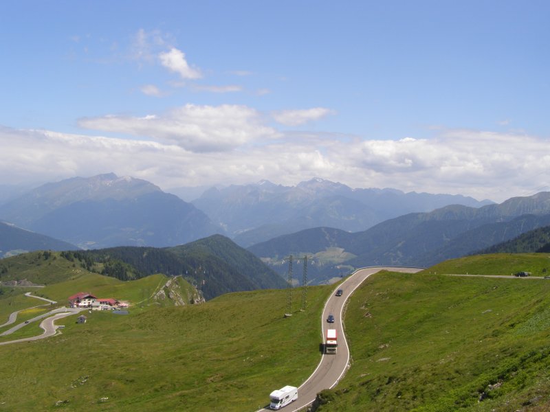 Dan beginnen we aan onze route. We rijden eerst naar de Brennerpas. We rijden niet de Brennerautosnelweg maar de weg die erlangs loopt. De Brennerpas (Italiaans: Passo del Brennero) is een bergpas door de Tiroler Alpen op de huidige grens tussen Oostenrijk en Italië. Het is een van de weinige toegankelijke punten (op een hoogte van 1375 meter) in Tirol waar de Alpen overgestoken kunnen worden, en daarom werd de pas in het verleden door beide naties opgeëist. We zien veel en komen dan bij de Jaufenpas aan.