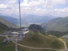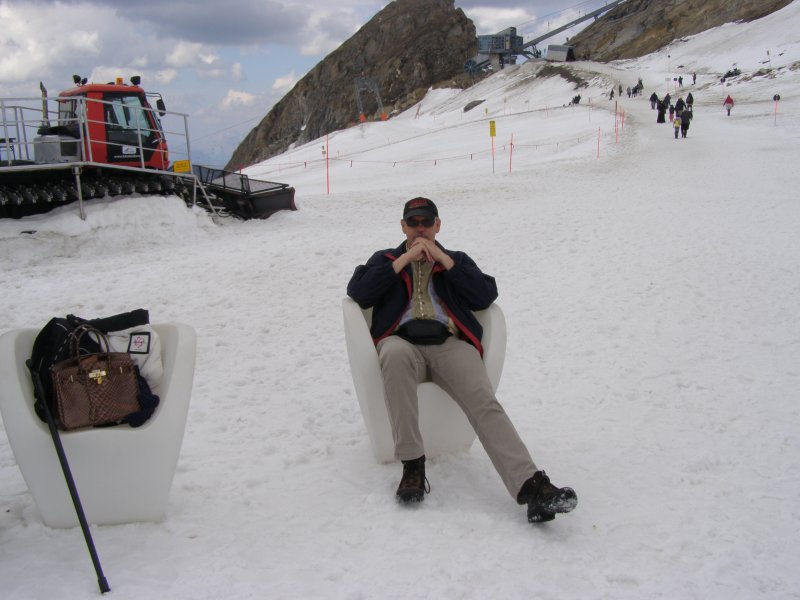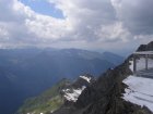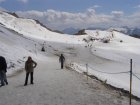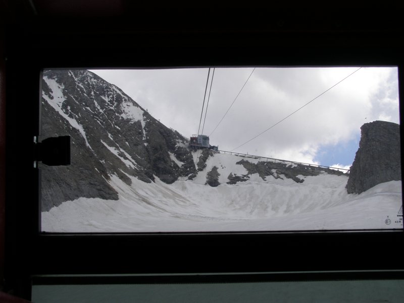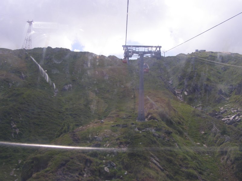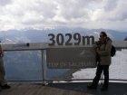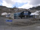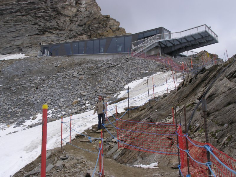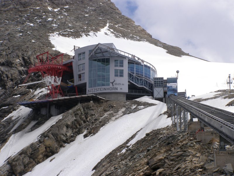 Bij de volgende kassa is de dame achter de kassa zo vriendelijk om te zeggen dat we even moeten wachten. Het blijkt nog geen 14:00 uur te zijn. Voor 14:00 uur betaal € 29,50 uur en erna € 22,00 + € 2,00 toeslag p.p. We betalen en gaan naar de eerst gondel. We kunnen direct instappen en daar gaan we omhoog. Het is een mooi uitzicht vanuit de gondel. Als we bij het eindpunt van deze gondel aankomen stappen we uit en lopen het gebouw uit. Er ligt nog sneeuw maar niet veel. We lopen door naar het volgende gebouw en kunnen hier de volgende gondel naar boven nemen. We kunnen direct instappen en daar gaan we weer verder omhoog. Bij de volgende halte stappen we uit en gaan we naar de laatste gondel die ons naar het eindpunt zal brengen. Dit is een grote gondel er kunnen 60 personen in. Zo komen we aan bij het bergstation van de Kitzsteinhorn op 3029 meter zeehoogte. Het is niet alleen het hoogste voor iedereen bereikbare punt in het Salzburger land, vanaf half december 2010 wordt deze ook het hoogtepunt van het alpine aanbod. In het nieuwe, omgebouwde bergtopstation zal de “Gipfelwelt 3000” het gewaagde gebouw ook aan de binnenkant met de Cinema 3000 en de Nationalpark Gallery, de alpine geest inblazen. Fascinatie, energie en opwekkende krachten van de hoog-alpine natuur en het nationale park Hohe Tauern kunnen hierdoor met alle zintuigen beleefd worden. Het geheel wordt gecompleteerd met een moderne infrastructuur, die je op deze hoogte niet zou verwachten. Het omgebouwde bergstation werd half december 2010 geopend met de nieuwe Gipfelwelt 3000 en het nieuwe bergtop restaurant; het nieuwe uitzichtplatform volgde in het zomerseizoen 2011.