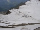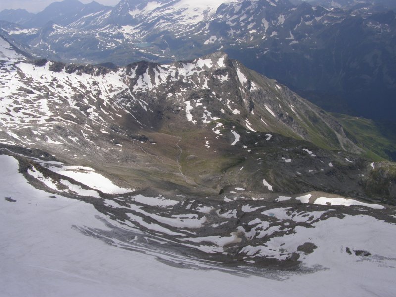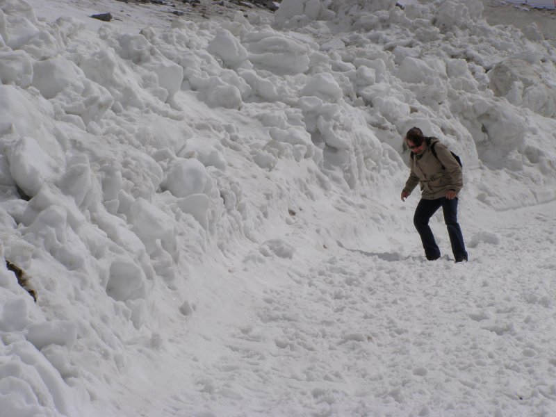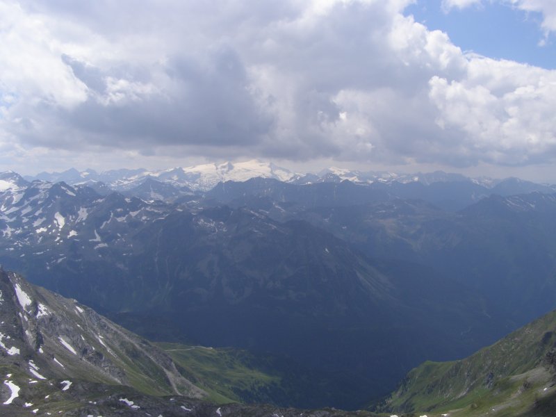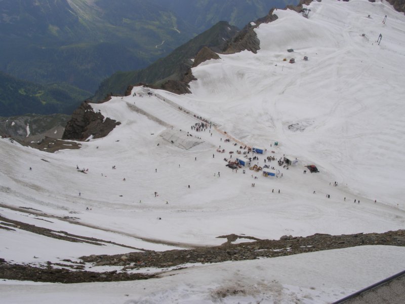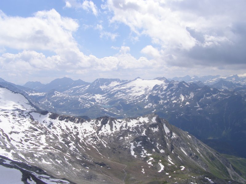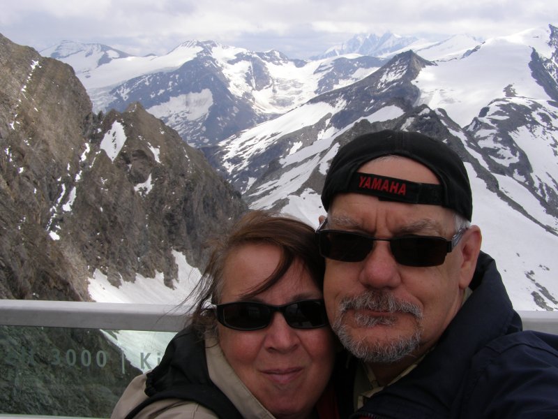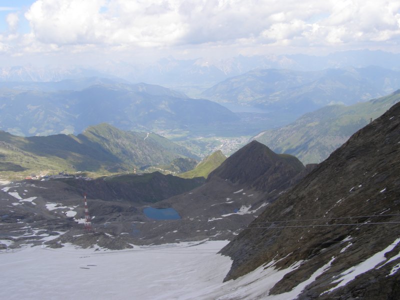 We kunnen van hieruit zelfs de Großclockner zien. We maken foto’s en eten en drinken hier nog iets. We kunnen via een pad omlaag bij de gletsjer komen. We besluiten naar beneden te gaan en ploeterend, (Toos 2 x vallen) komen we beneden aan. Mels kan het niet laten en moet even met sneeuwballen gooien. Als we beneden komen lopen over de gletsjer en maken foto’s. We lopen via de andere kant naar boven en hier kunnen we met een gondel weer bij het bergstation terecht. We gaan nog in het bergstation naar de Cinema 3000 kijken. Mels filmt nog een stukje en dan lopen we richting gondel. Er staat nog niemand maar binnen enkele minuten staat de wachtruimte helemaal vol. Het word even proppen maar als de deuren dicht zijn gaan we naar beneden. Mels en ik spreken af dat als we beneden zijn snel doorlopen naar de volgende gondel. Als de gondel stopt stappen we snel uit en lopen door naar de volgende gondel. Zo stappen we nog een keer over en om 17:00 uur zitten we in de auto. We hebben een mooie dag gehad. Mooi zonnig weer. Volop genoten.