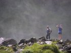 Toos klimt over de natte stenen omhoog en ondertussen maakt Mels foto’s van haar. Het is glibberig op de stenen maar met de wandelschoenen aan gaat het goed. Als Toos weer naar beneden gaat klimt Mels ondertussen naar boven om van daaruit ook nog foto’s te maken. We besluiten over het pad een stuk naar boven te lopen. Bij de eerste uitkijkpost maken we foto’s en lopen door naar de tweede uitkijkpost. Hier maken we ook nog enkele foto’s. We besluiten om niet helemaal naar boven te lopen want we willen vandaag nog meer gaan bekijken.
