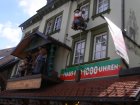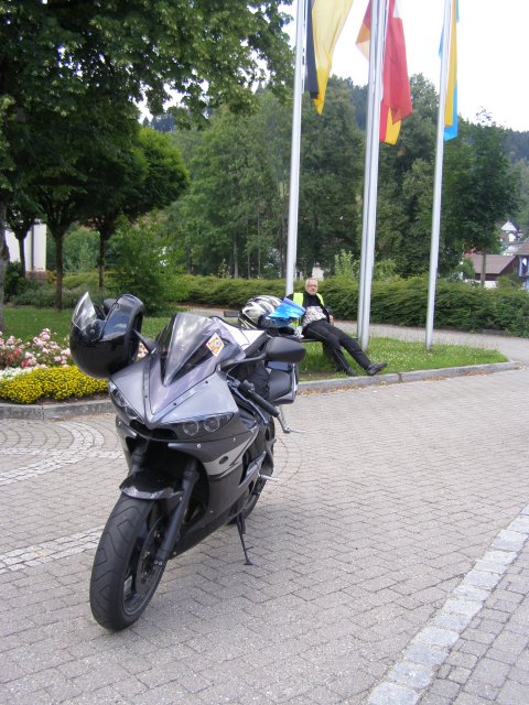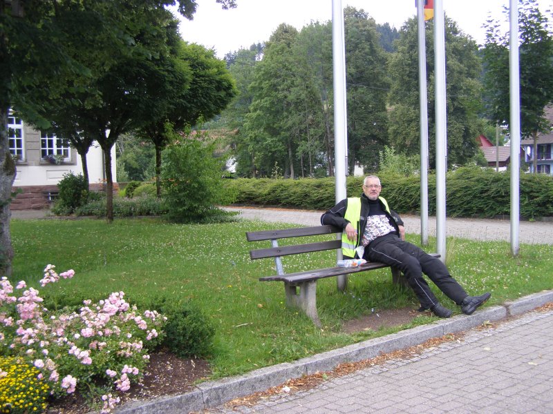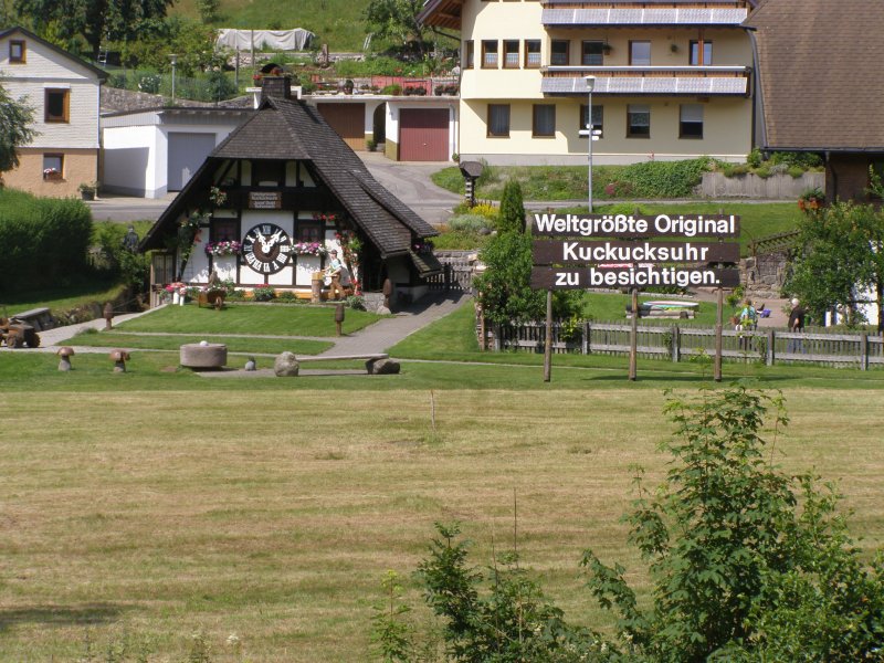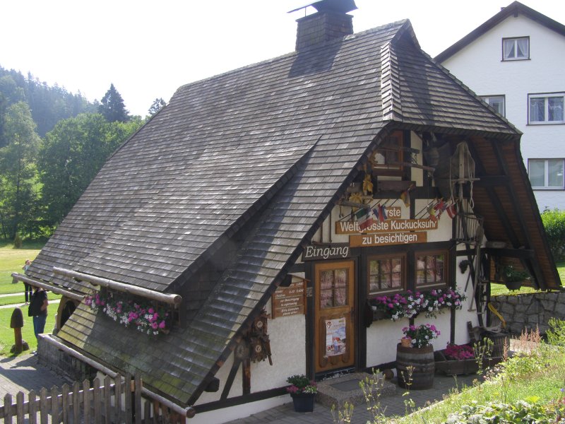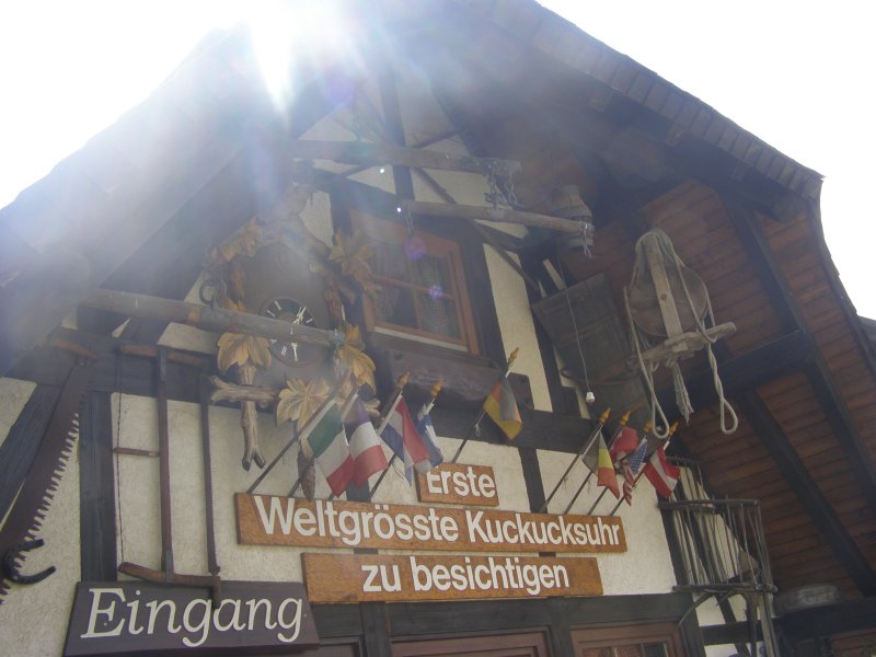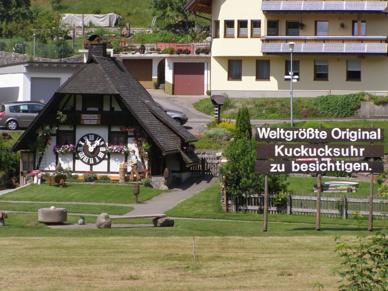 Om 10:00 uur vertrekken we voor de eerste tocht door het Schwarzland. Tom Tom laat ons in het begin af en toe in de steek. Maar nadat Mels eens goed heeft gefoeterd doet de Tom Tom wat hij moet doen. Het is een mooie route wat Mels heeft uitgezet. Alleen op sommige stukken is de weg erg slecht. We besluiten om ook maar weer wat cultuur te snuiven. Dan zien we een bordje van koekoeksklokken staan. We staan dan voor een winkel. Toos verteld dat ze heeft gelezen dat in Schonach een huis moet staan zo groot als een huis. Dan zien ze een bordje hoe ze er kunnen komen. De eigenaar heeft er twee jaar over gedaan om deze grote klok te kunnen bouwen. We maken enkele foto’s en besluiten om verder te rijden. We willen kijken of we bij de Triberger watervallen kunnen komen. Dit is de hoogste waterval van Duitsland. Het water stort er zich 160 meter naar beneden. We zien de bordjes waar het pas is om omhoog te lopen. Maar omdat we de motorkleding aanhebben en deze ongemakkelijk is met lopen besluiten we toch maar om door te rijden.