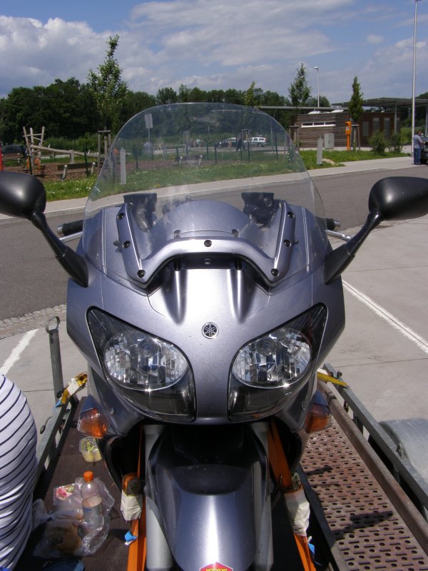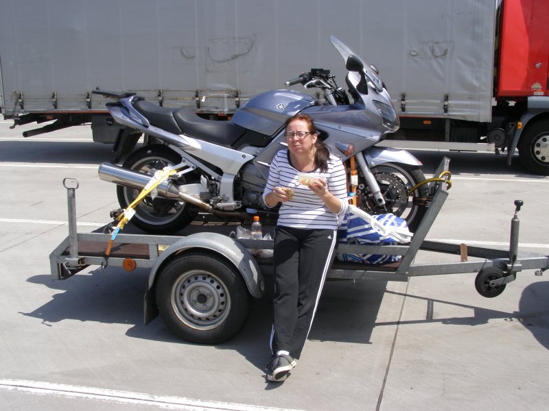 Gisteren hebben we de auto ingeladen en de motor op de kar gezet. De auto inladen ging sneller dan we dachten. Met het steek wagentje hebben we alles naar de auto gebracht. Dit was maar een paar keer lopen en klaar was de auto. De motor, dit keer nemen we de Yamaha FJR 1300 mee op vakantie, ging gemakkelijk op de motorkar maar het vastzetten nam veel tijd in beslag. Nog snel iedereen gebeld en nog enkele uurtjes naar Frits en Angelique geweest.