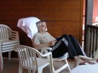 Dan eerst alles uit de auto uitladen . De motor van de motortrailer en dan auto, motortrailer en motor in de garage zetten. Alles is hier beveiligd met een code. Even alles opruimen. Mels gaat even de info doorlezen die er ligt. Nadat we alles hebben opgeruimd en hebben doorgelezen gaat Mels nog filmen en gitaarspelen. Toos gaat iets te eten klaarmaken. Nadat we hebben gegeten wordt het lekker luieren en uitrusten.