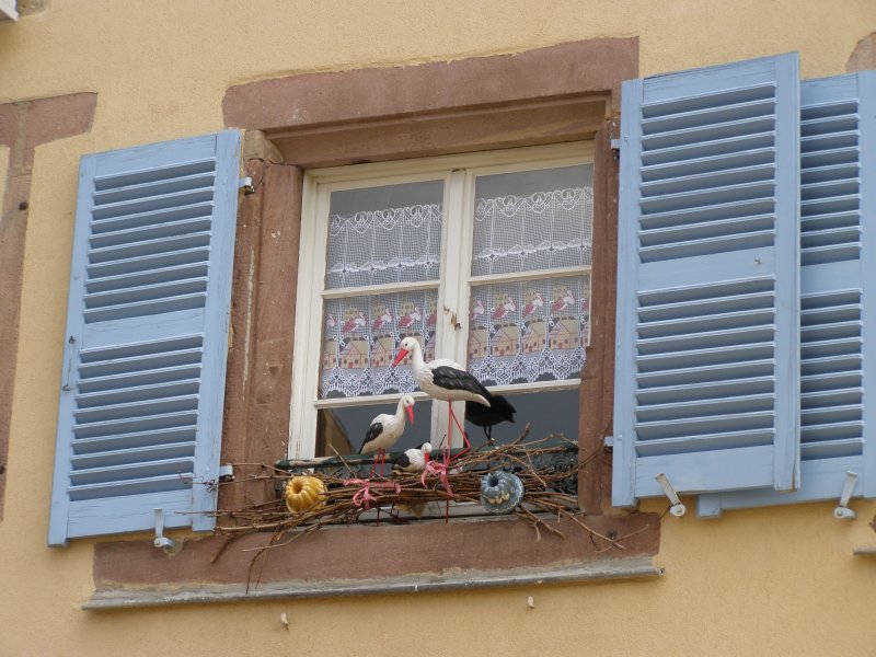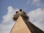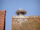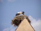 Op verschillende daken zie je ooievaarsnesten. Ook hoor je ze klepperen. We vinden in een winkeltje een magneet en kopen die. Veel wijn winkels zijn er. We lopen langzaam terug naar het appartement en gaan eerst koffie drinken als we er zijn. We gaan dan even naar de receptie om alvast de toeristenbelasting te betalen. Dit is voor ons beide een week totaal € 9,10. We krijgen daar te horen dat er vanavond een concert word gegeven. Maar hoe of wat? We laten ons wel verrassen. Omdat we al betaald hebben kunnen we morgenvroeg dan wegrijden wanneer we willen. Sleutels kunnen we in een brievenbus deponeren.
