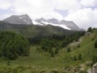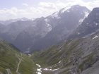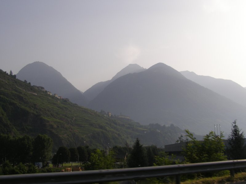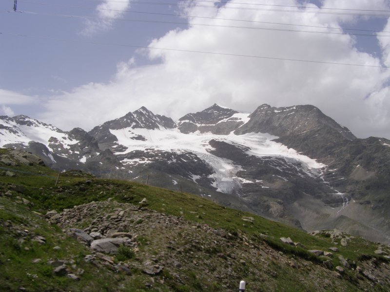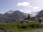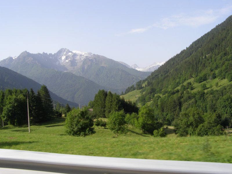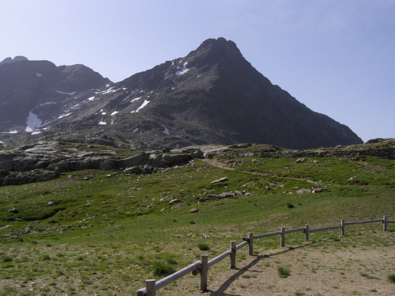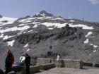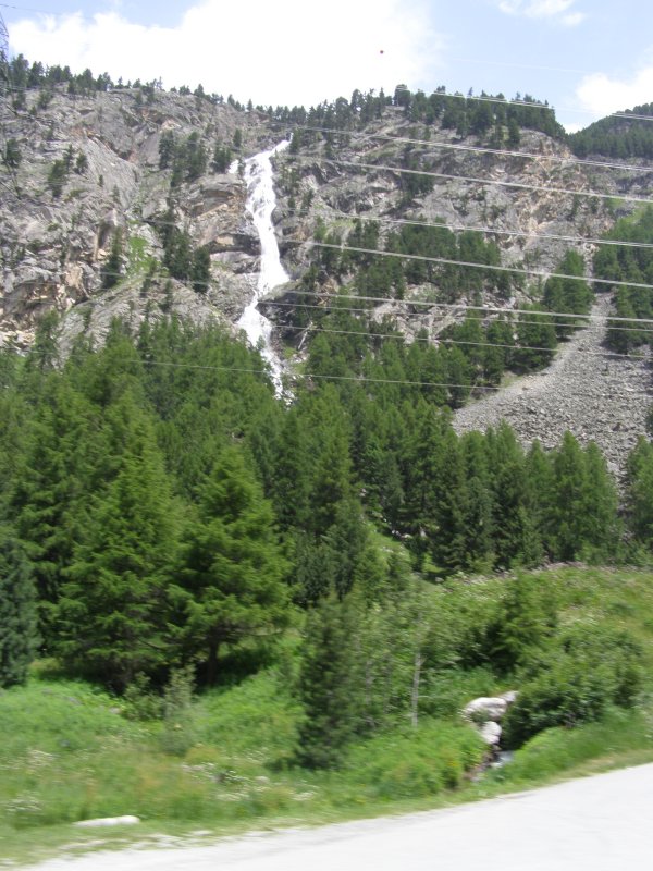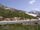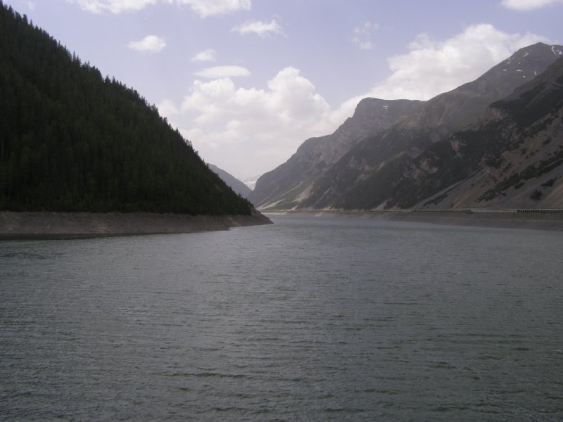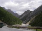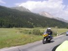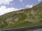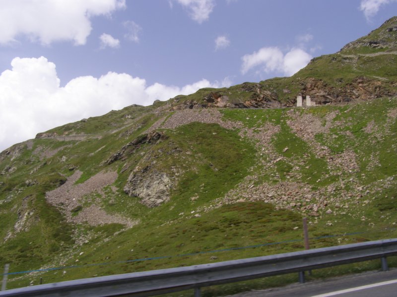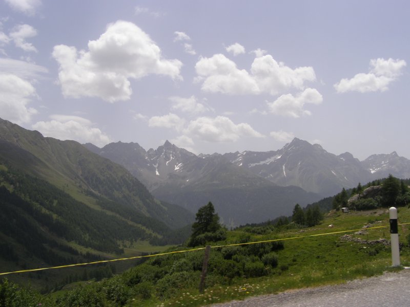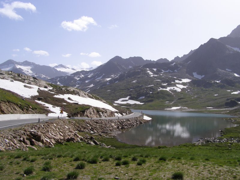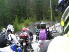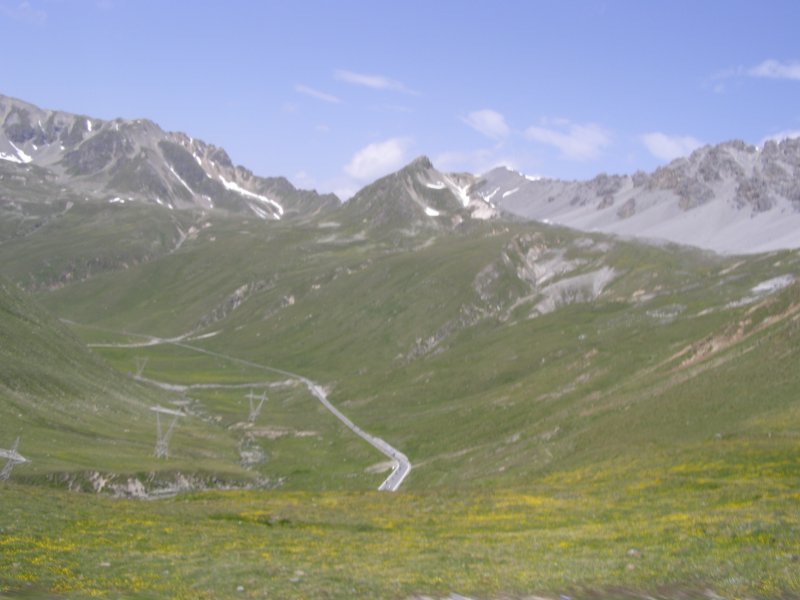 Als we boven aankomen is het zo druk dat we er niet stoppen maar even doorrijden. Daar maken we enkele foto’s. En dan rijden we nog een keer over de top en rijden via een andere weg (de Umbrallpass) naar beneden. Hier is het niet druk. Rustig rijden we naar beneden een gedeelte van de pas is onverhard maar is goed te rijden met de motor. Om wederom in Italië te komen besluiten we de Munt-la-Shera tunnel te nemen. Dit is een 3 km lange tunnel die een enkelbaanstunnel is en er is wisselende rijrichting. Het kan ongeveer 15 minuten duren eer dat men erdoor mag. In de zomer kan de wachttijd langer duren in verband met drukte. Aan het einde van de tunnel moeten we tol betalen € 9,00.