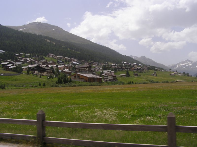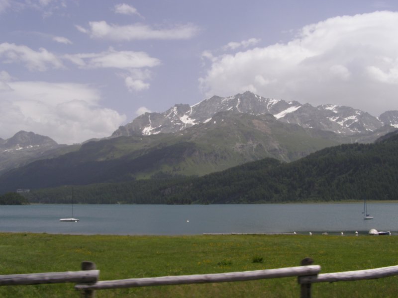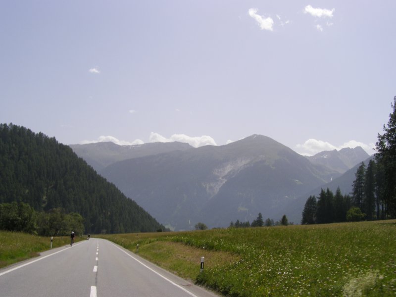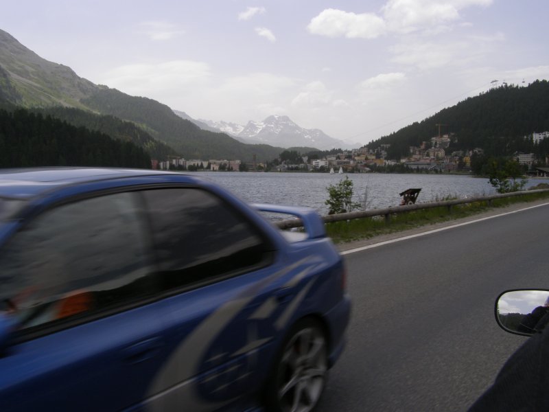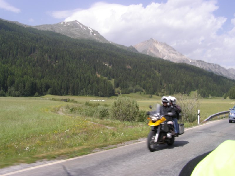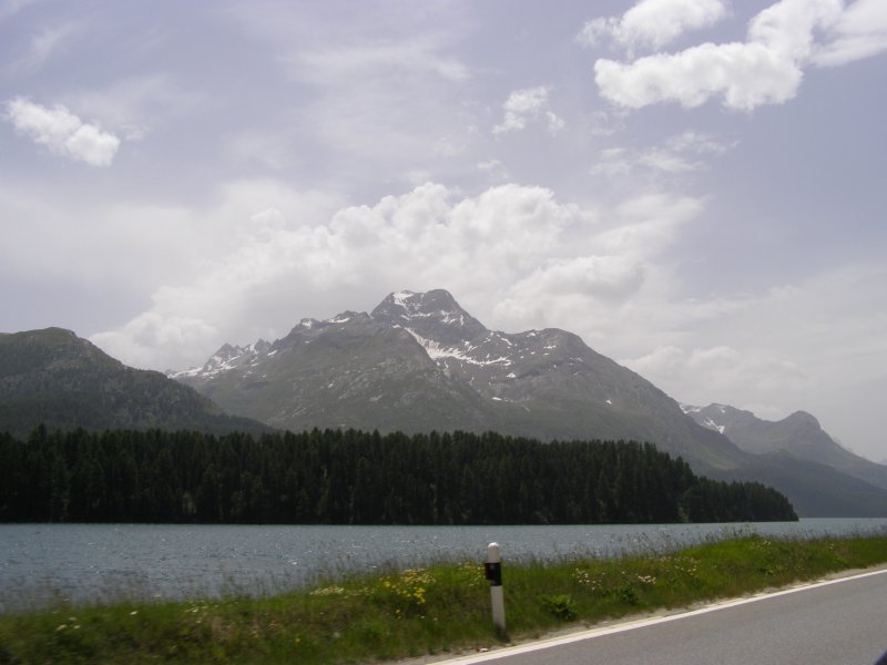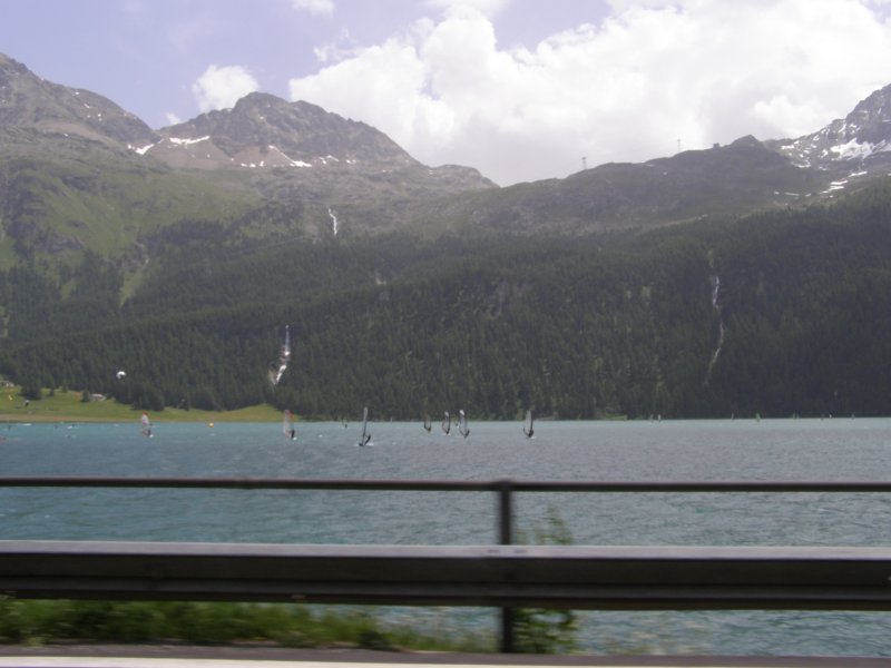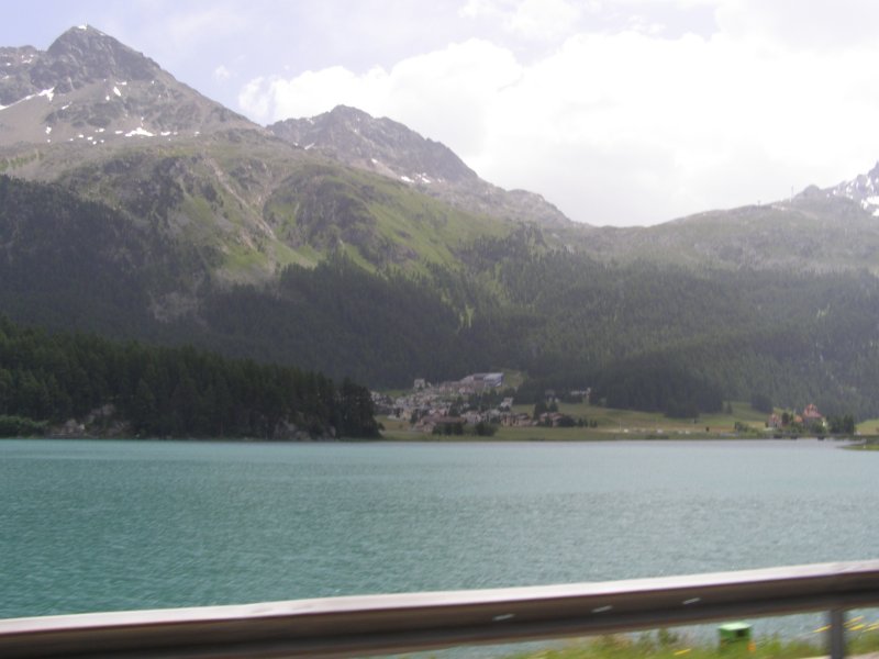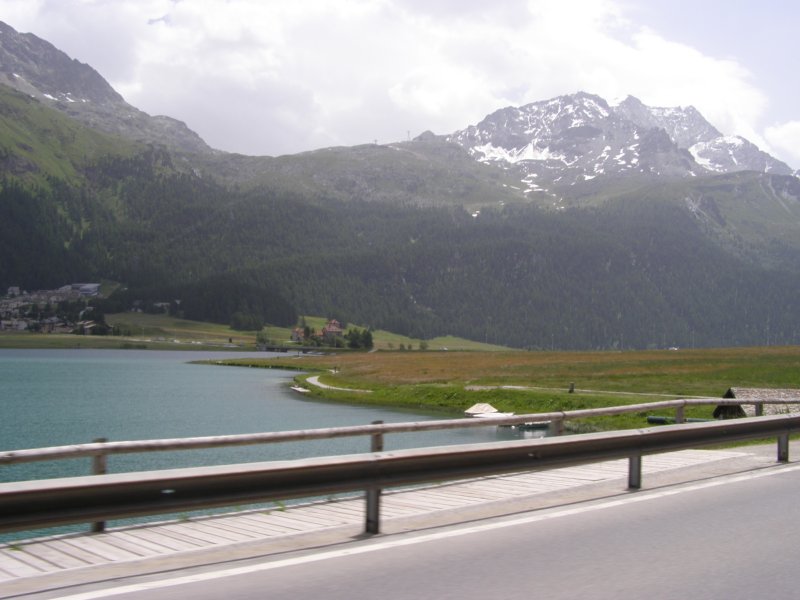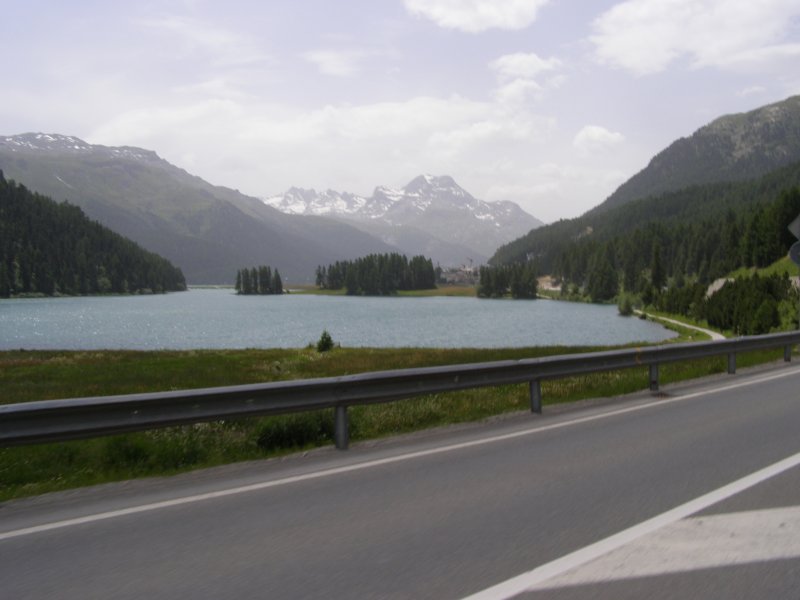 Via St. Moritz rijden we dan terug. We zien onderweg nog een bord staan waar op staat dat het 35 graden is. Het laatste uur is het zwaarste. We zijn uit de bergen en het is dan behoorlijk warm.