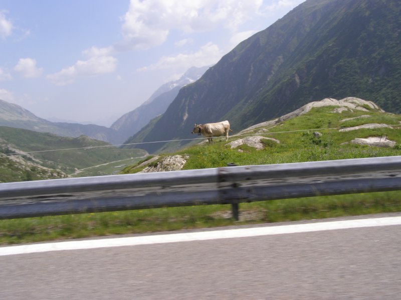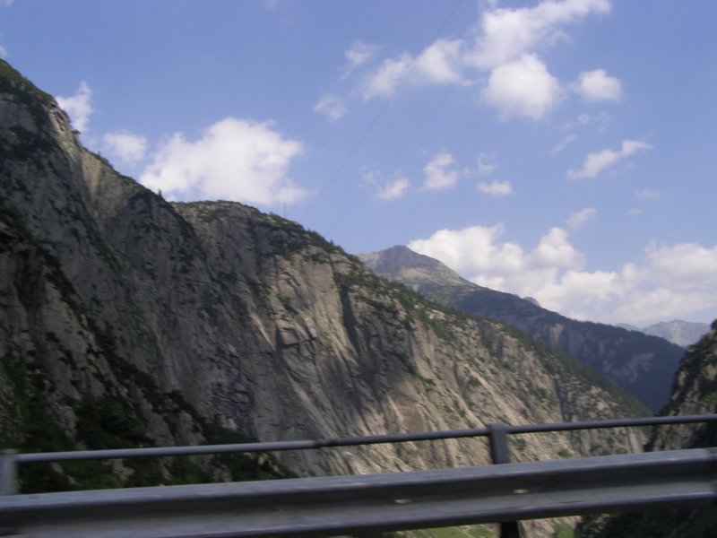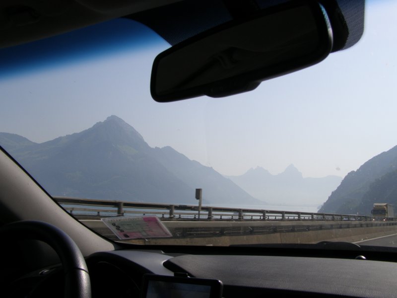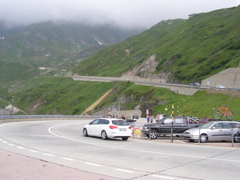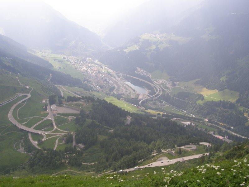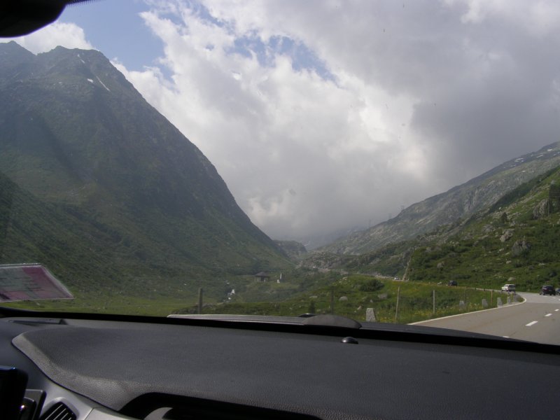 Als we doorrijden wat de Garmin aangeeft zijn we om 12:10 uur al op plaats van bestemming. Maar we willen ook nog stoppen om te eten en te drinken. Het rijden verloopt voorspoedig. Totdat we richting St. Gotthardtunnel rijden en zien we dat er een file staat. Niet lang daarna sluiten we ons in de file aan. Het is een lange file zien we en we besluiten om de afslag Wassen te nemen. We rijden dan de St. Gotthardpass. Het is wel omrijden maar we staan dan niet stil in de file. Het is een mooie route die we achteraf niet hadden willen missen.