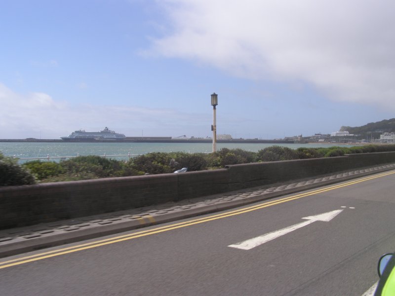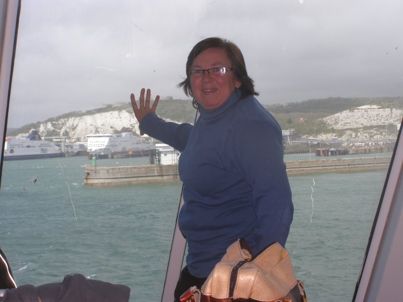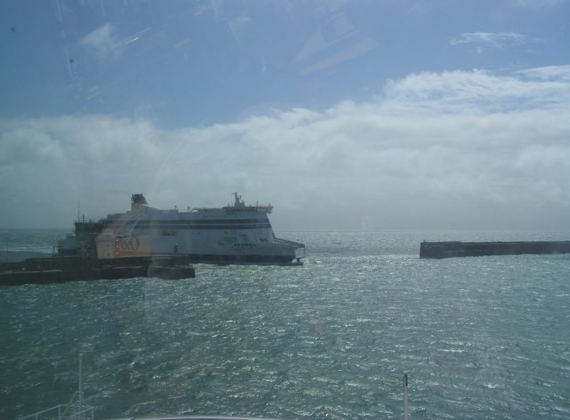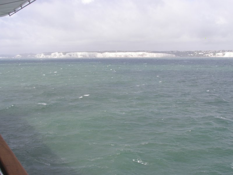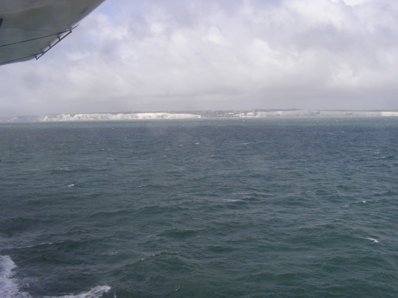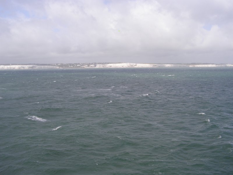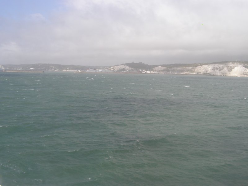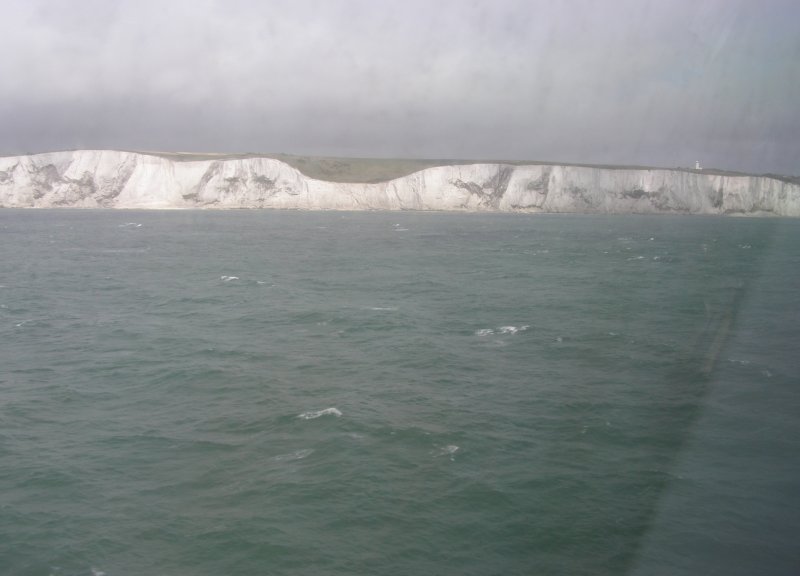 Om 8:45 uur is iedereen buiten bij de motor. Gepakt en gezakt rijden we naar de boot die ons naar Dover zal brengen. We rijden voorspoedig en zijn ook snel door de controles en de douane. Dan wordt het wachten totdat we de boot op kunnen. Alles verloopt snel en om 10:00uur is iedereen op de boot. Motors vastgesjord en naar boven om daar een plaatsje te zoeken waar we tijdens de overtocht kunnen zitten. We vinden aan de voorkant van de boot een fijne zitplaats. Jassen uit en helmen erbij leggen. We pakken nog iets wat we overhebben van het ontbijt, worst, crackers en een eitje. Net voor we aankomen bij de Engelse kust zien we de White Cliffs of Dover. Even na 11:00 uur Engelse tijd komen we aan bij Dover. Rustig de boot aan laten meren en naar beneden naar de motors. Zelf de motors losmaken en we kunnen na een tijdje van de boot af. We rijden met de stroom mee door Dover. We zijn in Engeland. Zie ook dit filmpje
