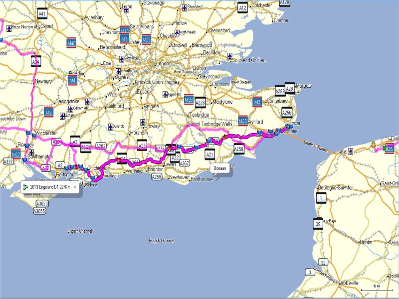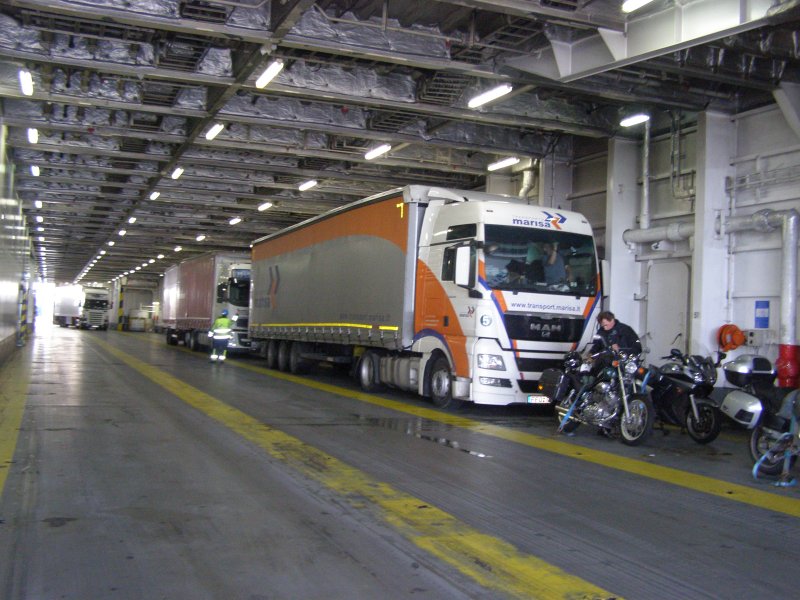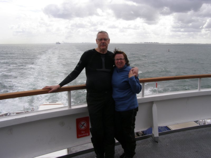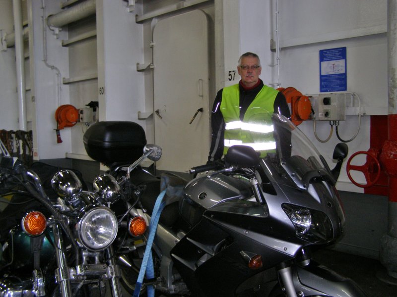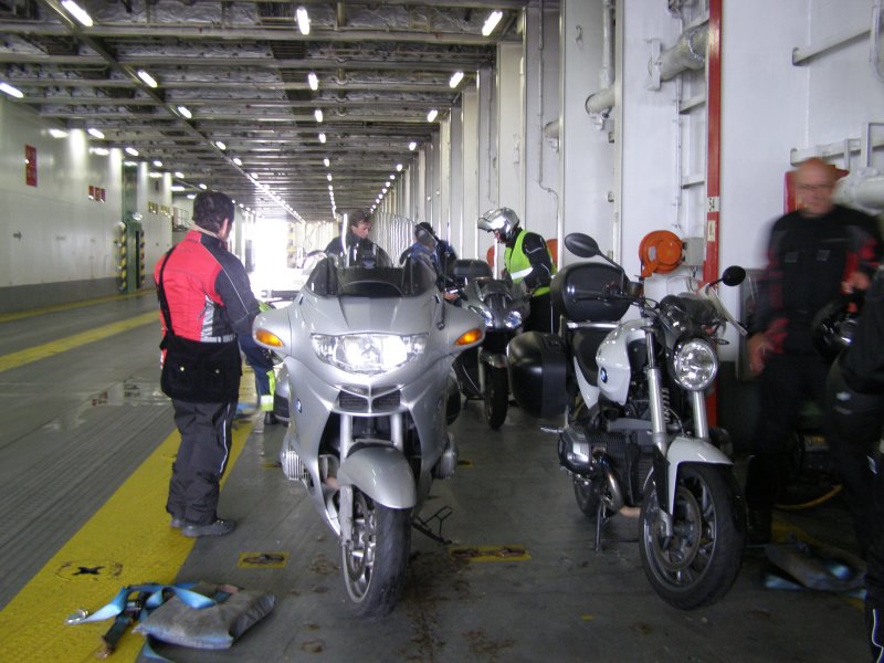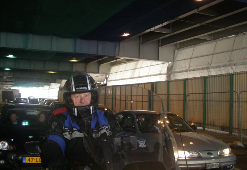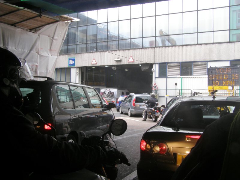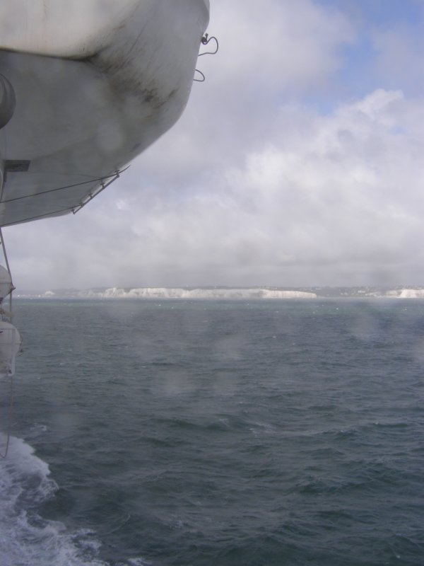 Om 8:45 uur is iedereen buiten bij de motor. Gepakt en gezakt rijden we naar de boot die ons naar Dover zal brengen. We rijden voorspoedig en zijn ook snel door de controles en de douane. Dan wordt het wachten totdat we de boot op kunnen. Alles verloopt snel en om 10:00uur is iedereen op de boot. Motors vastgesjord en naar boven om daar een plaatsje te zoeken waar we tijdens de overtocht kunnen zitten. We vinden aan de voorkant van de boot een fijne zitplaats. Jassen uit en helmen erbij leggen. We pakken nog iets wat we overhebben van het ontbijt, worst, crackers en een eitje. Net voor we aankomen bij de Engelse kust zien we de White Cliffs of Dover. Even na 11:00 uur Engelse tijd komen we aan bij Dover. Rustig de boot aan laten meren en naar beneden naar de motors. Zelf de motors losmaken en we kunnen na een tijdje van de boot af. We rijden met de stroom mee door Dover. We zijn in Engeland. Zie ook dit filmpje