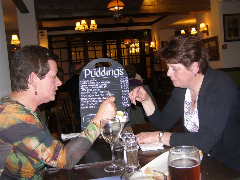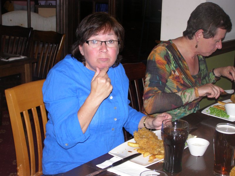 Vandaag is het anders als de andere dagen. Er zijn maar 2 kamers. De dames gaan bij elkaar slapen en de heren bijelkaar. Nadat we alles op de kamers hebben gebracht gaat iedereen zich opfrissen. Jean komt vertellen dat we om 19:45 uur terecht kunnen voor het eten. Als we zijn opgefrist gaan we naar beneden waar de heren al aan het bier zitten. Martien en Jean aan een IPA en Mels aan een Guinness. We bestellen allemaal hetzelfde voor te ten. Namelijk Fish and Ships. We krijgen er een lepel erwtje bij en nog een bord brood met boter besmeerd. Het smaakt goed. Heel verschillend hoeveel graten iedereen in de vis had. Gerry en Els nemen nog een toetje. De rekening krijgen we direct.