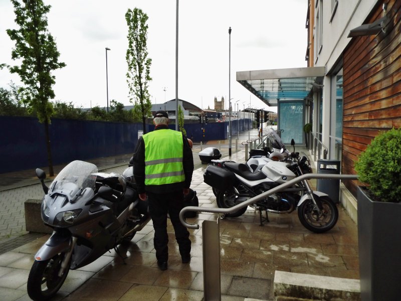 Vandaag hebben we een tocht vanuit Bristol naar Southhampton aan de zuid kust van Engeland. Het heeft vannacht nog geregend. We ruimen alles op en pakken alles in. Els komt even doorgeven dat we vandaag om 9:00 uur vertrekken. Ze gaan in het restaurant ontbijten. We hebben ons ontbijt op de kamer. Als we klaar zijn met inpakken gaan we eerst ontbijten. Croissants met kaas. Het smaakt goed. Dan gaan we de spullen naar beneden brengen en op de motor vastmaken.