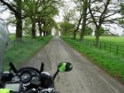 Op dit rustpunt waren oude huizen te zien. Zo reden we door verschillende dorpjes met oude huisjes met en zonder rietedaken. Het weer is grillig vandaag. Dan grijs met enkele drupppels regen en dan weer de zon.