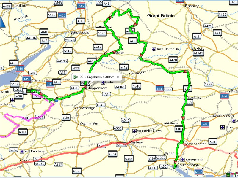 Iedereen heeft weer alles ingepakt en we vertrekken. Het is vandaag een tocht van +/- 320 kilometer. We rijden vandaag naar Southhampton. Het blijft goed opletten met aan de linkse kant rijden. We raken verschillende keren de anderen kwijt. Als we na een rustpauze van 20 minuten niemand zien, rijden we verder.