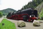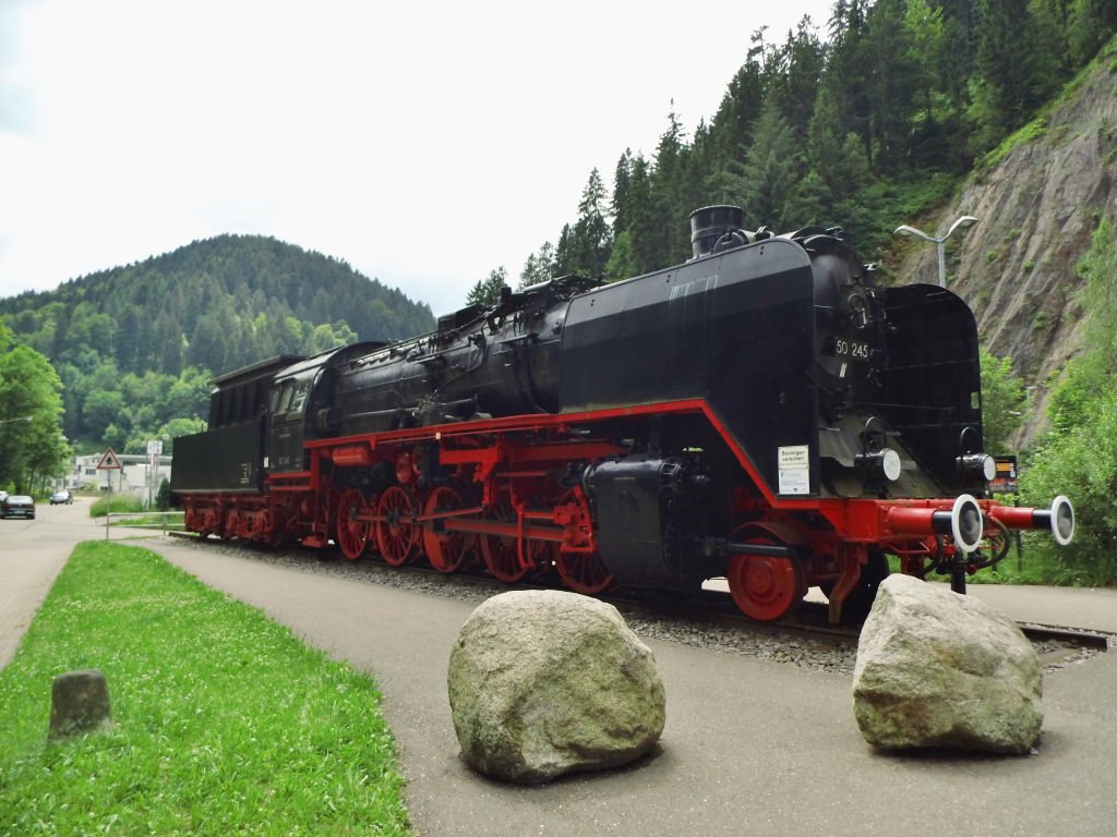 Als we beneden zijn lopen we naar de souvenir shop. Even een magneetjes kopen en koekoeksklokken bekijken. Dan nog de stoomtrein bekijken die de komende maanden hier gaat rijden. Als we hier wegrijden zien we de Lidl. Even deodorant kopen maar er blijft ons meer aan de vingers hangen: bananen, wijn en sinaasappelsap. Onderweg richting Freudenstadt besluiten we om Alpirsbacher bier te kopen. Dit drinken we iedere avond.