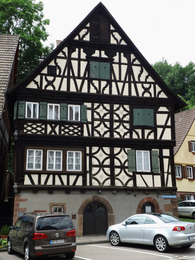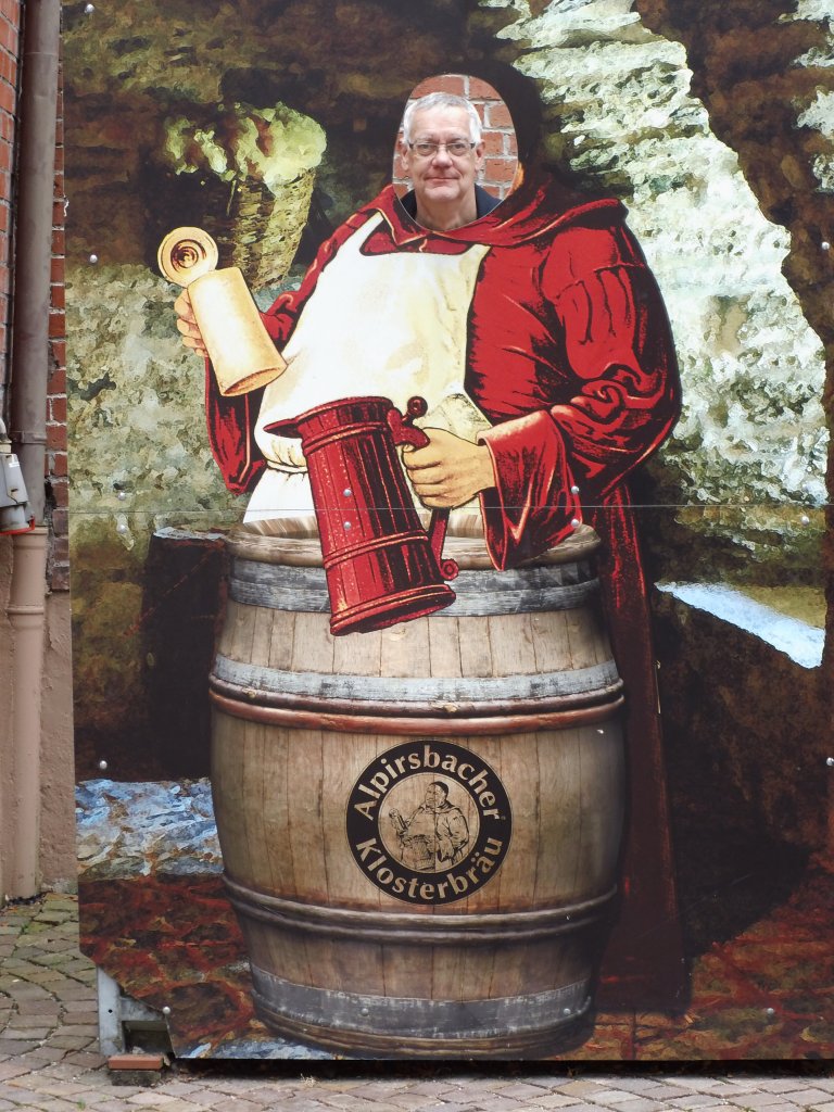 In het stadje Alpirsbach zien we een supermarkt en hier besluiten we om bier te kopen. Als we terug In de auto zijn en door de vooruit naar buiten kijken zien we aan de overkant van de weg de bierbrouwerij liggen. Even een foto van de buitenkant maken. Dan rijden we richting Freudenstadt. Maar enkele honderd meters ziet Toos een souvenir shop van de bierbrouwerij. Even omkeren en gaan kijken. Foto’s maken een een glas kopen.
