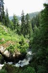 Dan beginnen we aan de klimtocht naar de waterval. Je kunt de gemakkelijke route lopen maar wij lopen de zwaardere route. Langzaam aan komen we steeds hoger. Op verschillende punten kun je foto’s maken en filmen. Pech want de filmcamera is al snel leeg. Maar we kunnen nog genoeg foto’s maken. Als we bovenaan zijn lopen we weer naar beneden. We zien een Vlaamse Gaai. Mels probeert een foto te maken maar de vogel vliegt steeds weg.