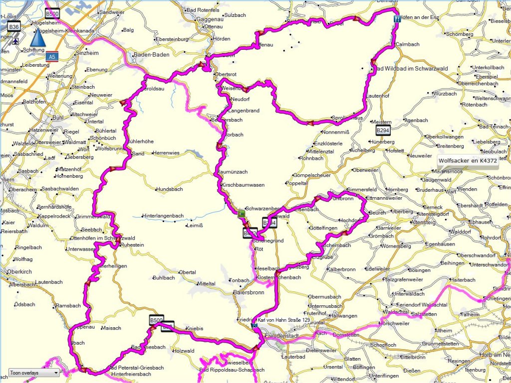 Verslag Freudenstadt – Löcherberg – Baden Baden – Gemsbach – Höfen an der Enz – Sprollenmühle – Weisenbach – Seewald – Simmersfeld – Freudenstadt (225 Km)