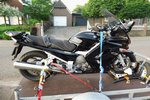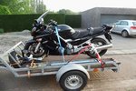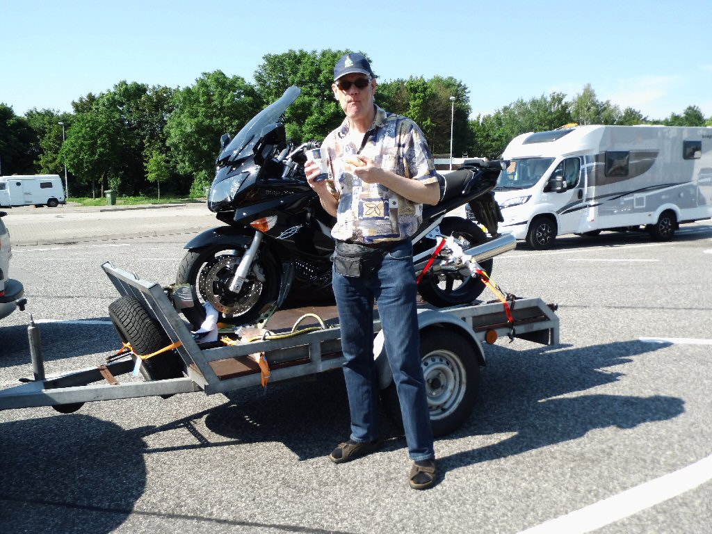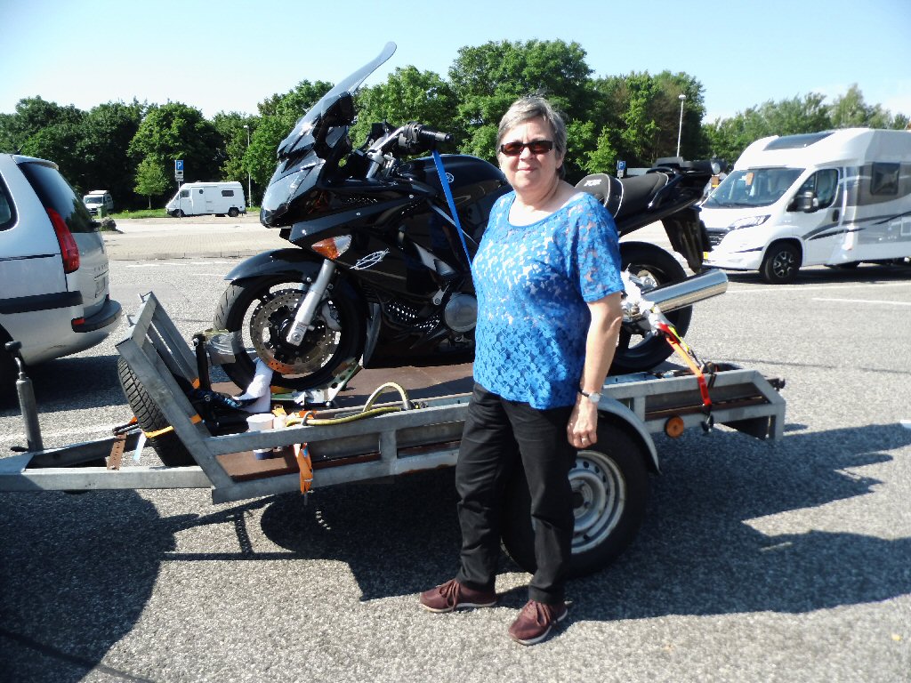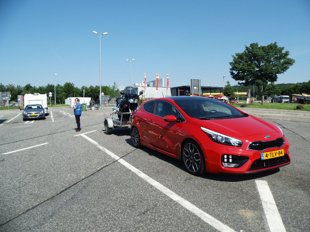 Om ongeveer 5:50 uur was Mels op. Onrustig geslapen. Aakleden, ontbijten. En de laatste restjes pakken. Gisteren hebben we de motor op de kar gezet en al alles naar de auto gebracht. Wat nemen we veel mee. Maar dat komt omdat we naar een camping gaan de eerste 10 dagen. Nadat we de motortrailer aan de de auto hebben gekoppeld en de laatste restjes in de auto hebben gedaan starten we om te vertrekken richting Duitsland.