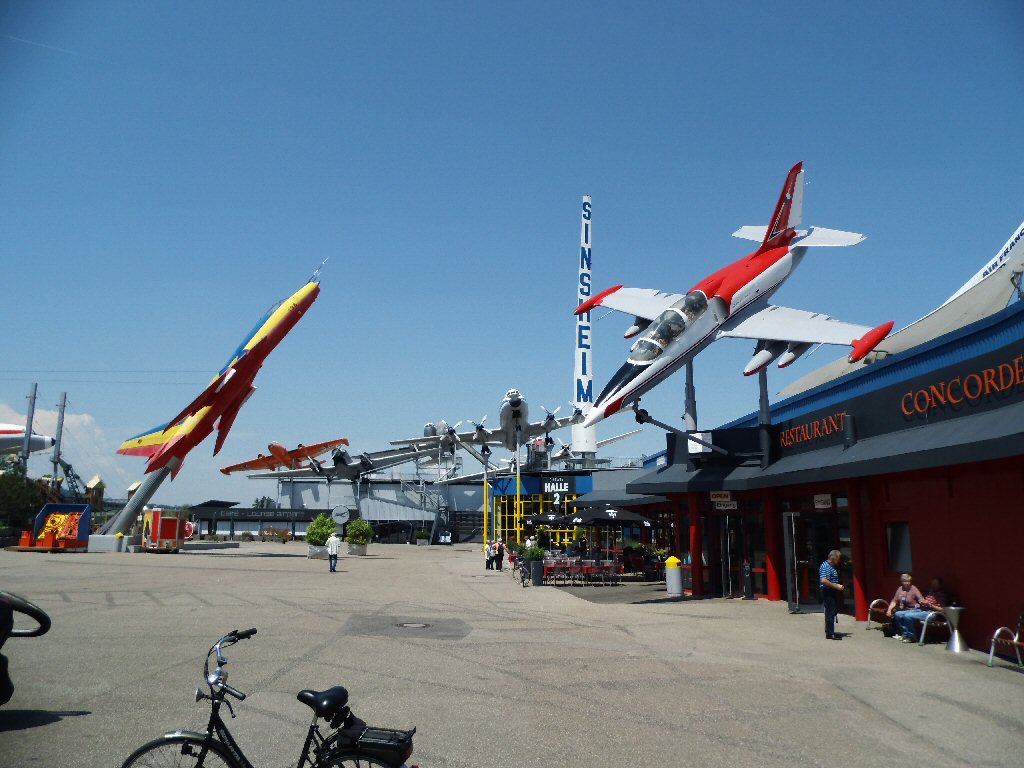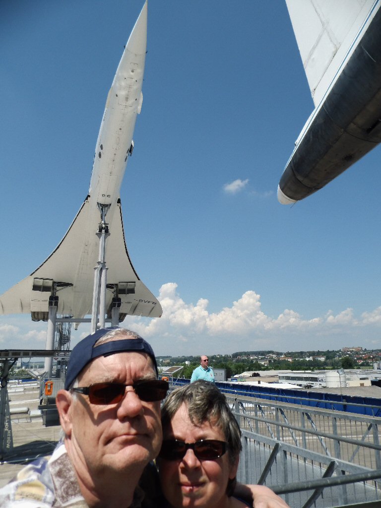 Volgende baustelle. Hier kunnen we goed doorrijden dan zien we de borden van het auto en techniekmuseum. In Sinsheim. Van ver zien we al de concorde staan. Hoe dichterbij we komen hoe meer Mels begint te stralen. Hier verheugde hij zich op. We komen er gemakkelijk en de auto met trailer kunnen we gemakkelijk parkeren. Dan naar de entree en we betalen € 15,- elk voor de entree. Naar hal twee en als we binnen zijn dan kunnen we de Concorde en Tupolev ingaan. Wel moeten we er enkele trappen voor omhoog. Beide vliegtuigen staan heel stijl omhoog. Het lijkt alsof je een berg omhoog loopt. Nadat de vliegtuigen hebben gezien lopen we nog door hal 2 en daarna nog door het hoofdgebouw. We zien vanalles. Vliegtuigen, auto’s, naaimachines enz.