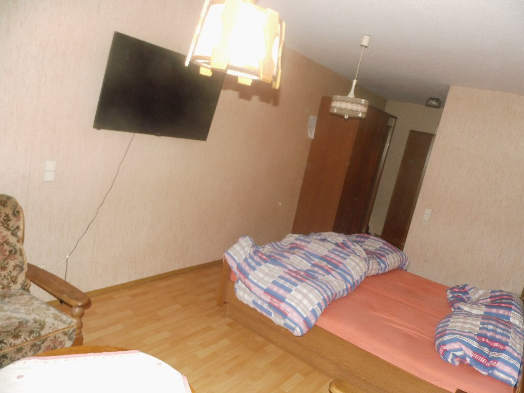 Als we eindelijk op onze bestemming komen regent het nog steeds. Het blijkt dat er kort van tevoren een flinke hoosbui is gevallen. Water was de winkel binnengelopen en er staan overl flinke plassen water. De kar met motor wordt langs het huisje gezet. Auto erbij. Het is een mooi groot huisje. Veel plaats. Twee slaapkamers. Badkamer en keuken/ kamer. Ziet er goed uit. We besluiten om toch maar alles even uit de auto te halen daar het anders te vochtig wordt.