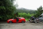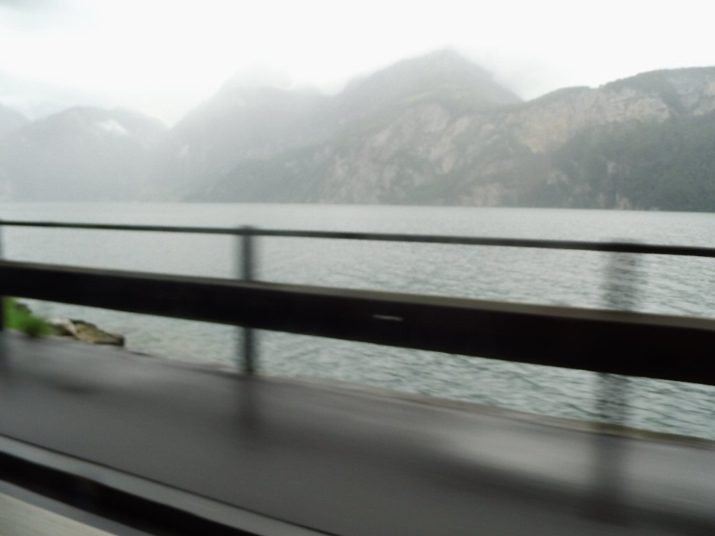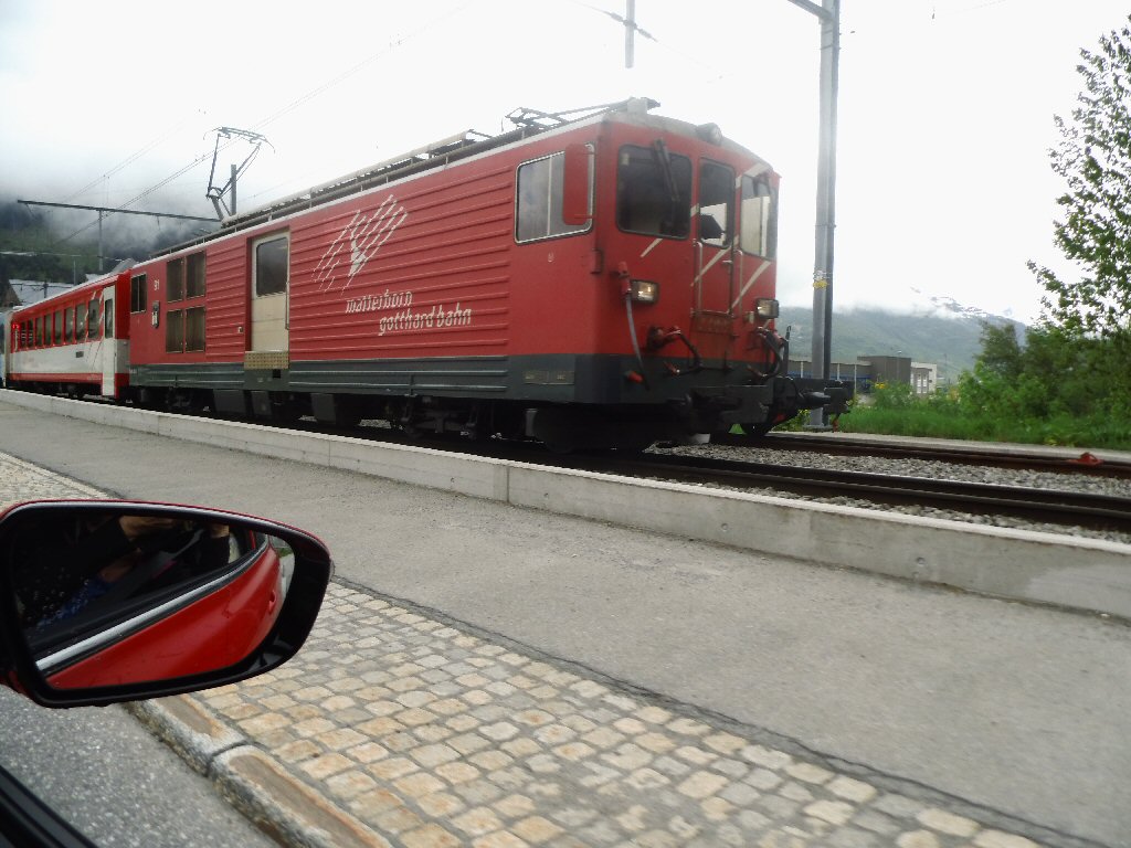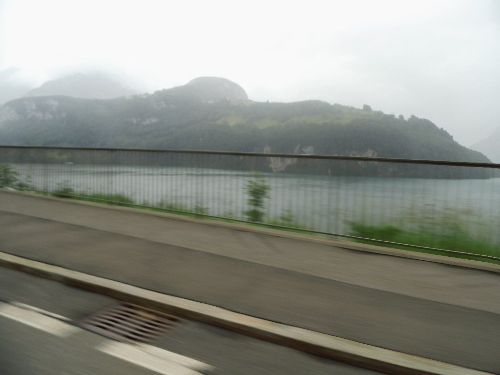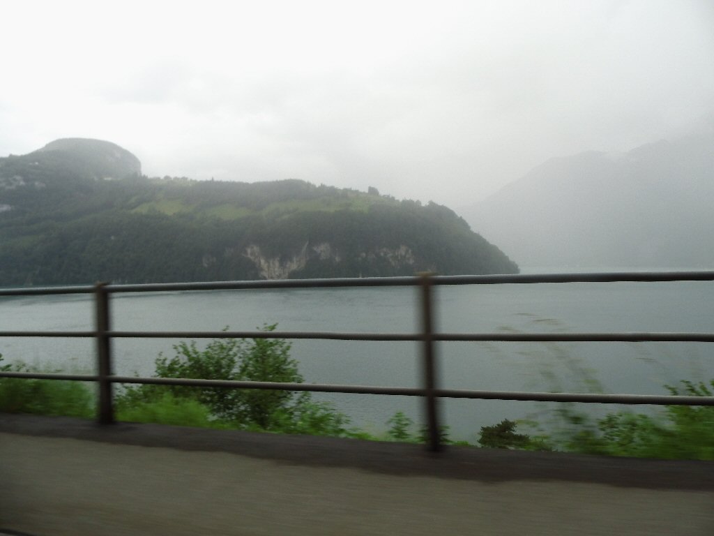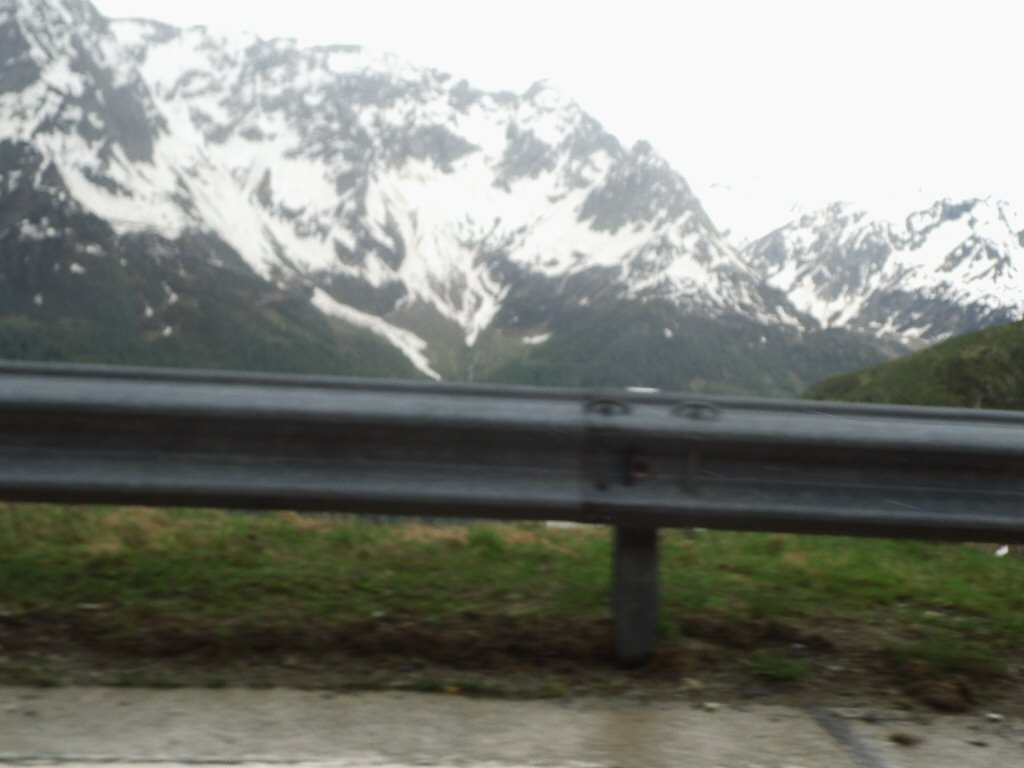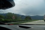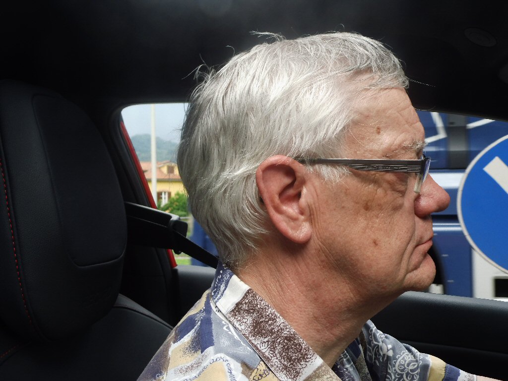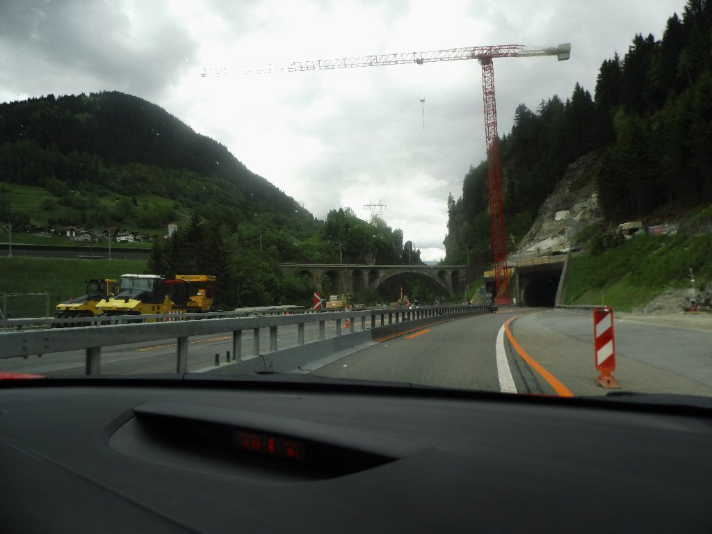 Het weer wordt beter. Het is nu droog en het zonnetje komt af en toe door de wolken heen. Het is buiten 25 graden. Dit is beter. Het dak gaat open. Gisteren ben ik al bruin geworden omdat we met open dak reden. Heerlijk. Maar te vroeg gejuicht. De verdere rit hebben we veel regen met heftige buien. We tanken in Italië en we worden geholpen door een vriendelijke man. De prijs was € 1,44 per liter. Later zagen we overal dat de benzine overal duurder was. Gewoon geluk gehad