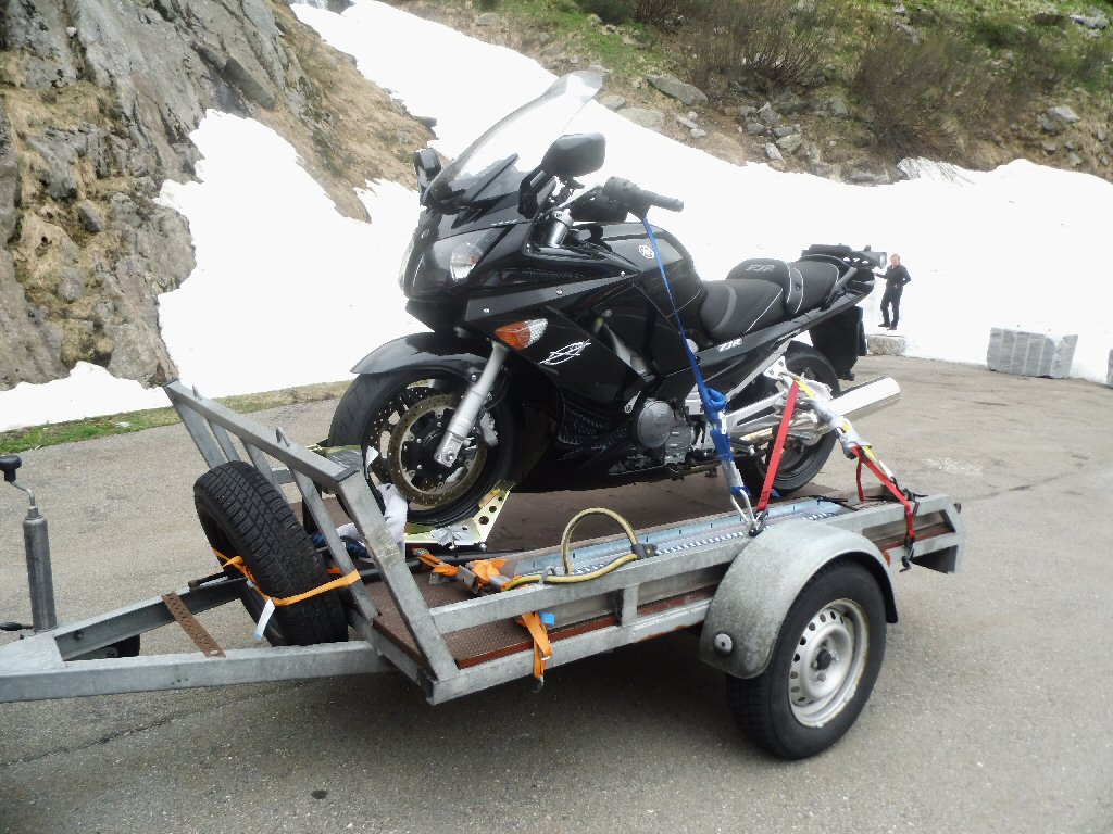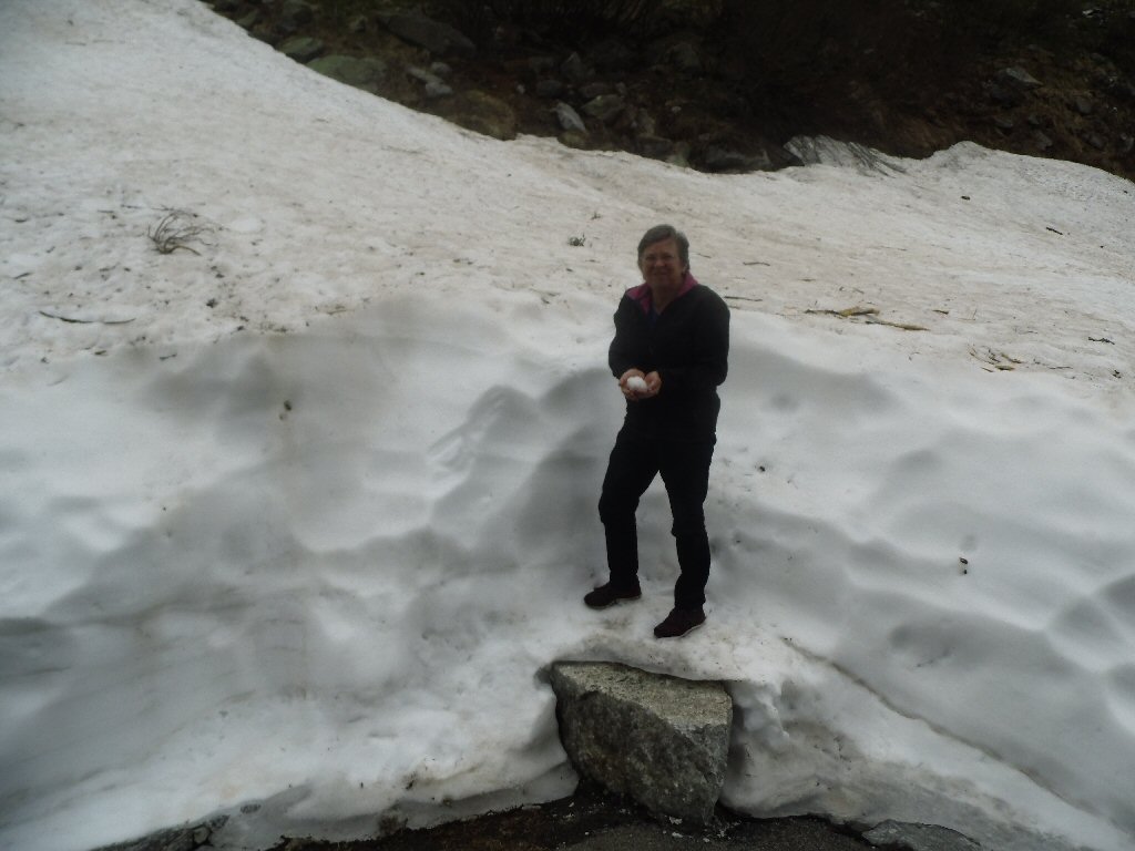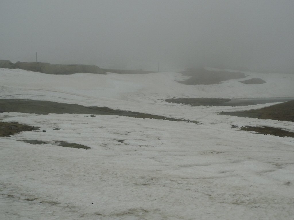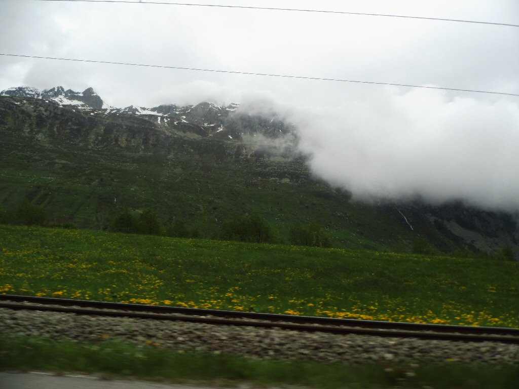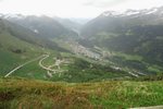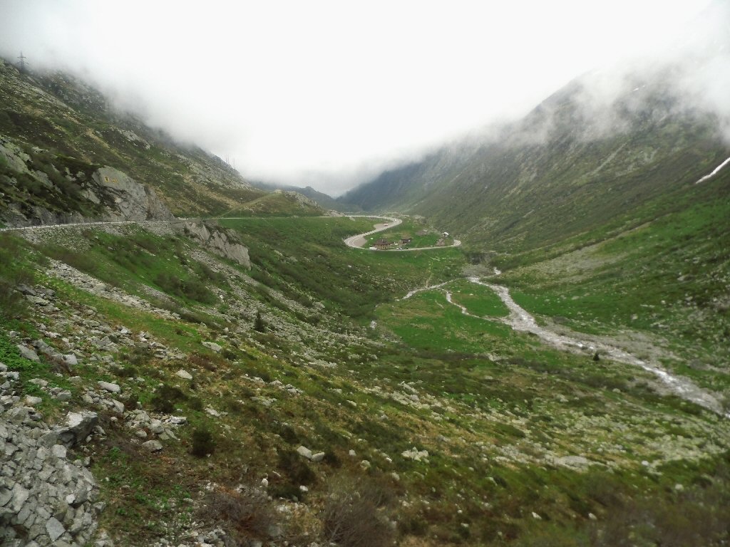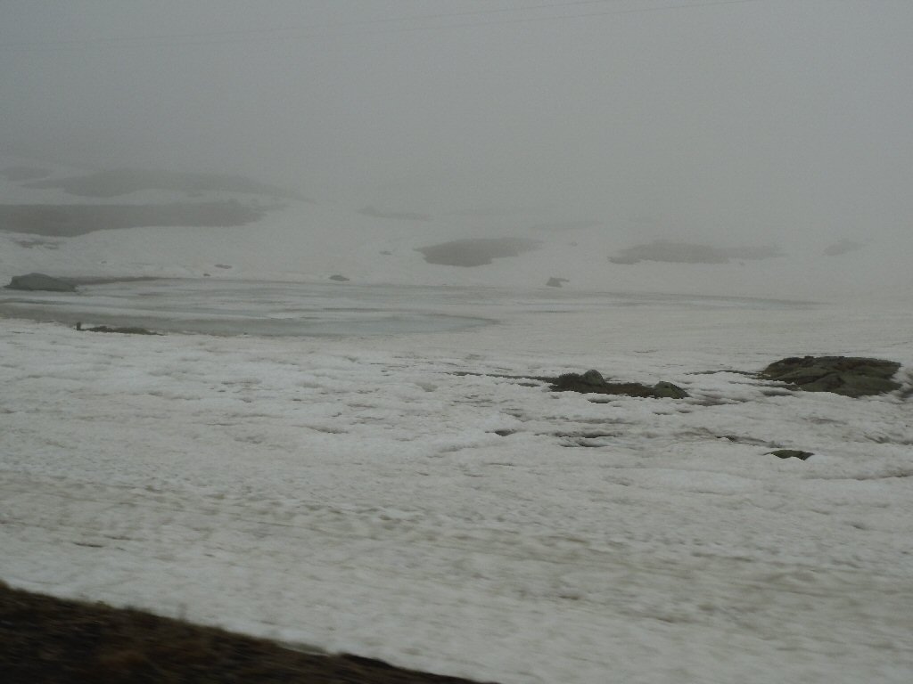 De eerste stop regent het nog in Zwitserland nog een eindje van de Gotthardtunnel/ pass. We kijken even. En besluiten om de pas te nemen. Even genieten ondanks de regen. We gaan over de Gothardpass. Het kost ons een half uur omrijden. Maar als we het uitzicht zien en de sneeuw zien is het ’t waard. Boven op de St. Gotthard is het 10 graden en we staan op een hoogte van 2106 m. Stuk verder stappen we uit om nog foto’s van het dal te maken. Het waait zo hard dat Mels zijn petje wegvliegt. Het petje wat hij van Frank heeft gekregen. Maar gelukkig het ligt nog zo dat Toos door de vangrail kruipt en het petje kan pakken. Verder de berg omlaag.