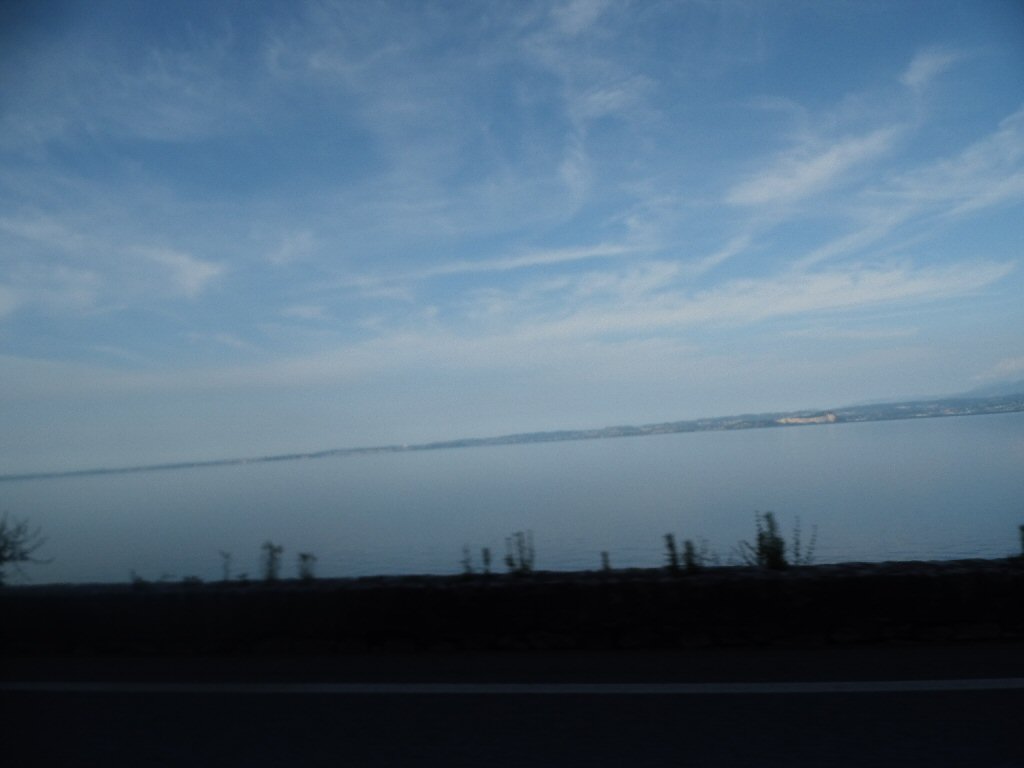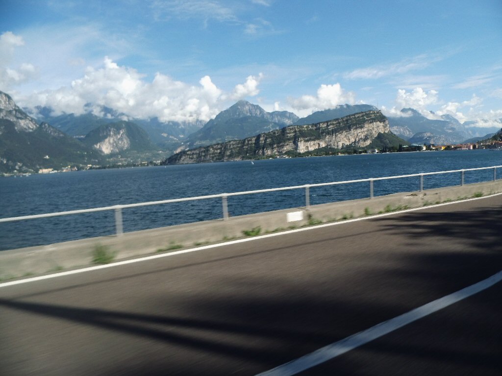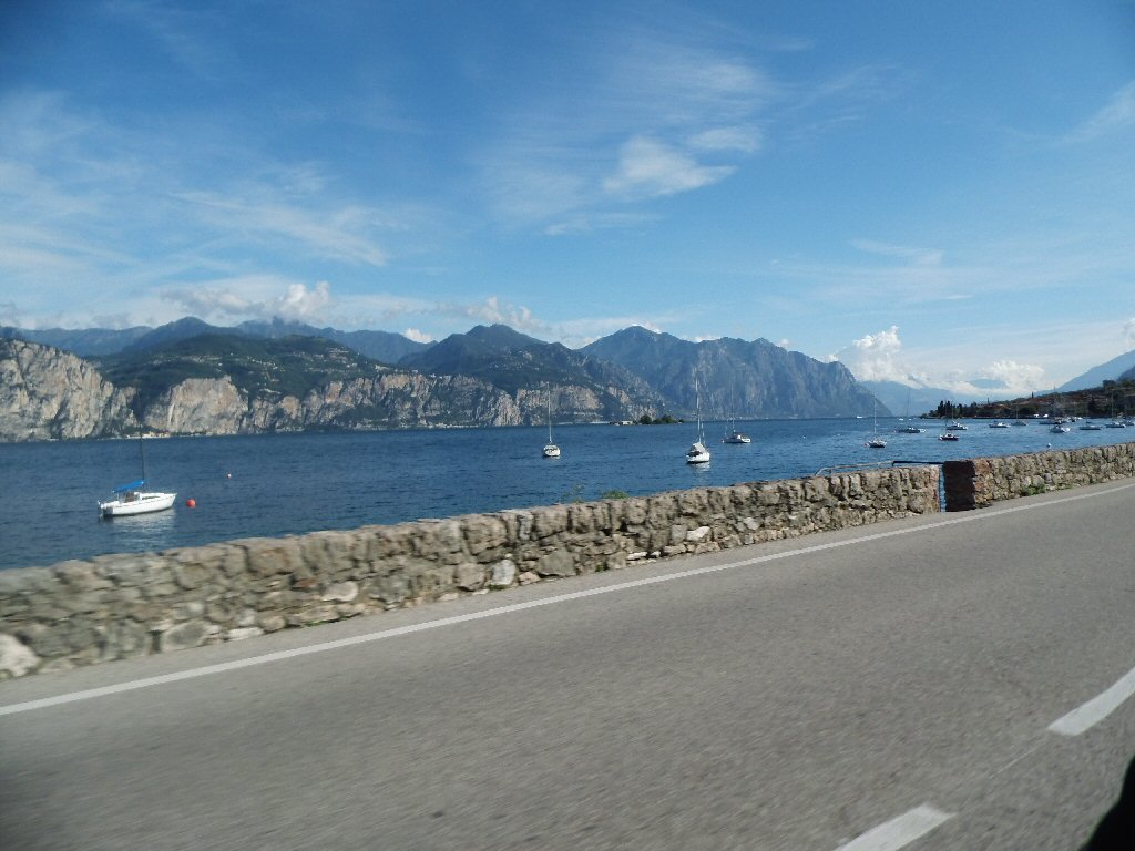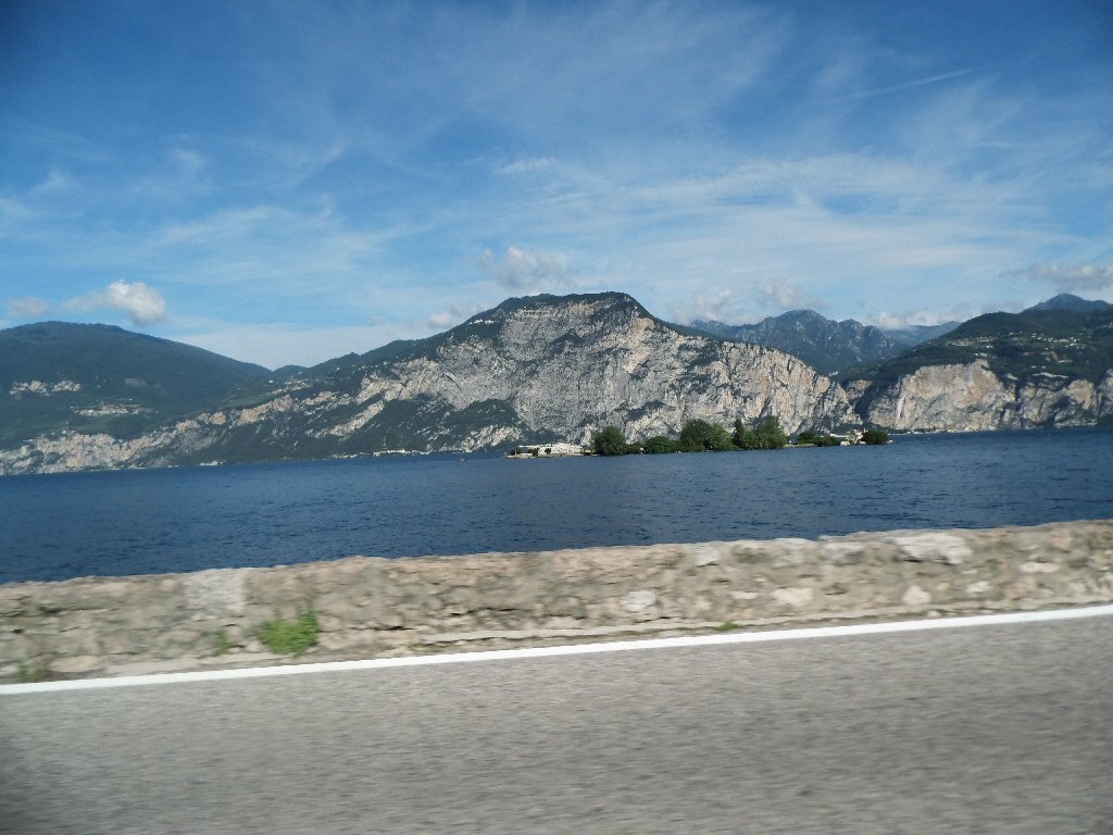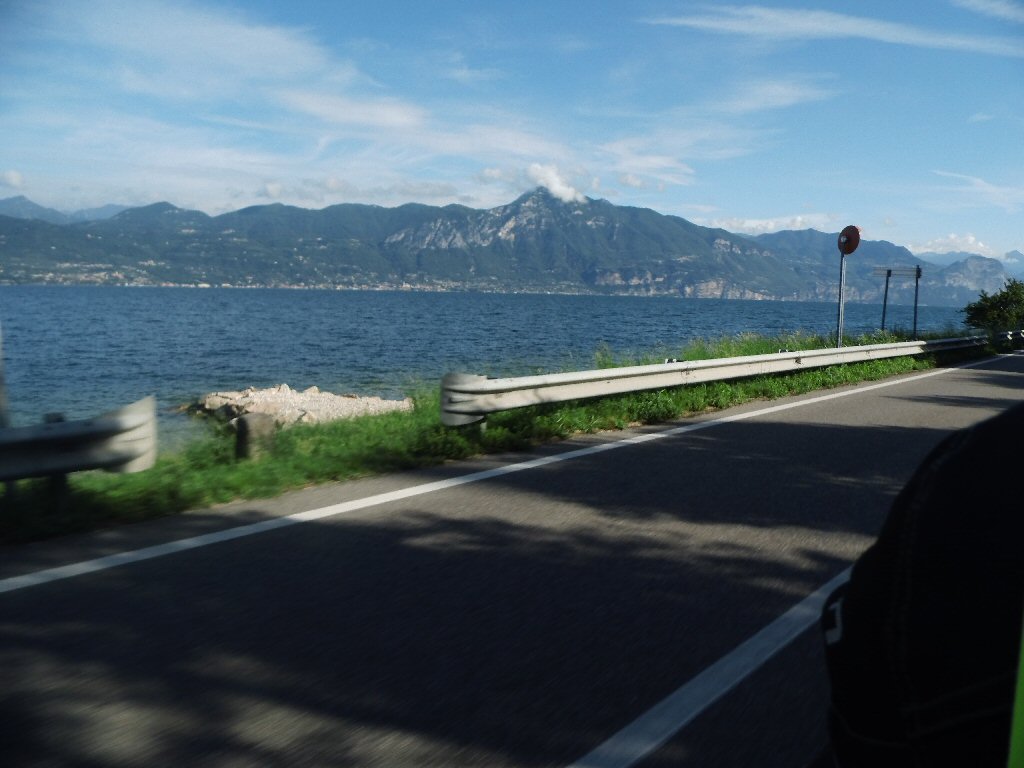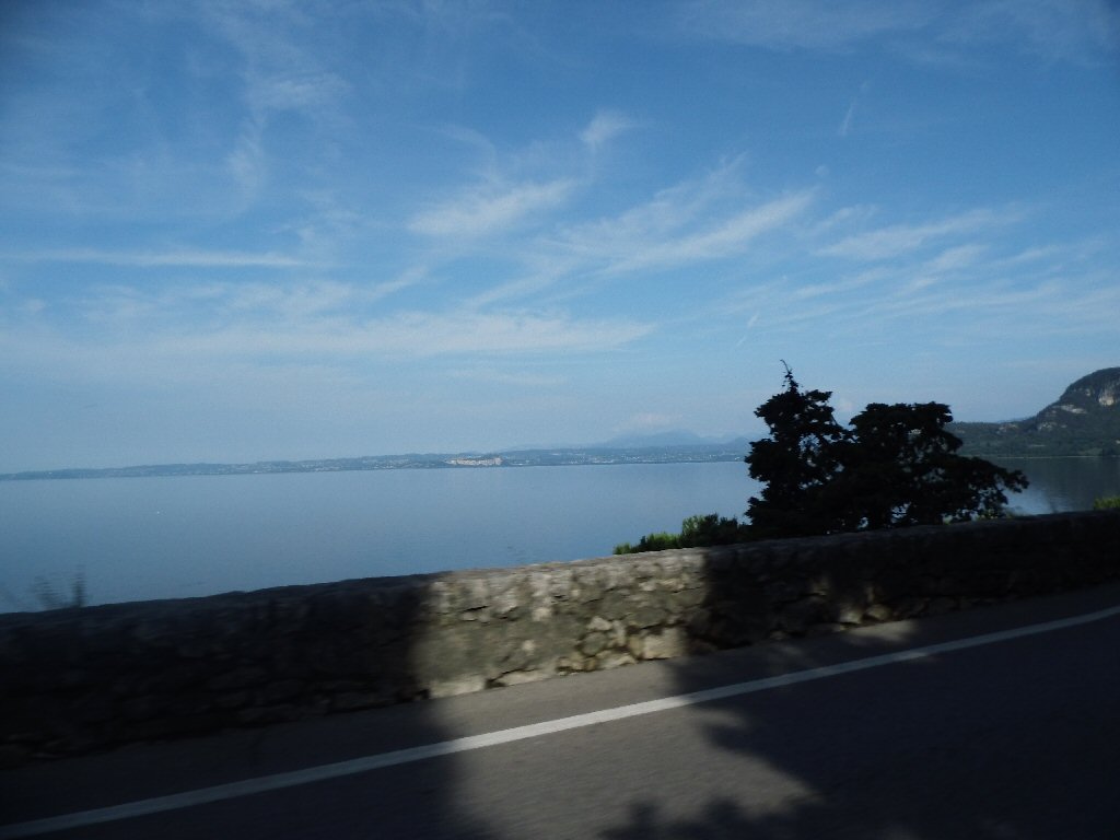 Om 8:10 uur vertrekken we. We rijden langs het Gardameer. Mooi om te zien.