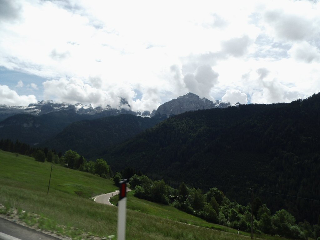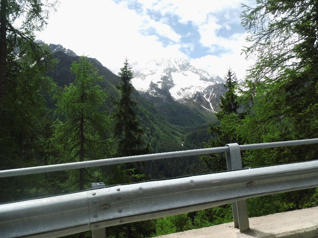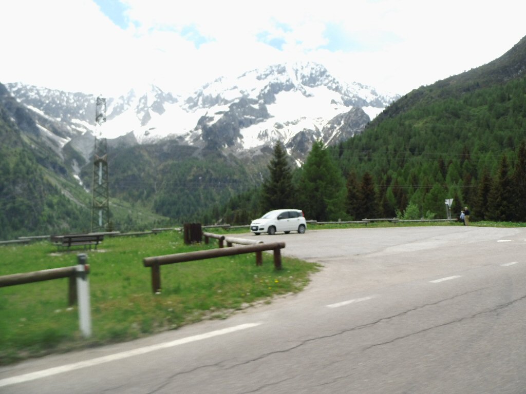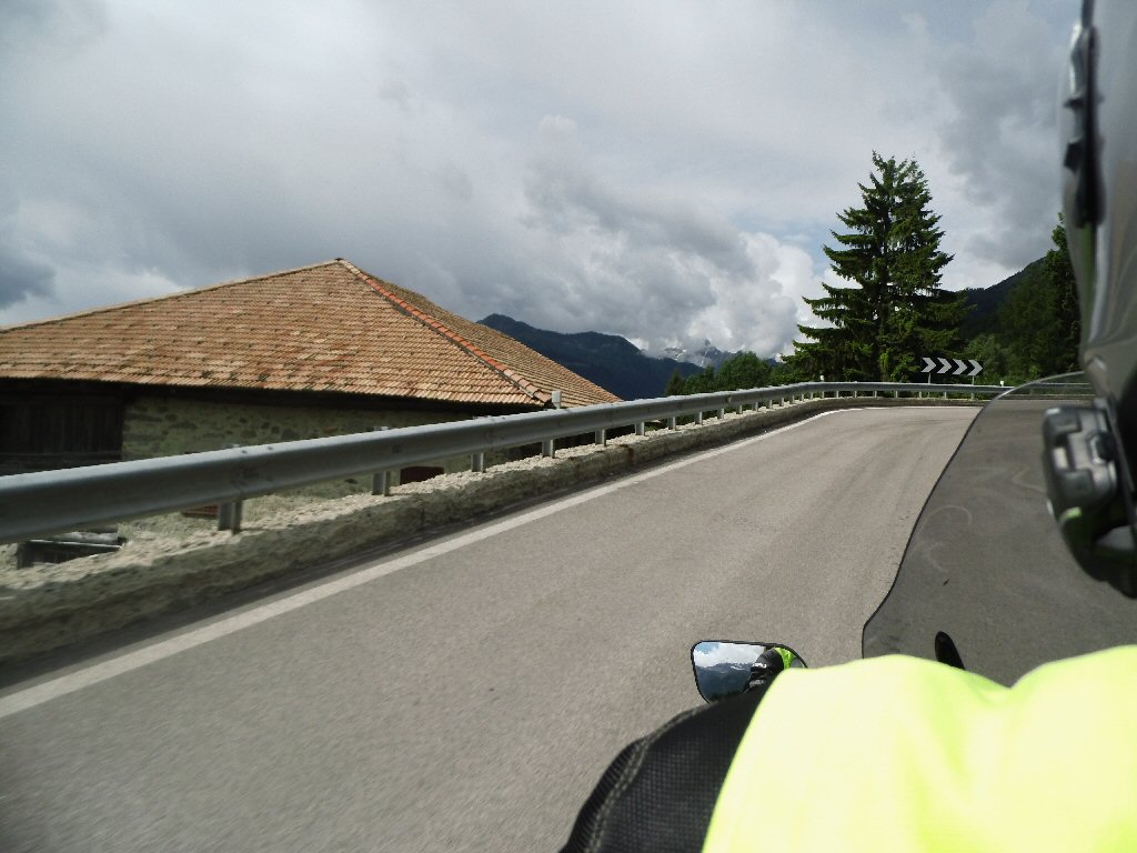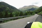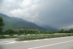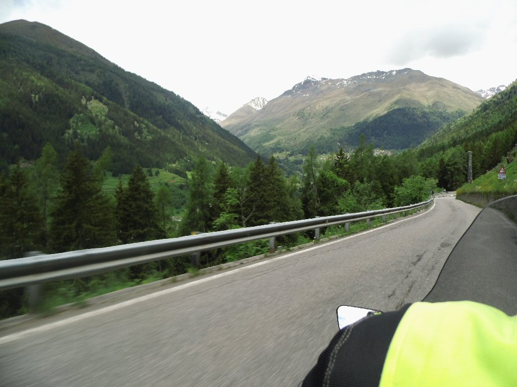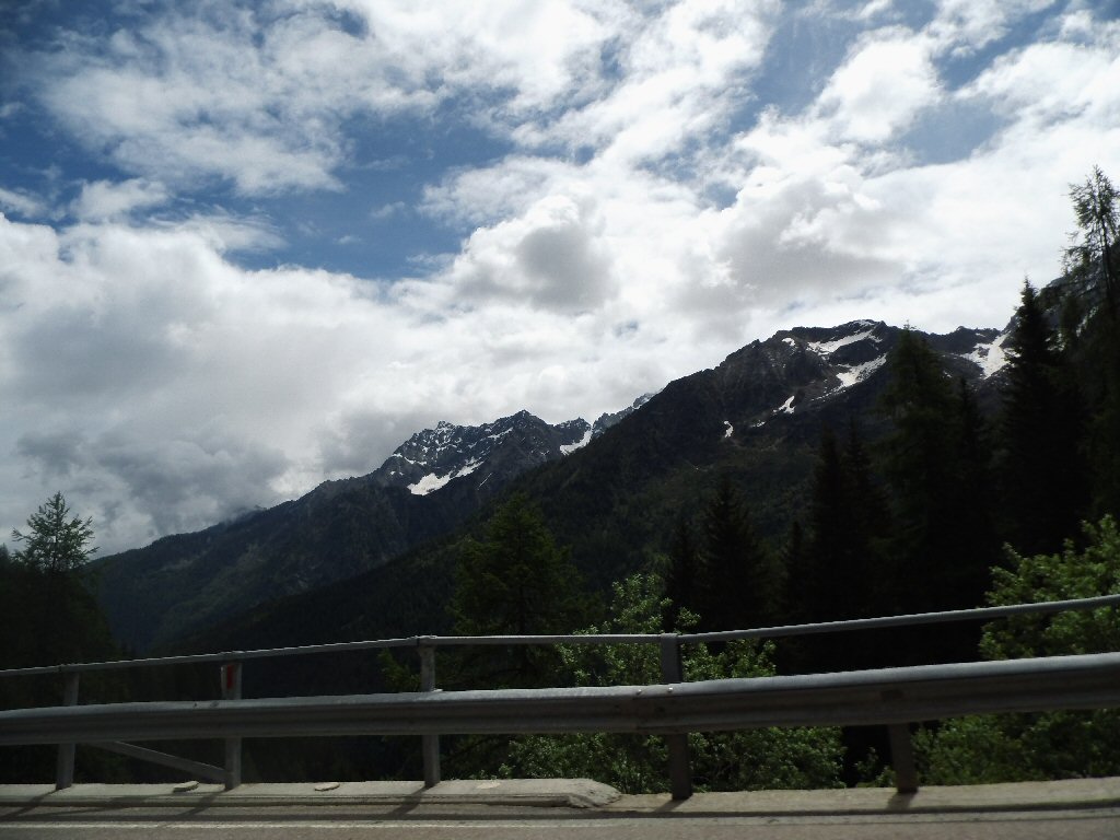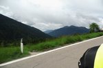 Dan gaan we richting bergen. Die worden steeds hoger. Dan zien we bergen met sneeuw. Her is genieten. We gaan weer passen rijden. Om ongeveer 10:30 uur hebben we de eerste stop. Mooi uitzicht naar bergen met sneeuw. We komen veel motorrijders tegen. Als we verder rijden wordt de lucht donkerder. En ja hoor, enkele kilometers verder. Regen en hagel. We rijden door en even later niets meer. De weg is er zelfs droog.