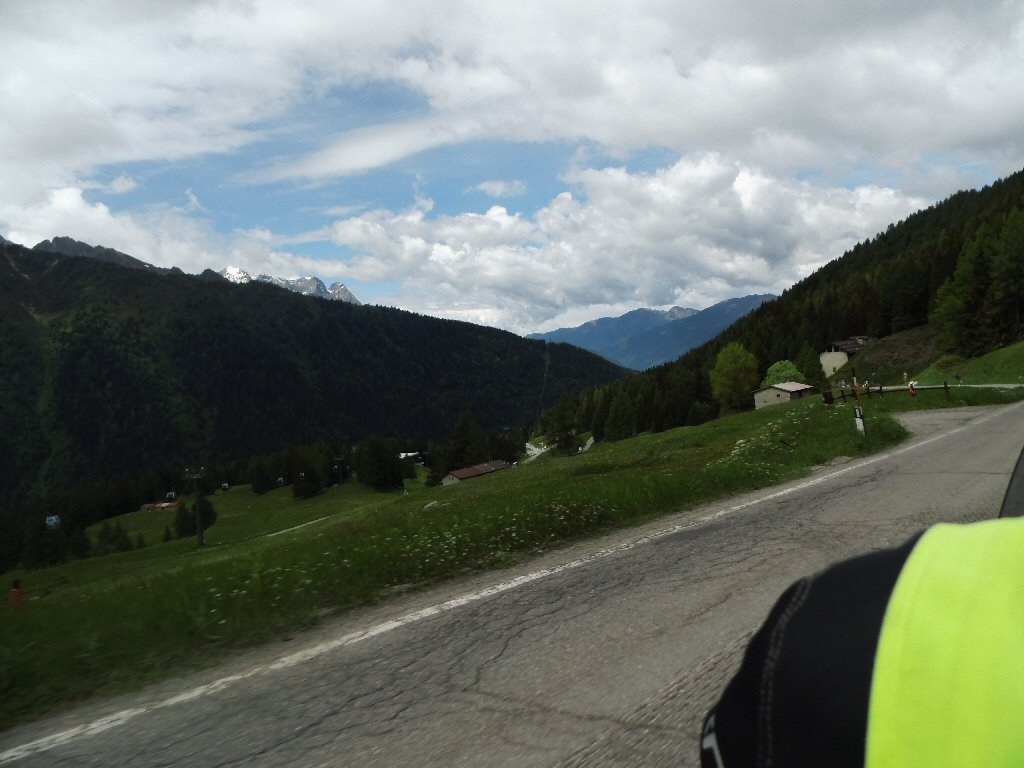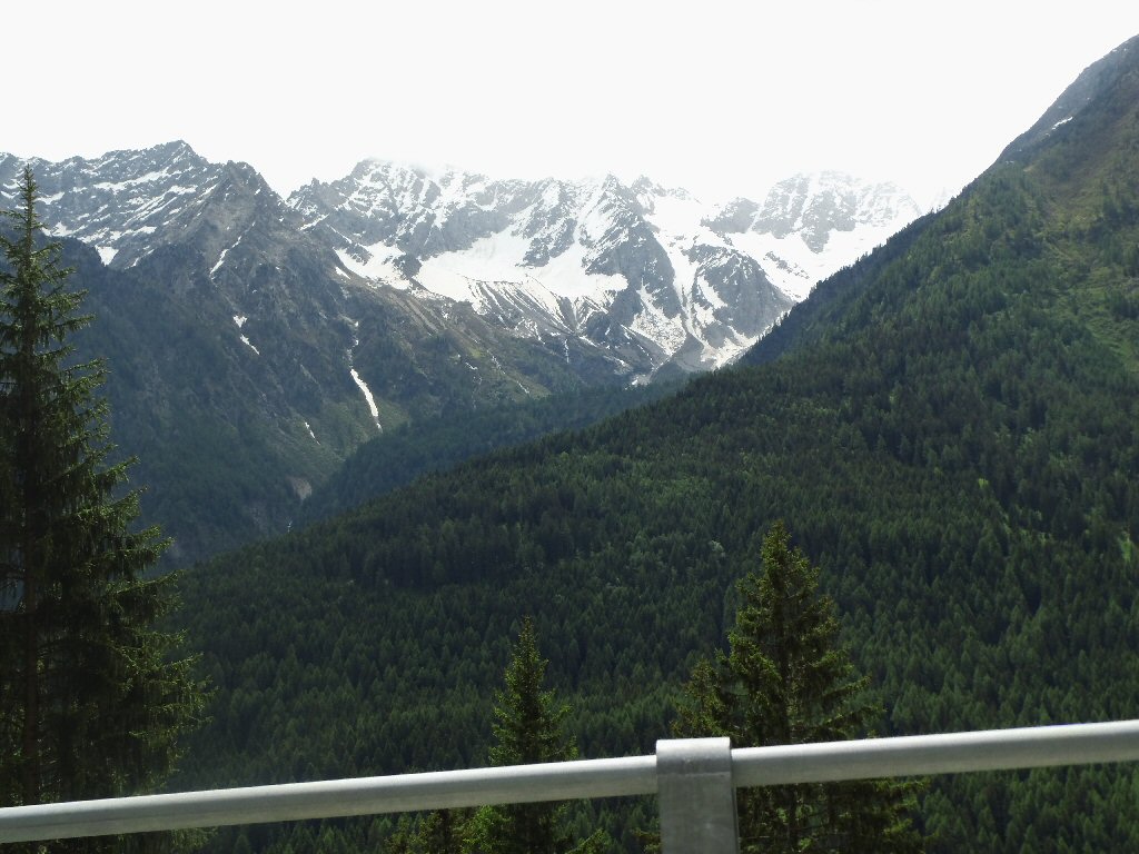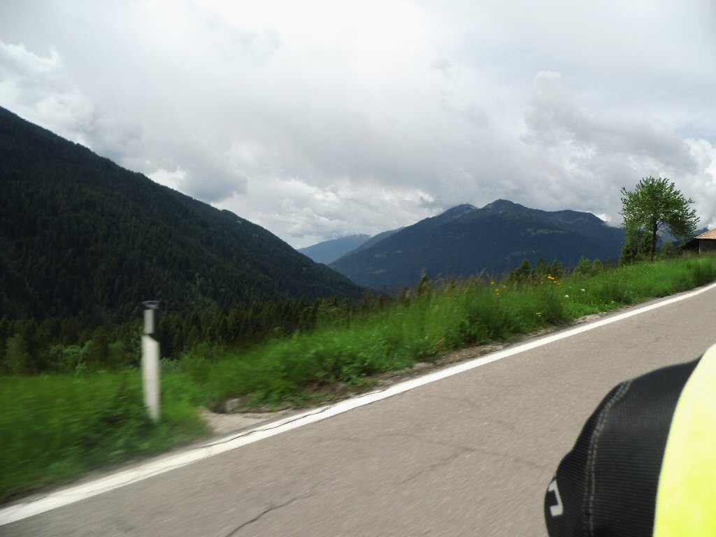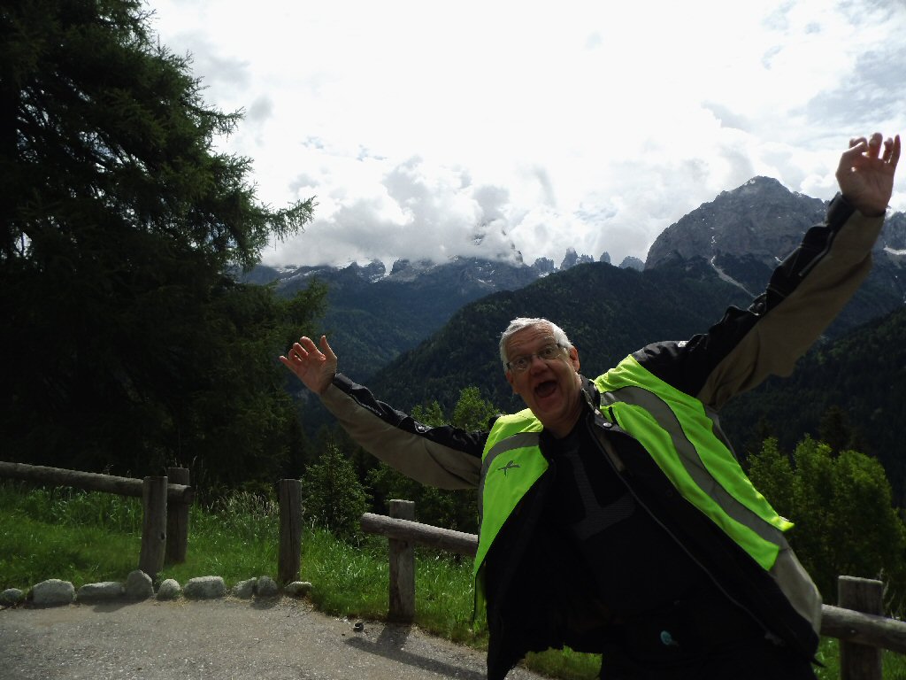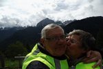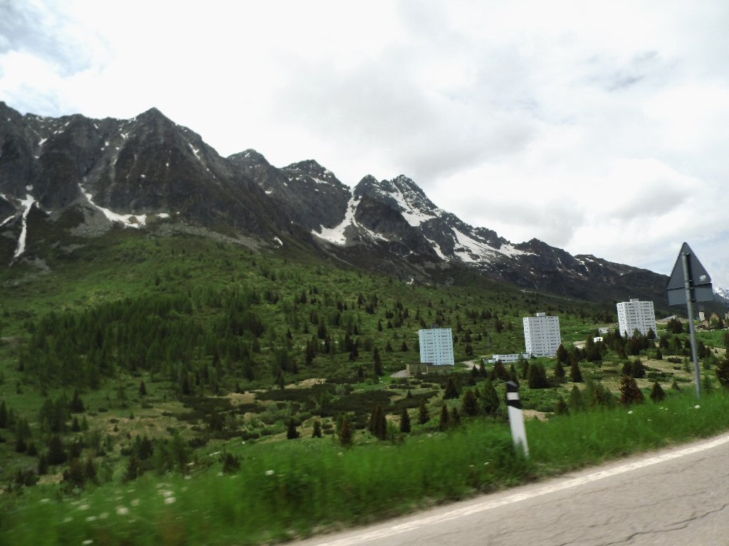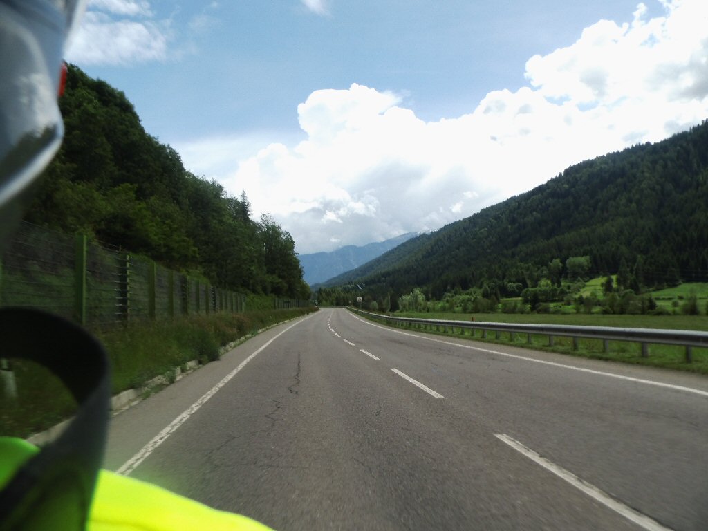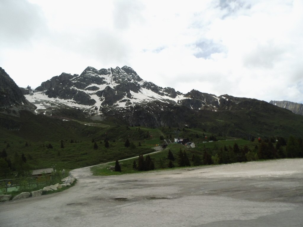 Dan gaan we richting bergen. Die worden steeds hoger. Dan zien we bergen met sneeuw. Her is genieten. We gaan weer passen rijden. Om ongeveer 10:30 uur hebben we de eerste stop. Mooi uitzicht naar bergen met sneeuw. We komen veel motorrijders tegen. Als we verder rijden wordt de lucht donkerder. En ja hoor, enkele kilometers verder. Regen en hagel. We rijden door en even later niets meer. De weg is er zelfs droog.