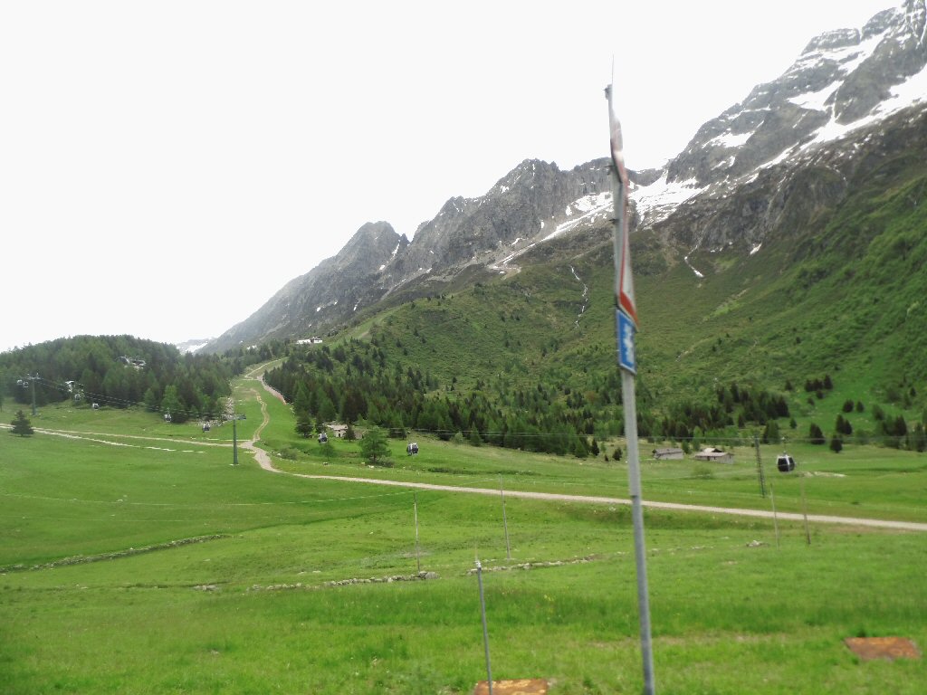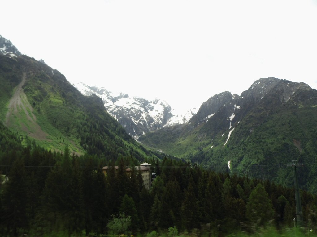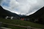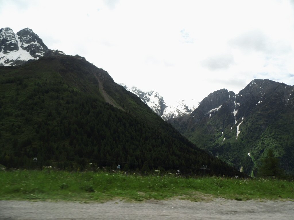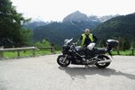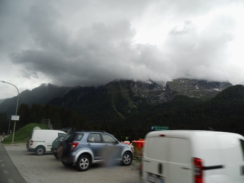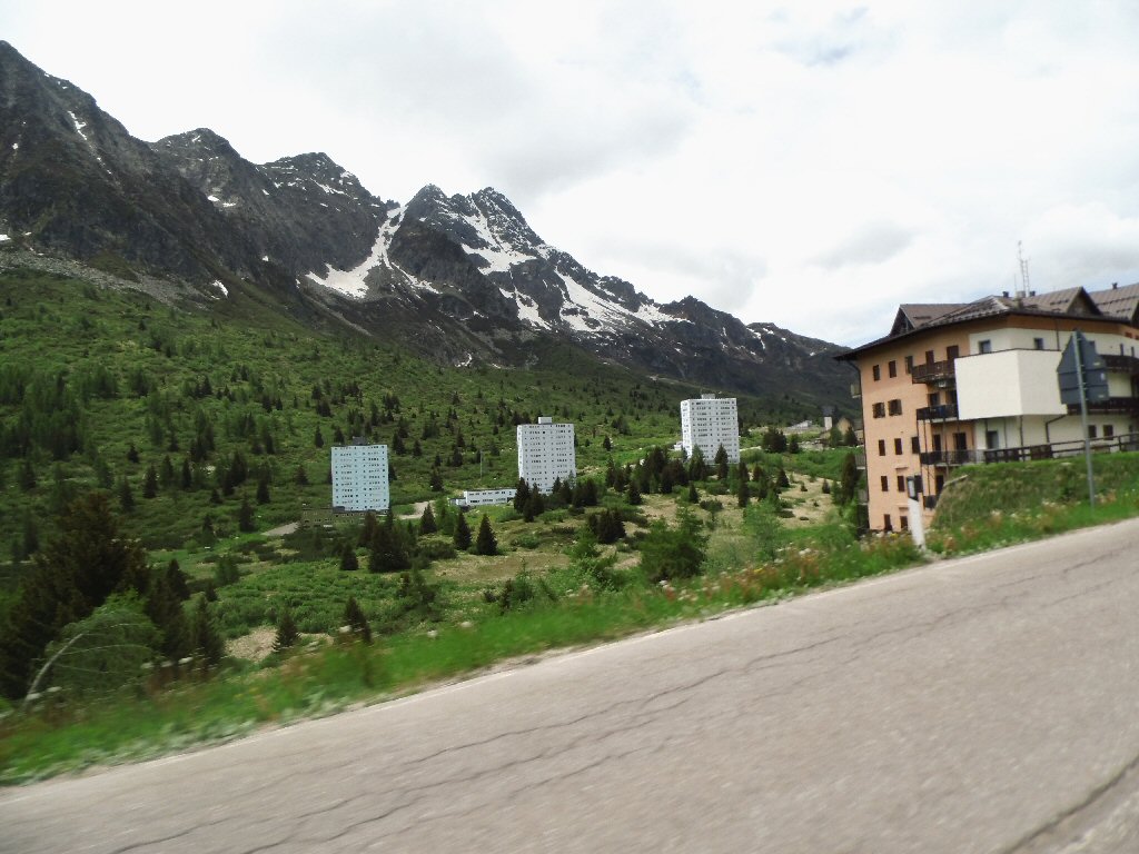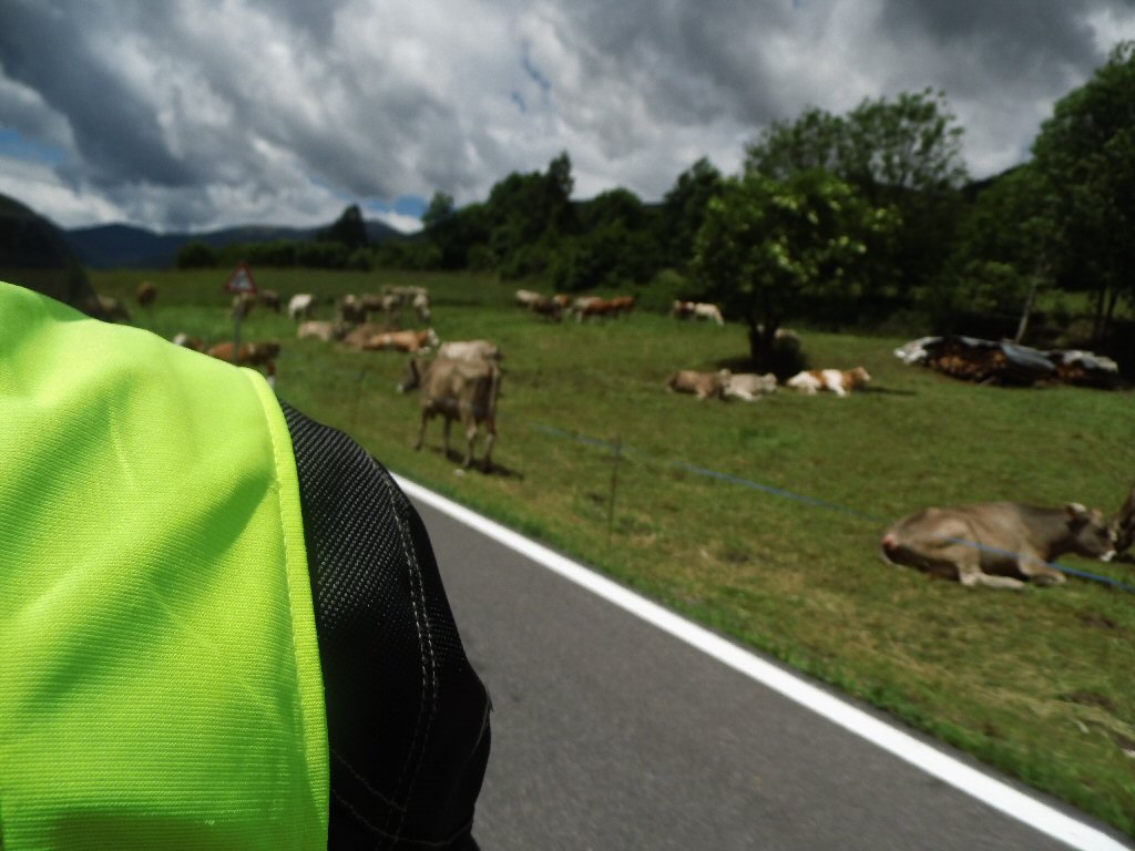 Dan gaan we richting bergen. Die worden steeds hoger. Dan zien we bergen met sneeuw. Her is genieten. We gaan weer passen rijden. Om ongeveer 10:30 uur hebben we de eerste stop. Mooi uitzicht naar bergen met sneeuw. We komen veel motorrijders tegen. Als we verder rijden wordt de lucht donkerder. En ja hoor, enkele kilometers verder. Regen en hagel. We rijden door en even later niets meer. De weg is er zelfs droog.