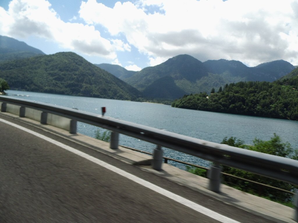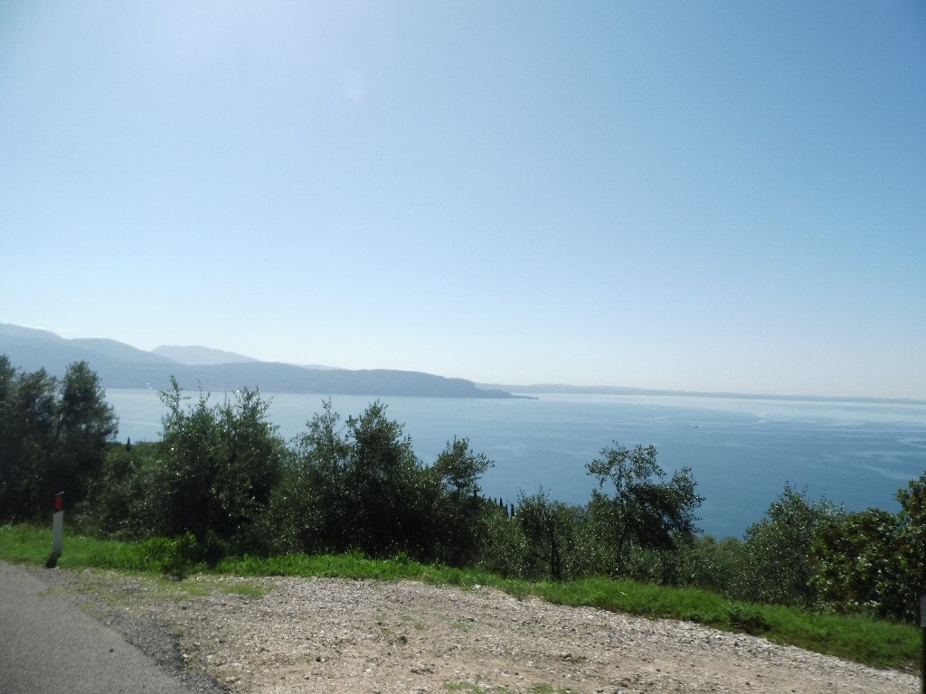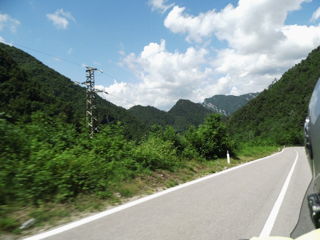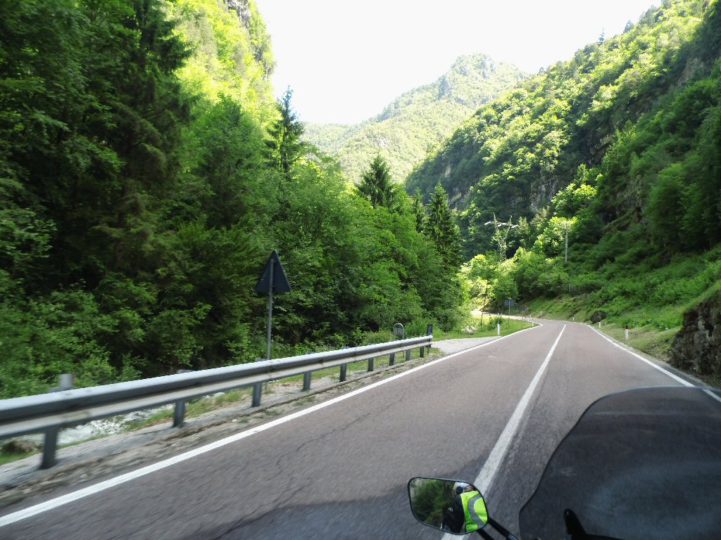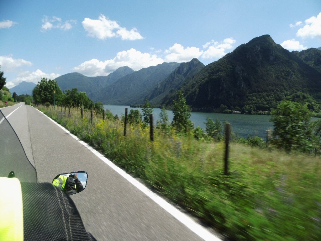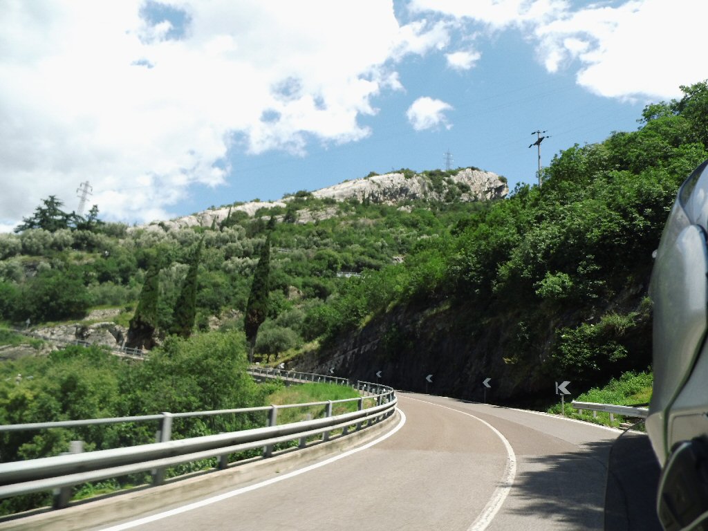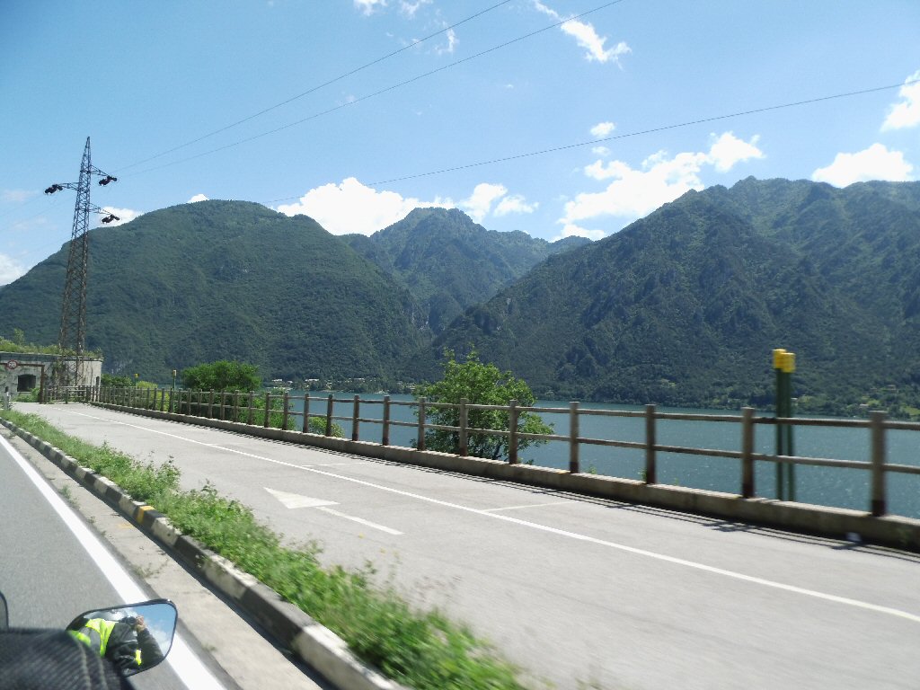 Na enkele uren stoppen we bij een dam. Mels verteld dat hij hier ook met Ron is geweest in 2004. Als we deze pas hebben gehad gaan we door naar de volgende. Het is ongelooflijk dat men zo dicht bij het Garda meer deze bergen zijn. Ze zijn niet zo hoog als de Dolomieten maar zeker de moeite waard om te rijden. Je rijd hier veel door de bossen. We komen deze dag hellingen tegen van 20 % stijging / daling. Door dorpjes over klinkers omlaag over smalle bos weggetjes. Door smalle weggetjes zigzaggend omhoog. Maar de uitzichten maken het wel goed. Zo rijden we vandaag dichtbij het Garda meer en nog bij andere meren. Temperatuur is op plaatsen 27 graden. Behoorlijk warm als men stil staat met de motor. Maar we zijn toch blij dat we vandaag nog een rit hebben gemaakt.