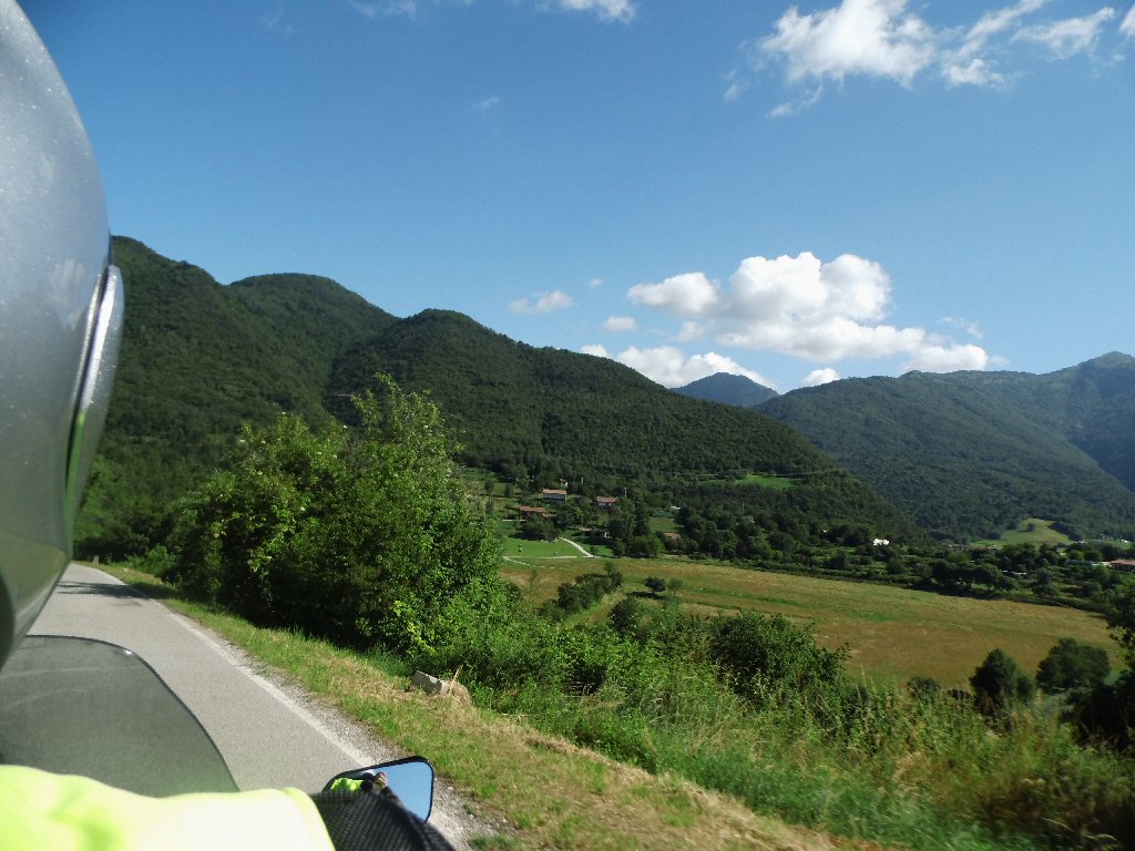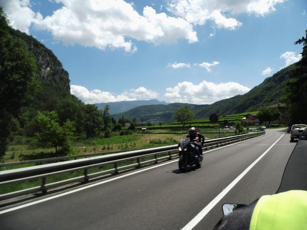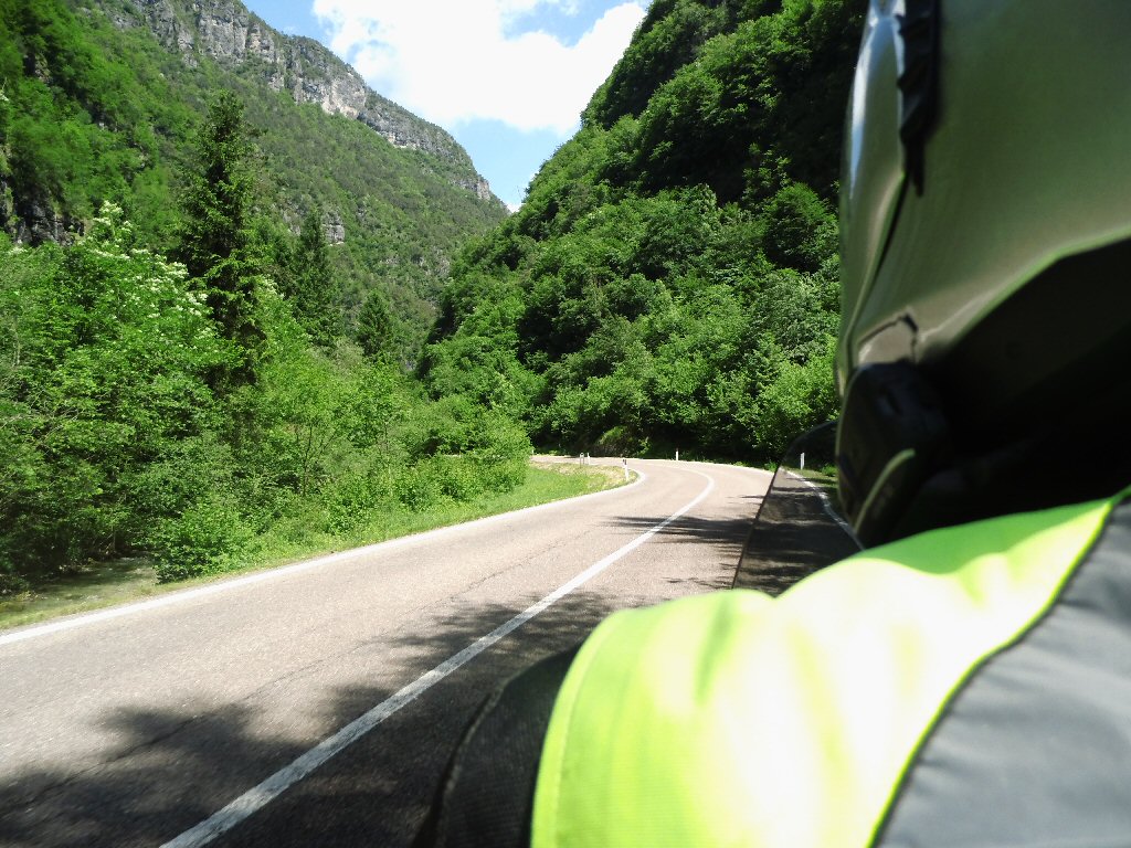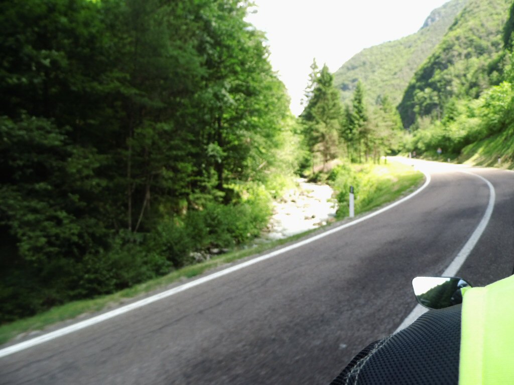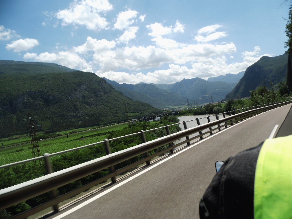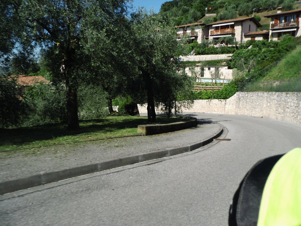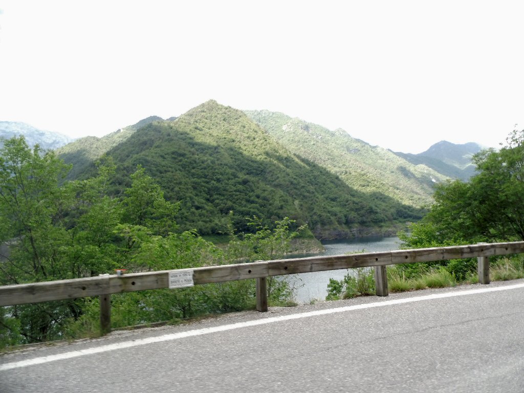 Na enkele uren stoppen we bij een dam. Mels verteld dat hij hier ook met Ron is geweest in 2004. Als we deze pas hebben gehad gaan we door naar de volgende. Het is ongelooflijk dat men zo dicht bij het Garda meer deze bergen zijn. Ze zijn niet zo hoog als de Dolomieten maar zeker de moeite waard om te rijden. Je rijd hier veel door de bossen. We komen deze dag hellingen tegen van 20 % stijging / daling. Door dorpjes over klinkers omlaag over smalle bos weggetjes. Door smalle weggetjes zigzaggend omhoog. Maar de uitzichten maken het wel goed. Zo rijden we vandaag dichtbij het Garda meer en nog bij andere meren. Temperatuur is op plaatsen 27 graden. Behoorlijk warm als men stil staat met de motor. Maar we zijn toch blij dat we vandaag nog een rit hebben gemaakt.