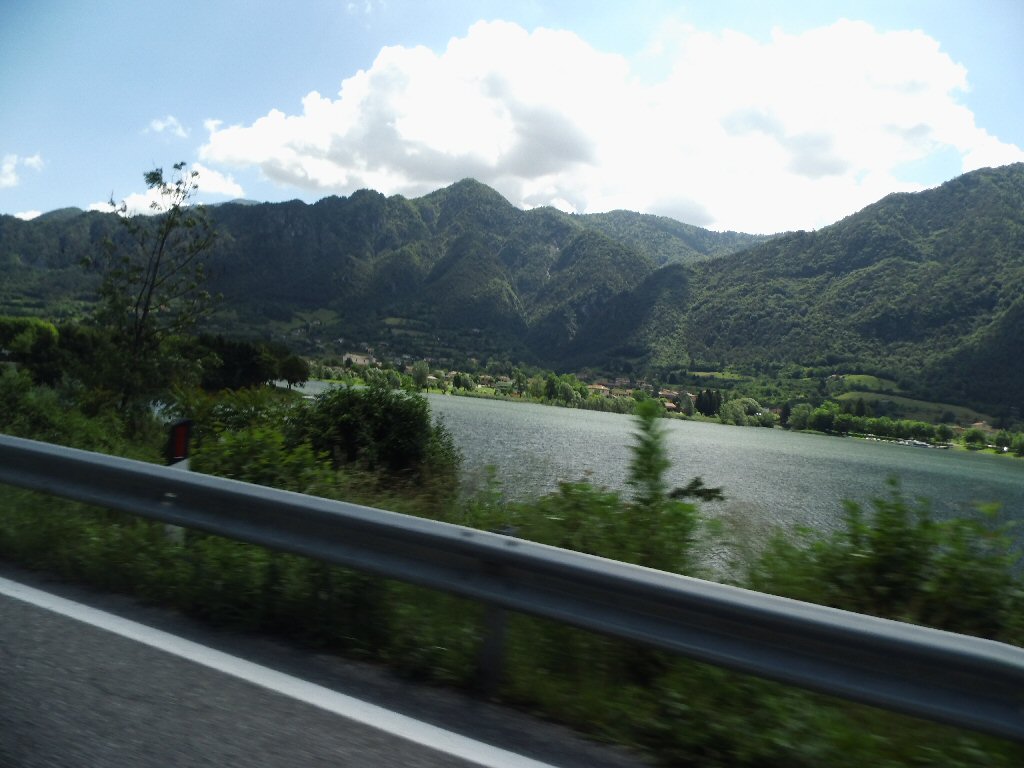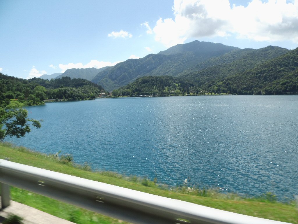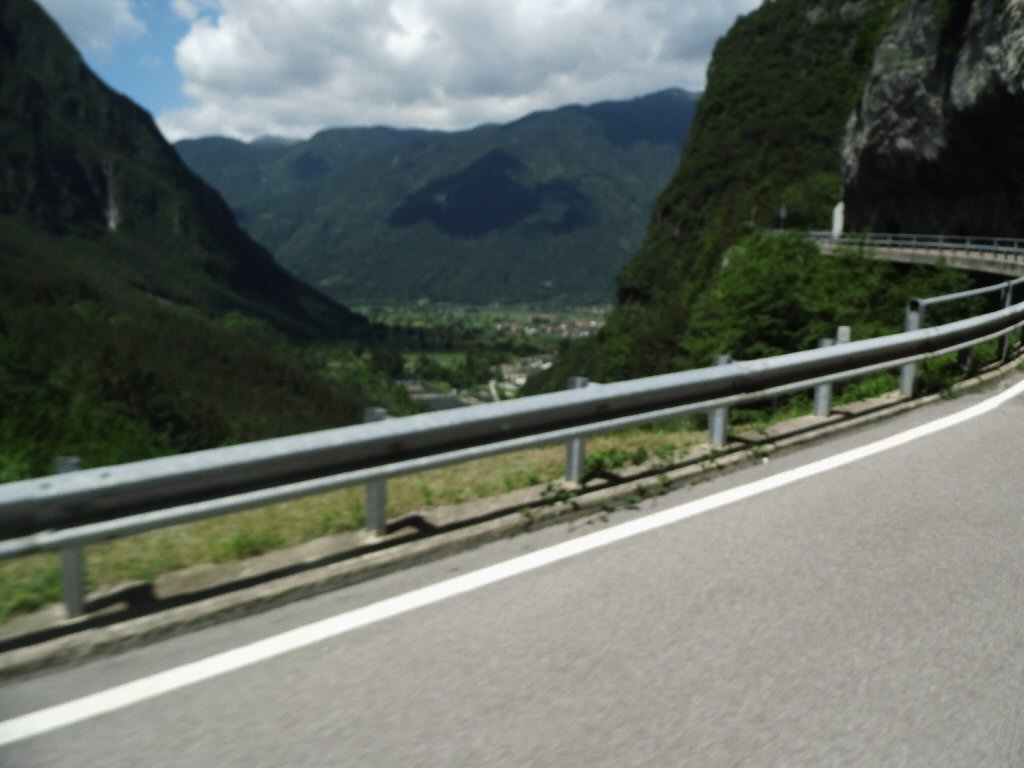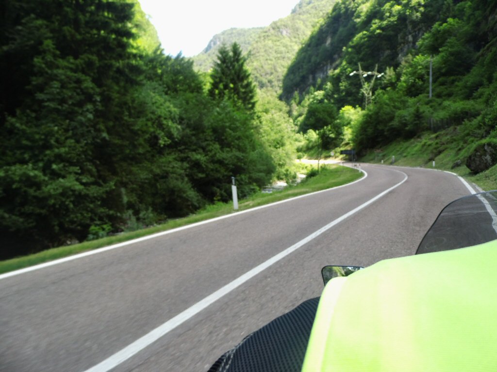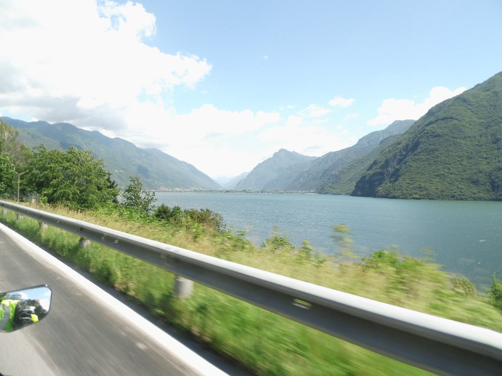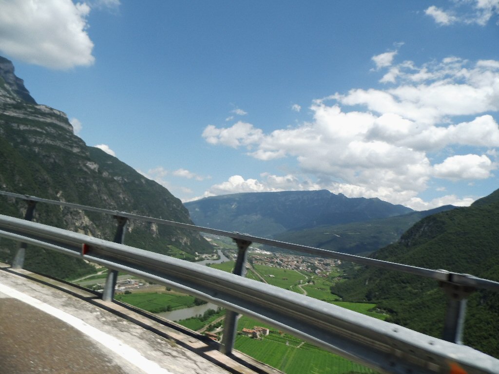 Na enkele uren stoppen we bij een dam. Mels verteld dat hij hier ook met Ron is geweest in 2004. Als we deze pas hebben gehad gaan we door naar de volgende. Het is ongelooflijk dat men zo dicht bij het Garda meer deze bergen zijn. Ze zijn niet zo hoog als de Dolomieten maar zeker de moeite waard om te rijden. Je rijd hier veel door de bossen. We komen deze dag hellingen tegen van 20 % stijging / daling. Door dorpjes over klinkers omlaag over smalle bos weggetjes. Door smalle weggetjes zigzaggend omhoog. Maar de uitzichten maken het wel goed. Zo rijden we vandaag dichtbij het Garda meer en nog bij andere meren. Temperatuur is op plaatsen 27 graden. Behoorlijk warm als men stil staat met de motor. Maar we zijn toch blij dat we vandaag nog een rit hebben gemaakt.