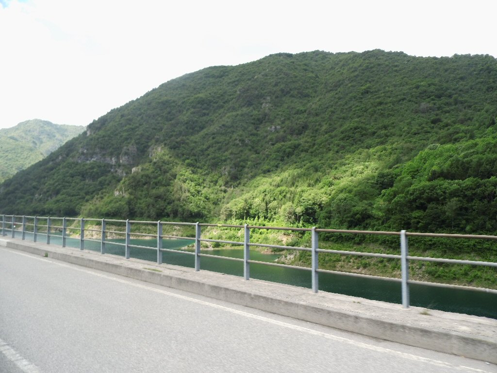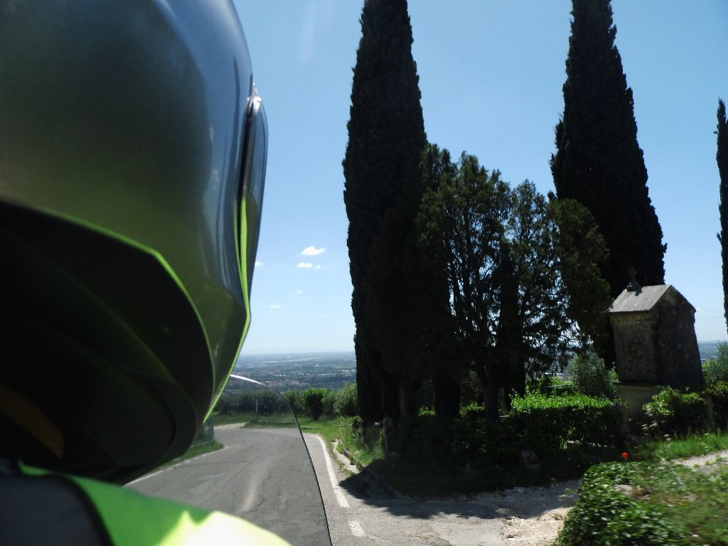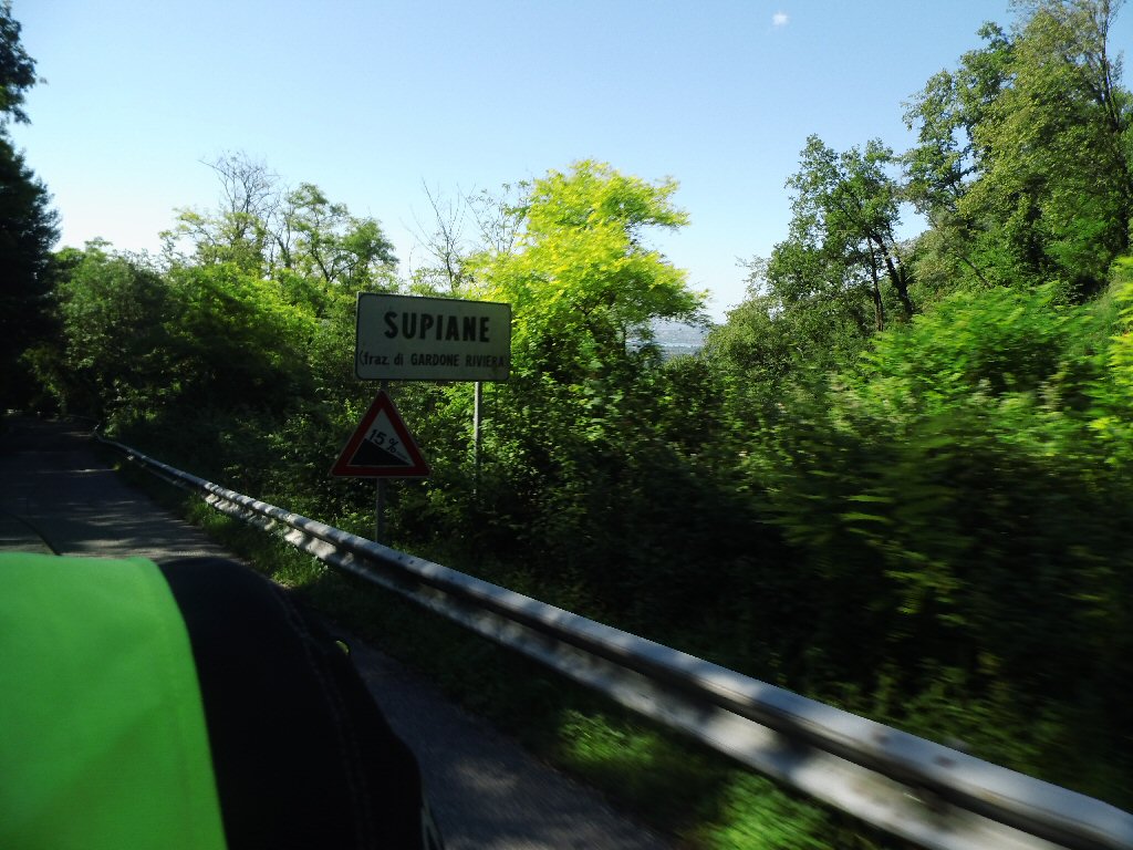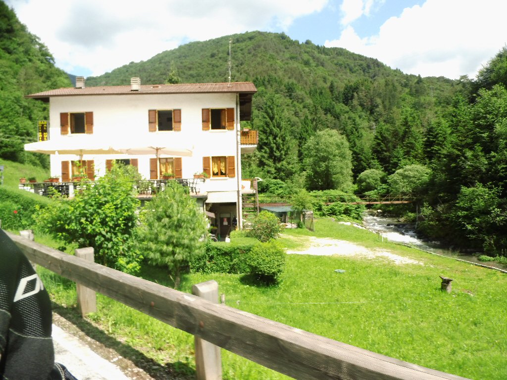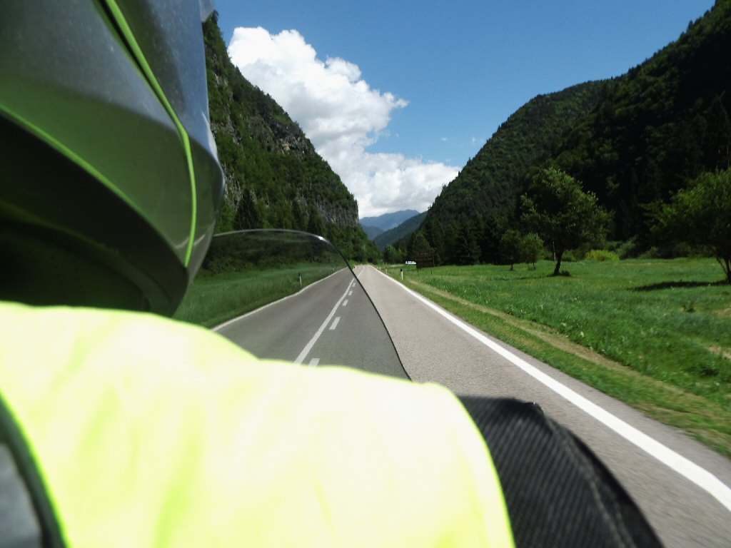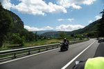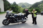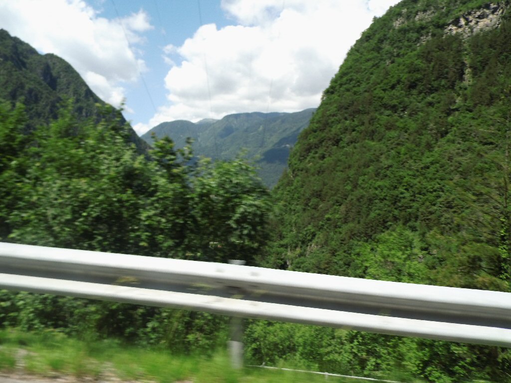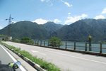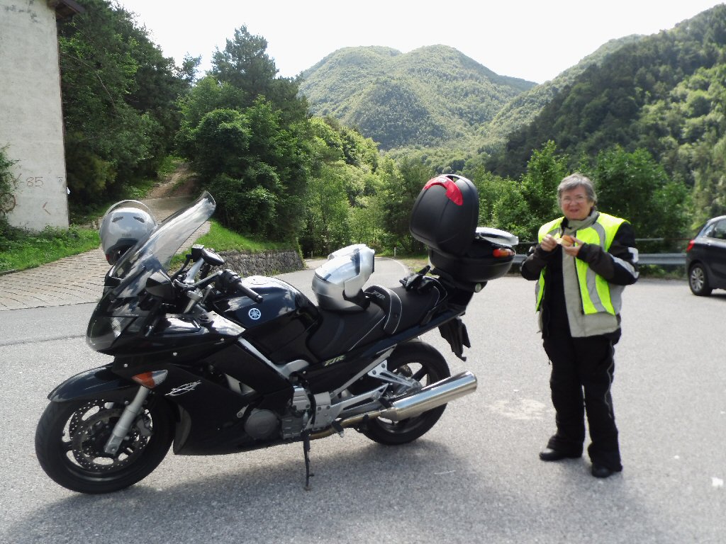 Na enkele uren stoppen we bij een dam. Mels verteld dat hij hier ook met Ron is geweest in 2004. Als we deze pas hebben gehad gaan we door naar de volgende. Het is ongelooflijk dat men zo dicht bij het Garda meer deze bergen zijn. Ze zijn niet zo hoog als de Dolomieten maar zeker de moeite waard om te rijden. Je rijd hier veel door de bossen. We komen deze dag hellingen tegen van 20 % stijging / daling. Door dorpjes over klinkers omlaag over smalle bos weggetjes. Door smalle weggetjes zigzaggend omhoog. Maar de uitzichten maken het wel goed. Zo rijden we vandaag dichtbij het Garda meer en nog bij andere meren. Temperatuur is op plaatsen 27 graden. Behoorlijk warm als men stil staat met de motor. Maar we zijn toch blij dat we vandaag nog een rit hebben gemaakt.