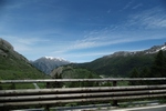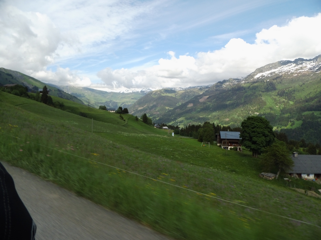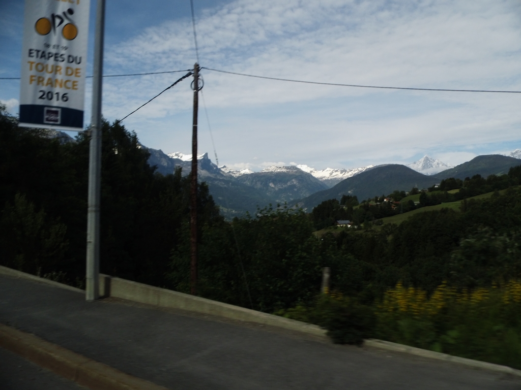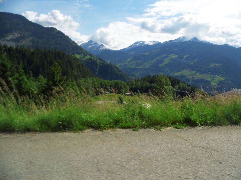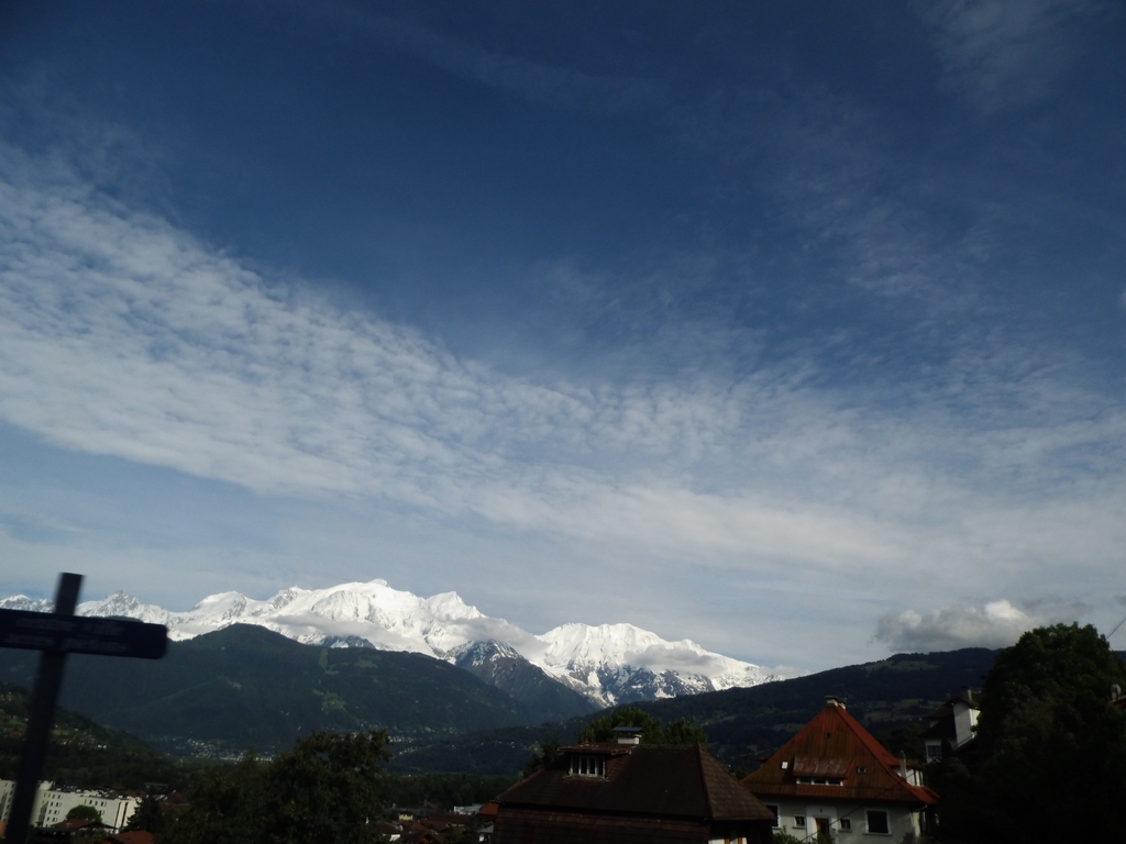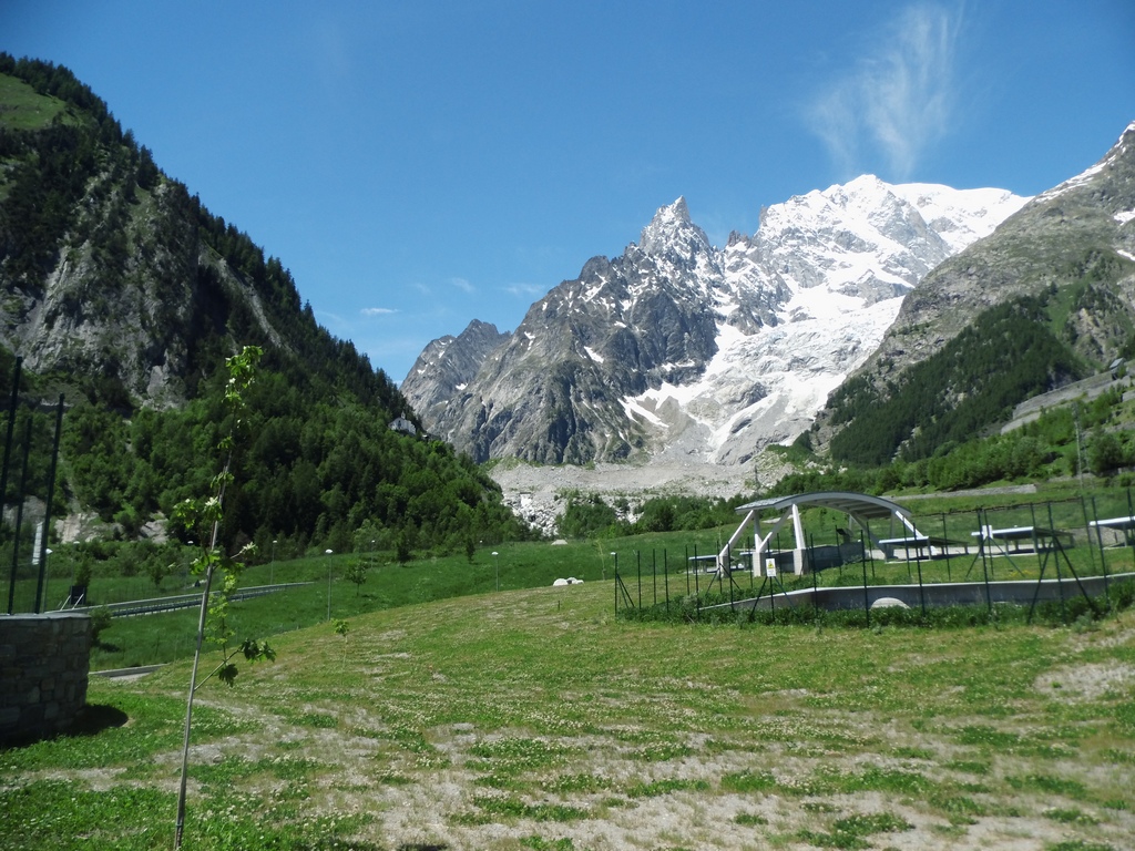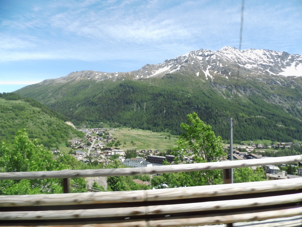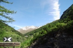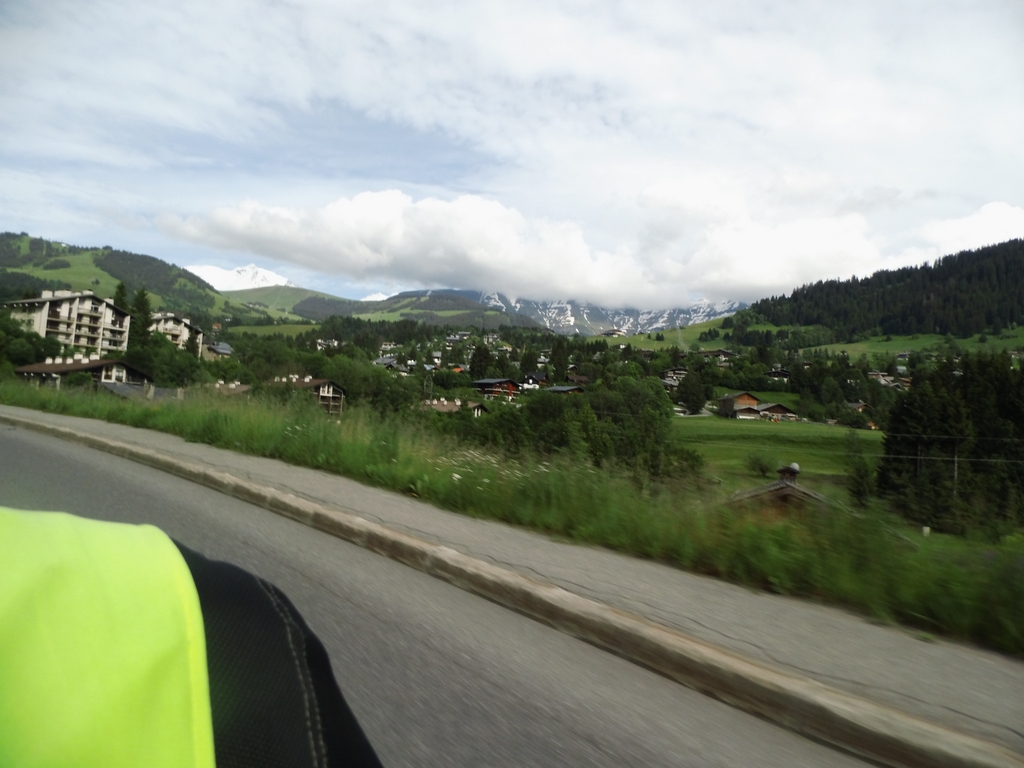 Dan rijden we weer omlaag. Op een plek staat panorama. Even stoppen. Het is inderdaad een heel mooi panorama. Natuurlijk weer veel foto’s maken. Het weer is goed wat willen we nog mee. We kunnen foto’s blijven maken. We rijden lekker door. Dan zien we richting Mont Blanc. Eens kijken hoever we komen. De top hiervan is 4809 meter hoog. Maar zo hoog kunnen we niet komen. We komen een heel stuk met de motor. Maar dan kun je met een lift omhoog. Dat doen we deze keer niet. Dan maar rustig de weg terug en weer verder met de route.