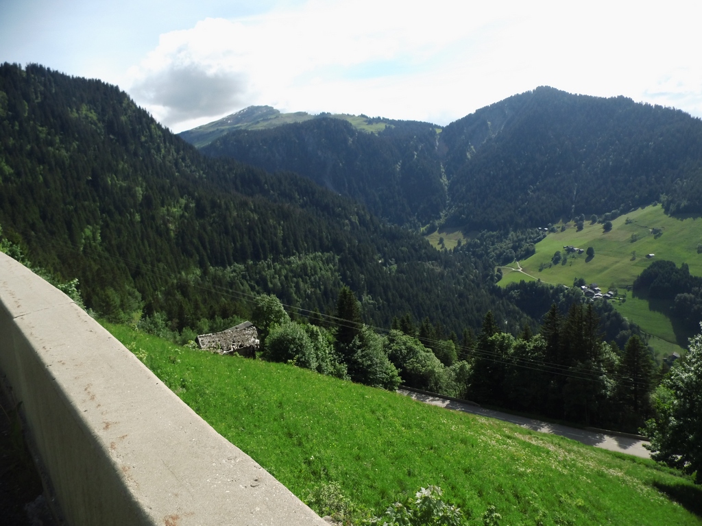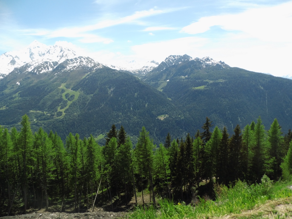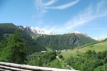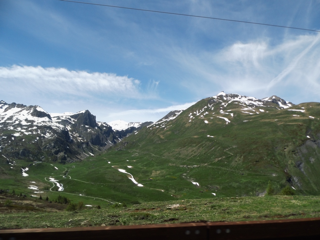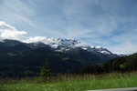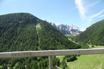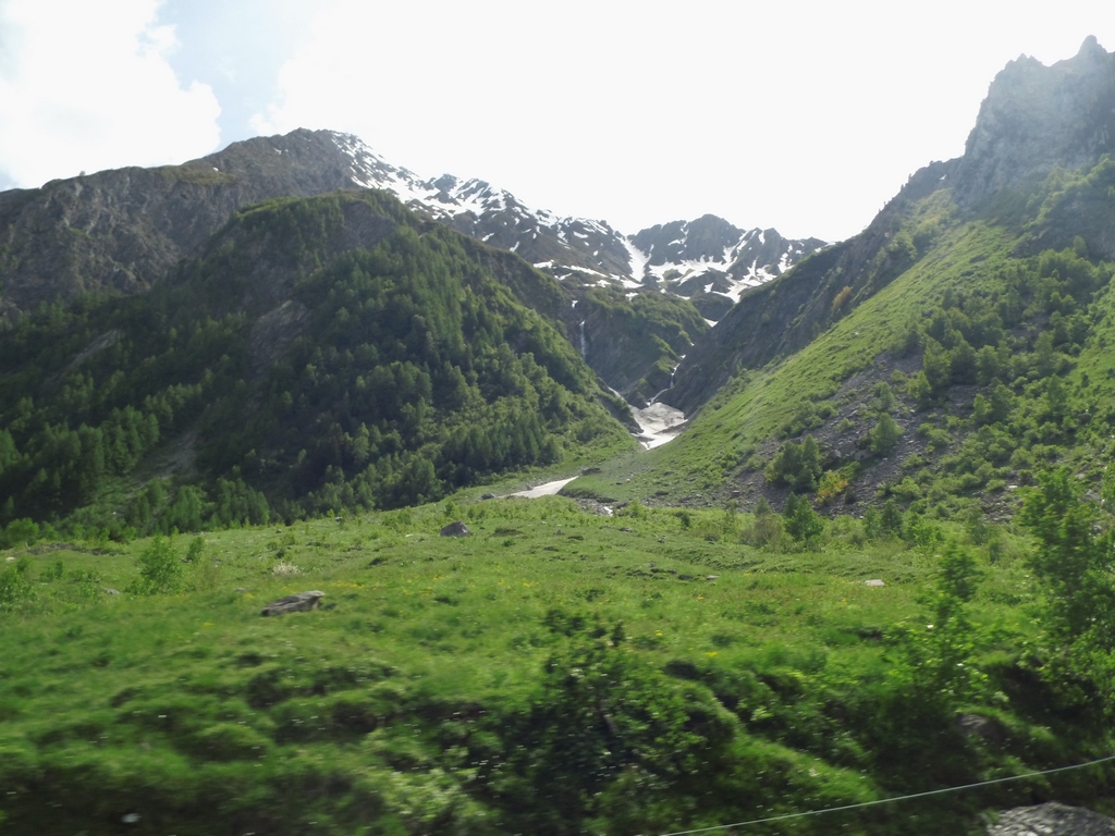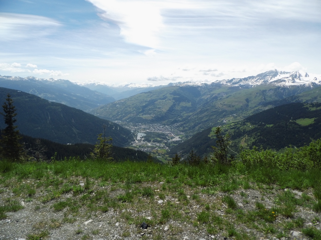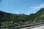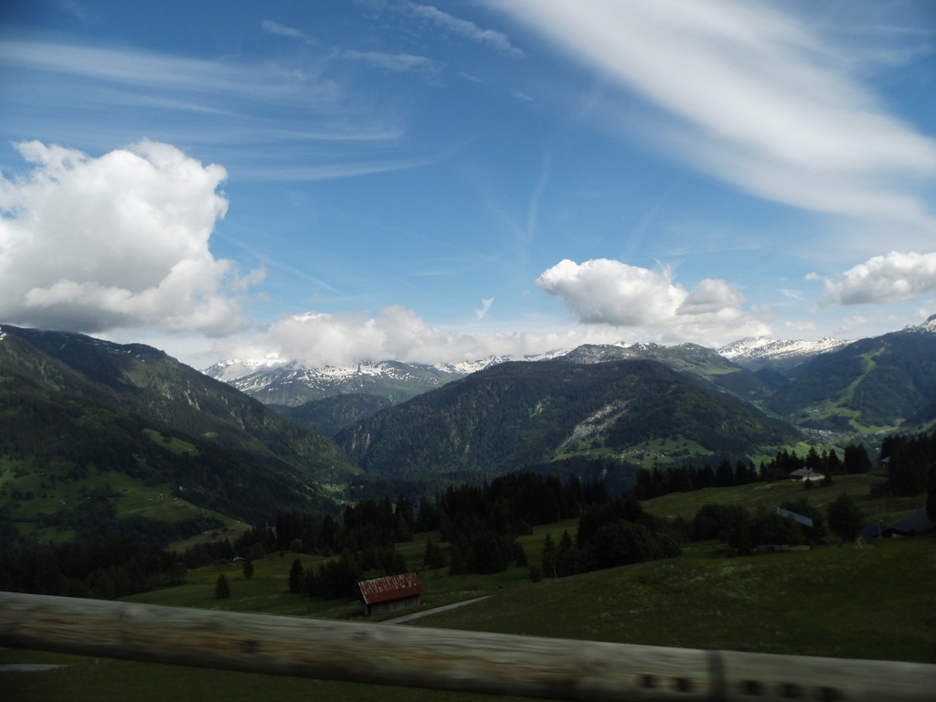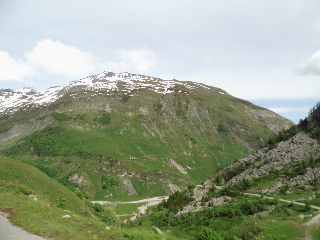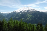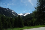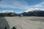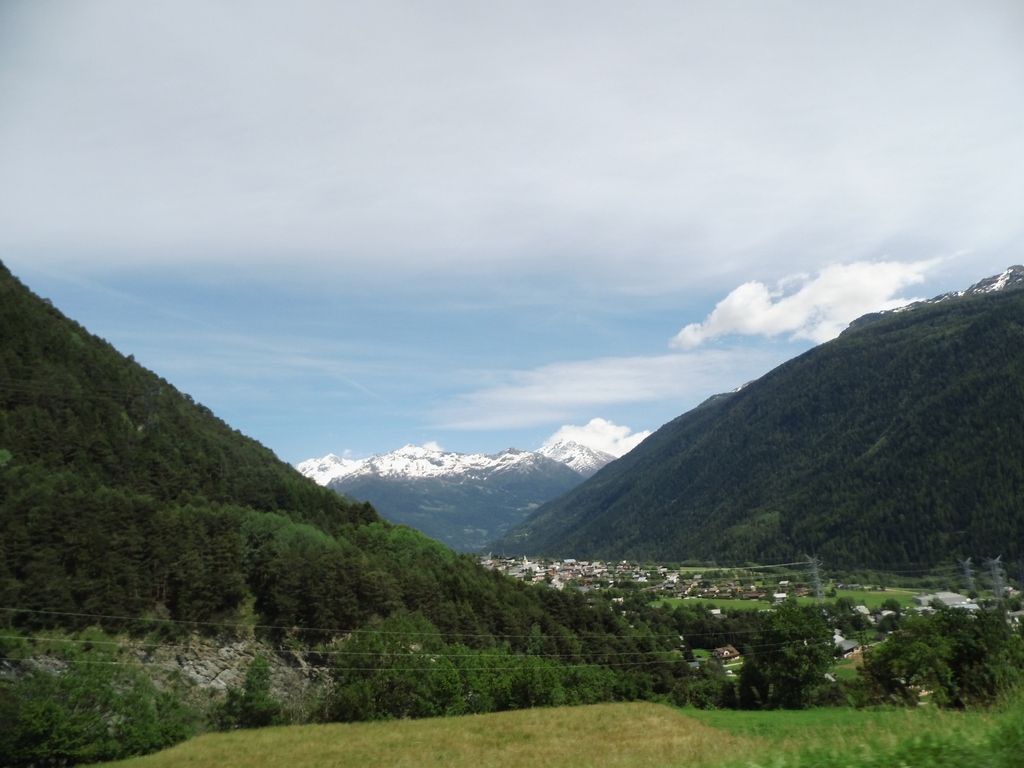 Dan rijden we weer omlaag. Op een plek staat panorama. Even stoppen. Het is inderdaad een heel mooi panorama. Natuurlijk weer veel foto’s maken. Het weer is goed wat willen we nog mee. We kunnen foto’s blijven maken. We rijden lekker door. Dan zien we richting Mont Blanc. Eens kijken hoever we komen. De top hiervan is 4809 meter hoog. Maar zo hoog kunnen we niet komen. We komen een heel stuk met de motor. Maar dan kun je met een lift omhoog. Dat doen we deze keer niet. Dan maar rustig de weg terug en weer verder met de route.