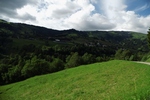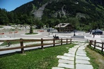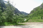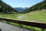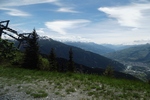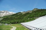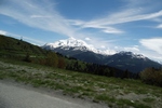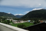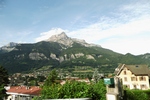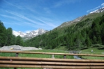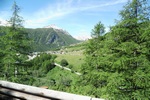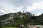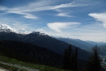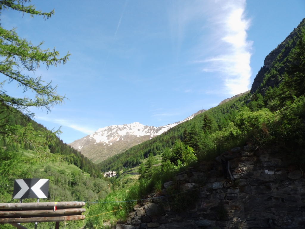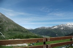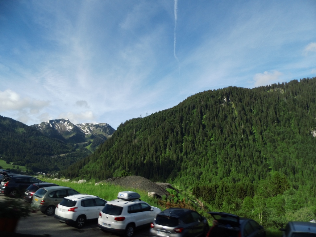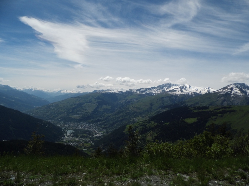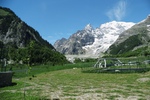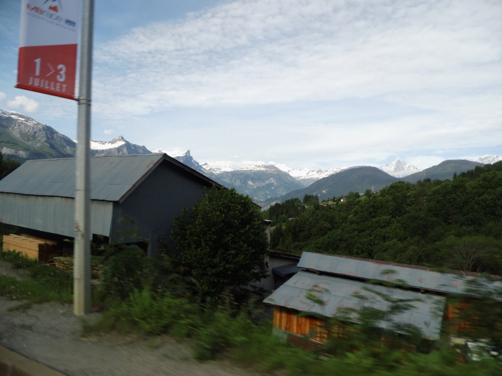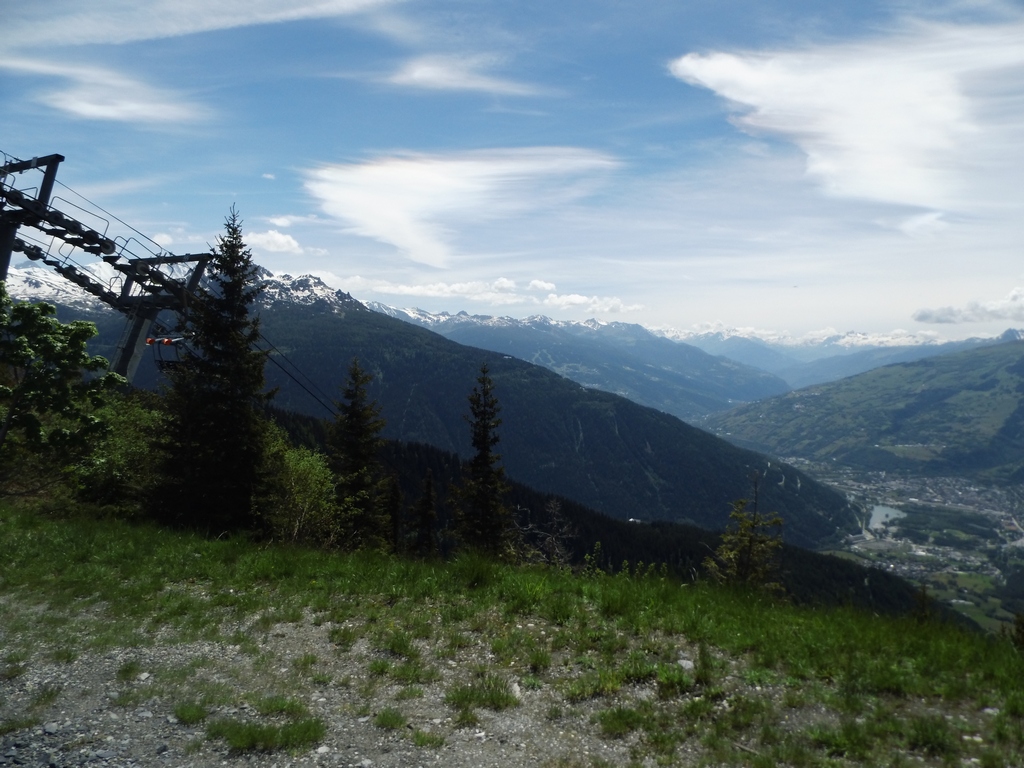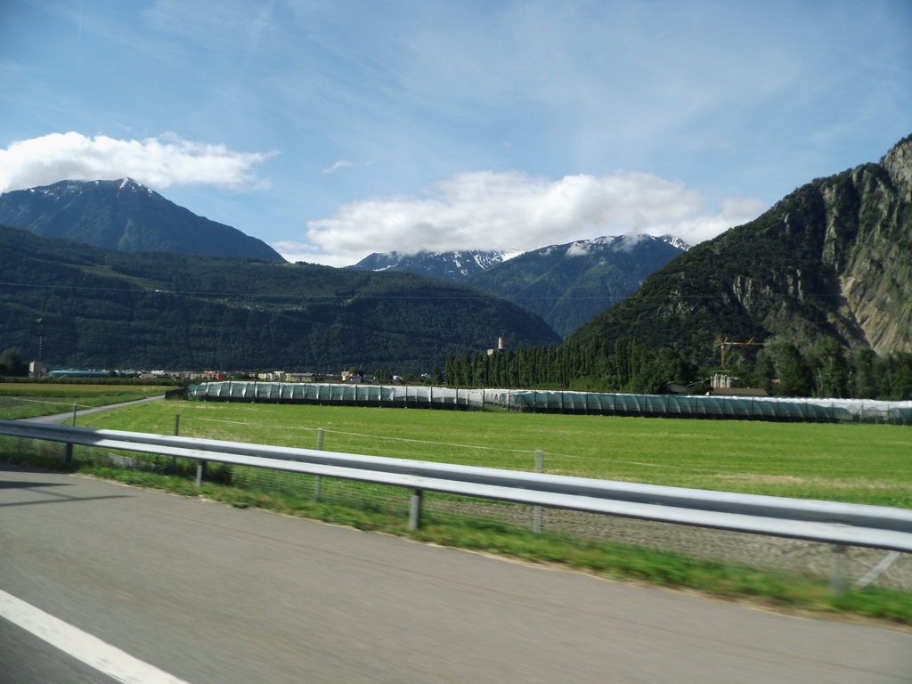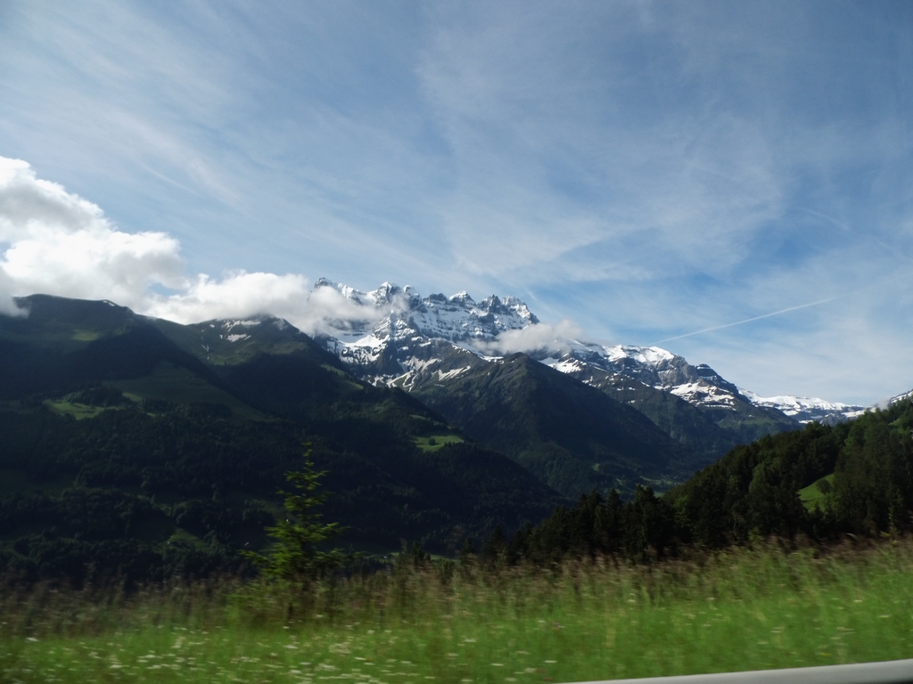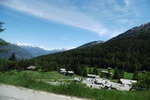 Dan rijden we weer omlaag. Op een plek staat panorama. Even stoppen. Het is inderdaad een heel mooi panorama. Natuurlijk weer veel foto’s maken. Het weer is goed wat willen we nog mee. We kunnen foto’s blijven maken. We rijden lekker door. Dan zien we richting Mont Blanc. Eens kijken hoever we komen. De top hiervan is 4809 meter hoog. Maar zo hoog kunnen we niet komen. We komen een heel stuk met de motor. Maar dan kun je met een lift omhoog. Dat doen we deze keer niet. Dan maar rustig de weg terug en weer verder met de route.