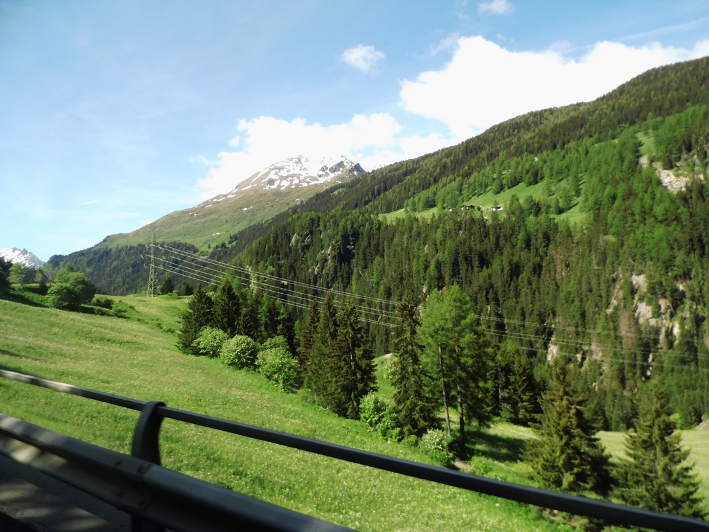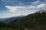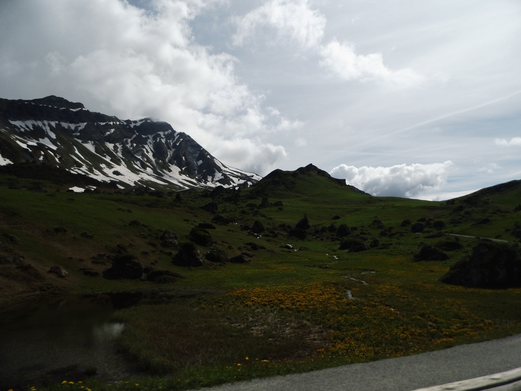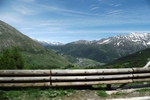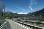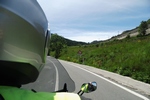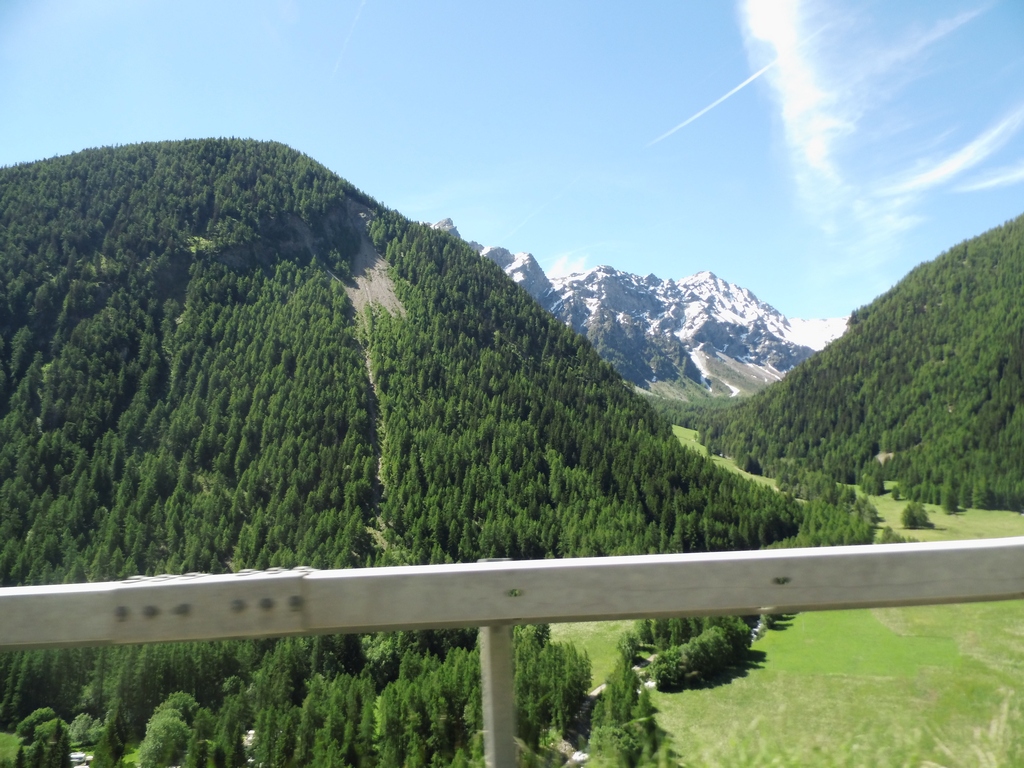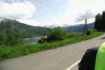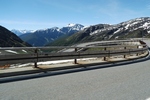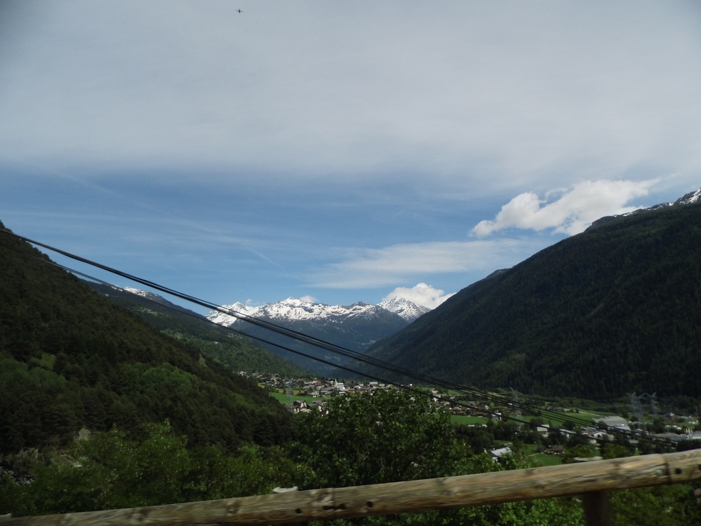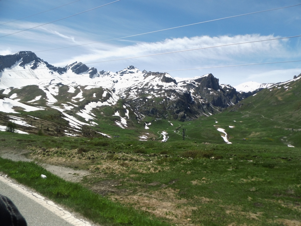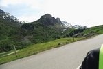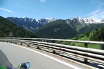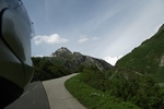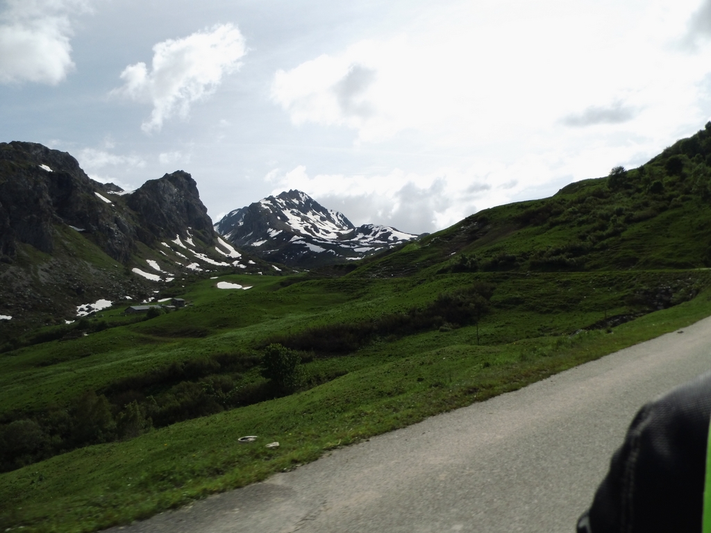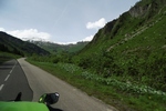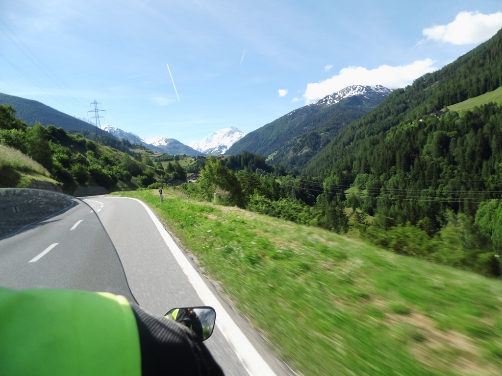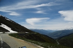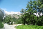Na even zoeken komen we bij de San Bernardino pas. We hebben zaterdag de tunnel gedaan maar nu doen we de pas met de motor. Als we omhoog rijden gaan we de sneeuw en de kou tegemoet 5 graden, met alleen thermoondergoed aan en het textielpak, zonder wintervoering. Als we boven komen rijden we tussen de sneeuw door. Links en rechts van de weg ligt nog veel sneeuw. De top waar we met de motor kunnen rijden is 2066 meter. Het is echt genieten. Mels is hier al 2 keer geweest en ik een keer. Het blijft mooi. We rijden rustig verder.
