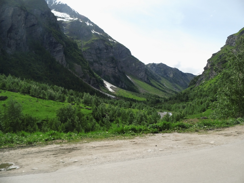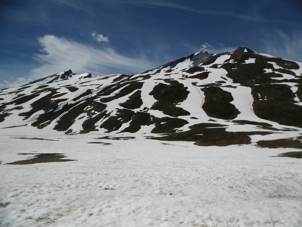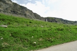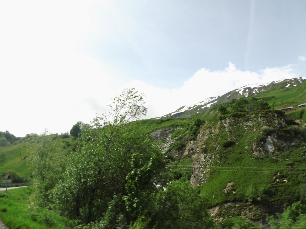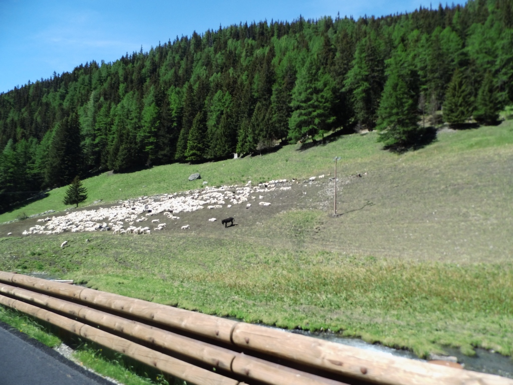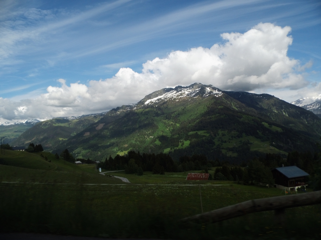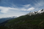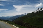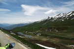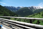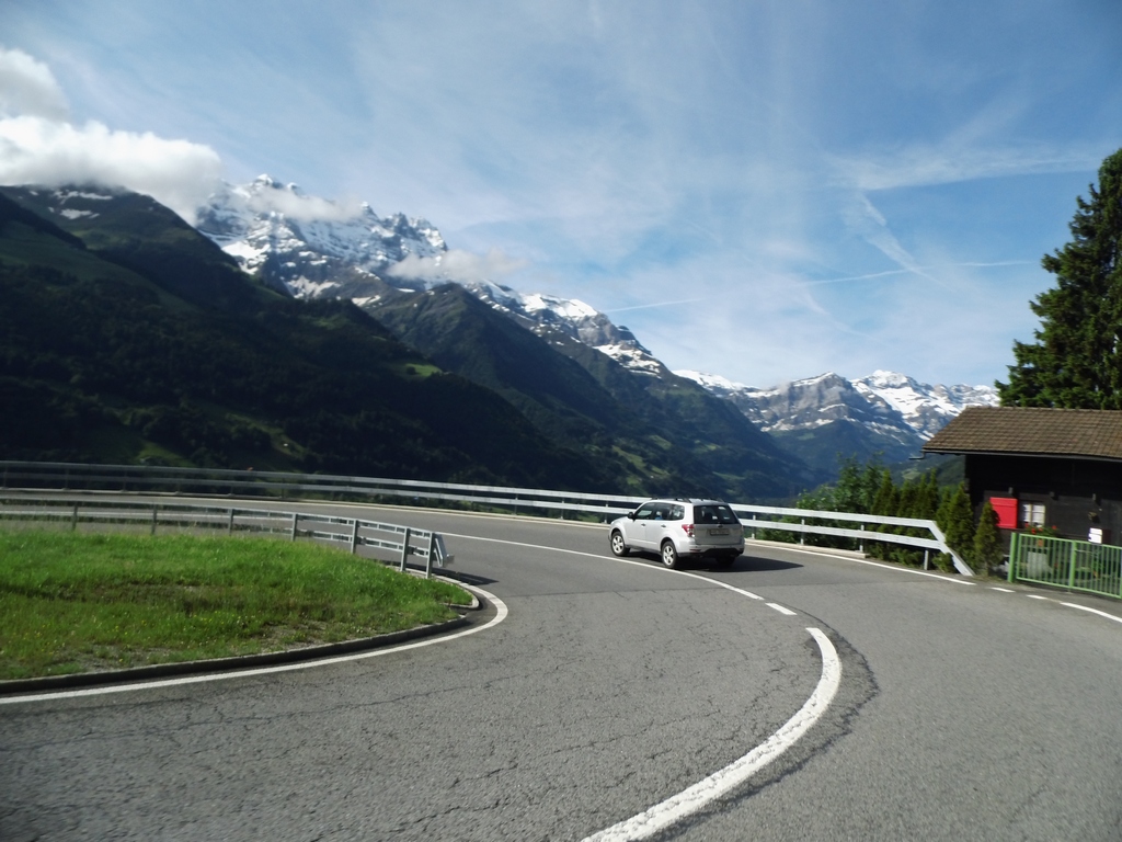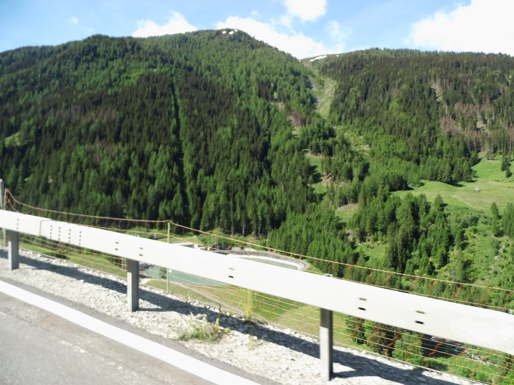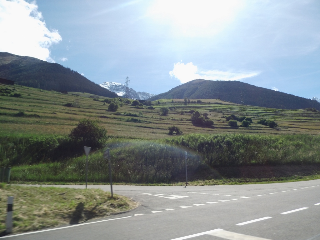 Na even zoeken komen we bij de San Bernardino pas. We hebben zaterdag de tunnel gedaan maar nu doen we de pas met de motor. Als we omhoog rijden gaan we de sneeuw en de kou tegemoet 5 graden, met alleen thermoondergoed aan en het textielpak, zonder wintervoering. Als we boven komen rijden we tussen de sneeuw door. Links en rechts van de weg ligt nog veel sneeuw. De top waar we met de motor kunnen rijden is 2066 meter. Het is echt genieten. Mels is hier al 2 keer geweest en ik een keer. Het blijft mooi. We rijden rustig verder.